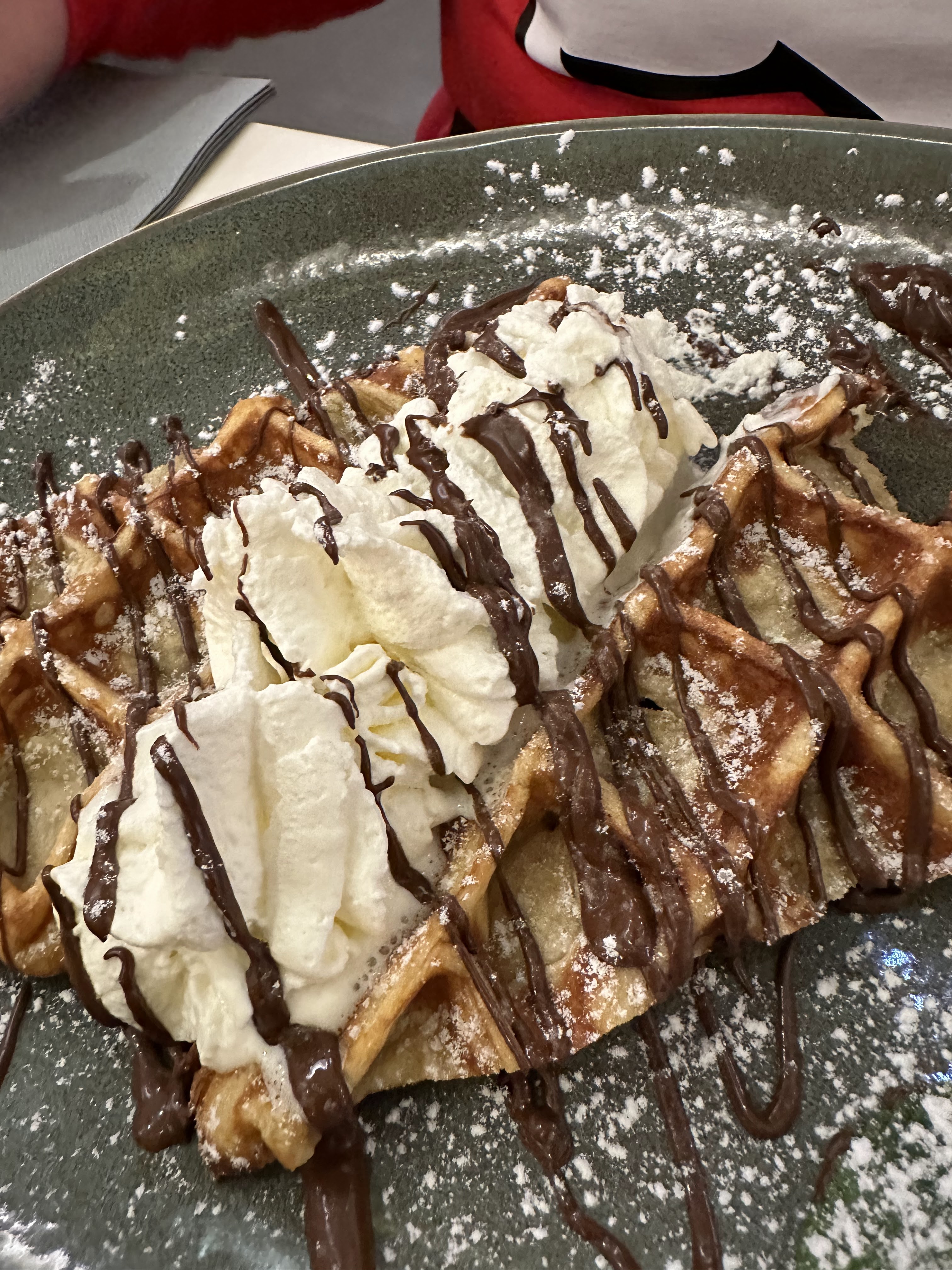 Accueil mitigé, une table choisi pour nous de force, puisque on voulait boire un verre et non manger à 19H.. 25 minutes d'attente pour prendre la commande dans un bar ou 20% de la salle est pleine.. Et cerise sur le gâteau une gaufre cramé (Me demandé pourquoi je suis pas venu me plaindre en direct, demandez-vous plus pourquoi vous avez pu servir ça). Merci pour tout. Heureusement que le nougatela vaut le détour 🤷🏻♂️