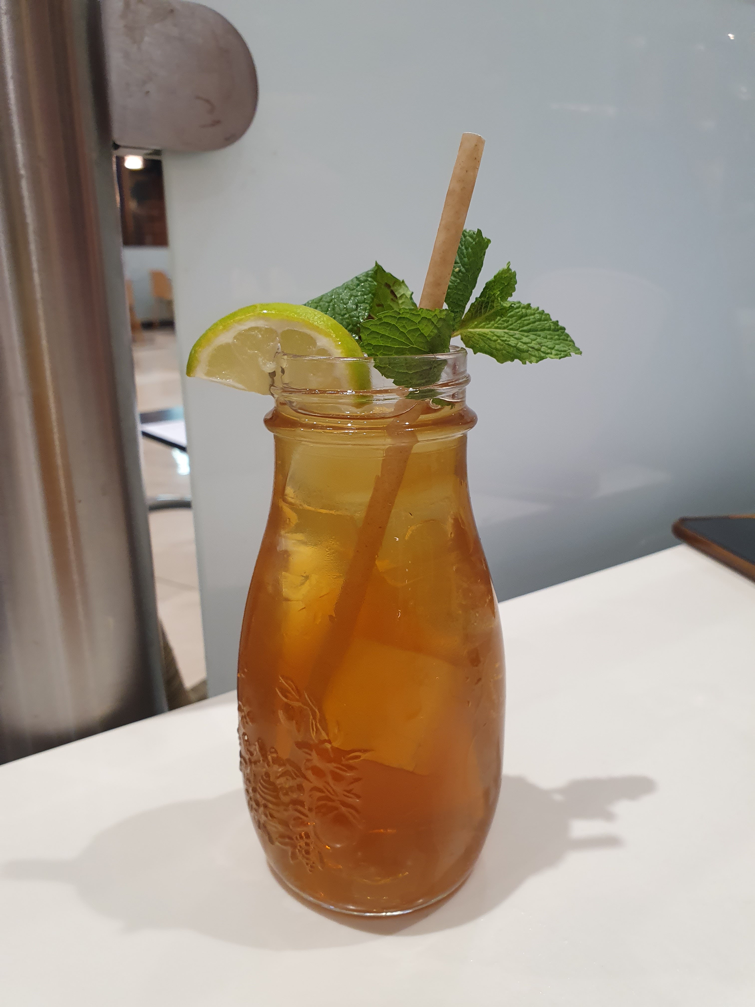 Mixer lés kiwi 🥝 avec la peau Est bio mais pas bon Le thé à la menthe sans thé Maus avec de la menthe est grise Maus l emplacement de la boutique est super 👍 Plein centre 1 étoile 🌟 Et une seconde pour la gentillesse des jeunes serveurs Les patrons devraient d’ améliorer