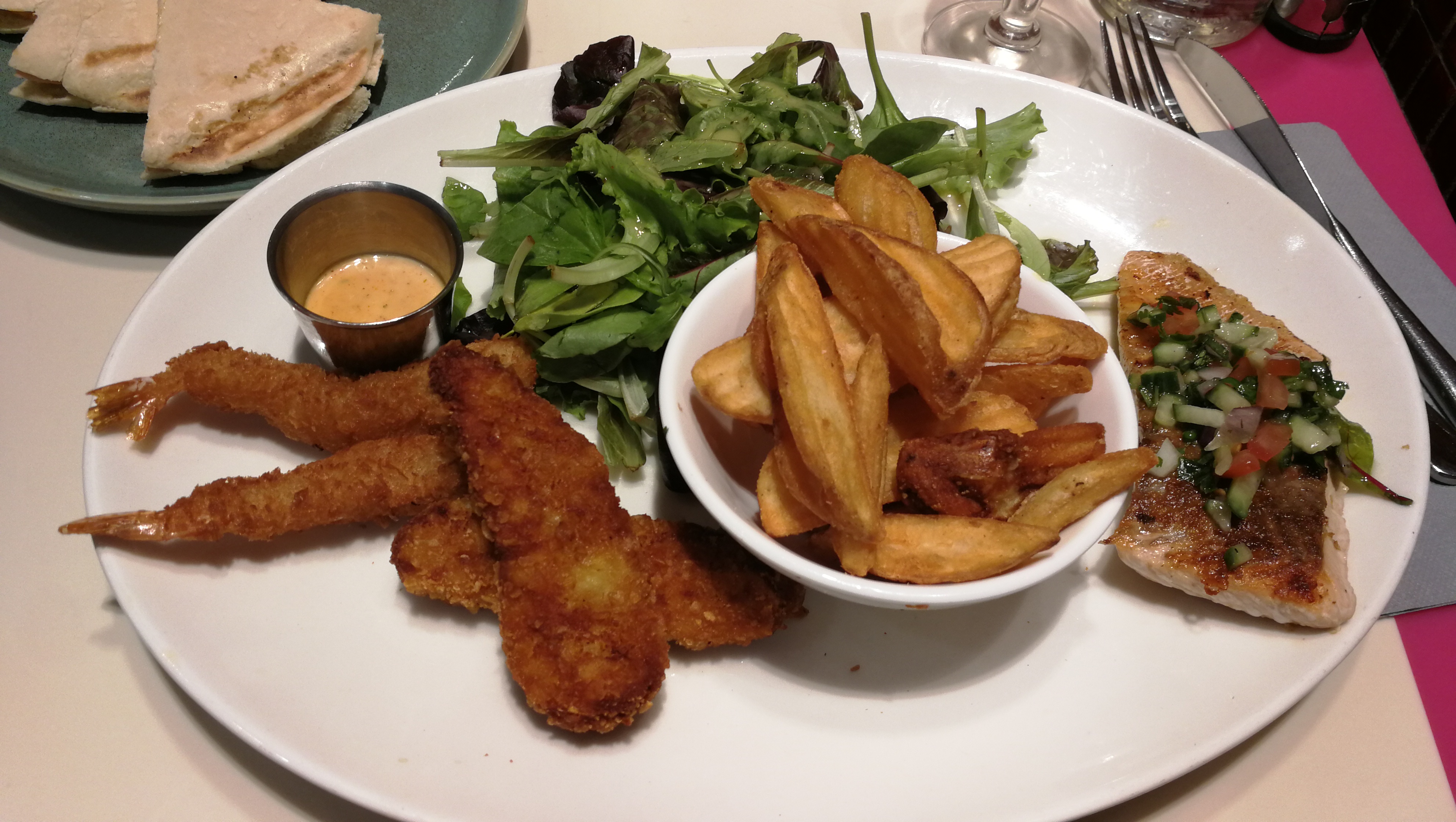Tout était bon. Nous étions 2 et avons pris un mélange de plein de chose qu'on a partagé pour goûter. On s'est régalé jusqu'au dessert. Le camembert rôti et le poulet croustillant, les pita garnis, les légumes rôtis tout était délicieux et le personnel polis et souriant