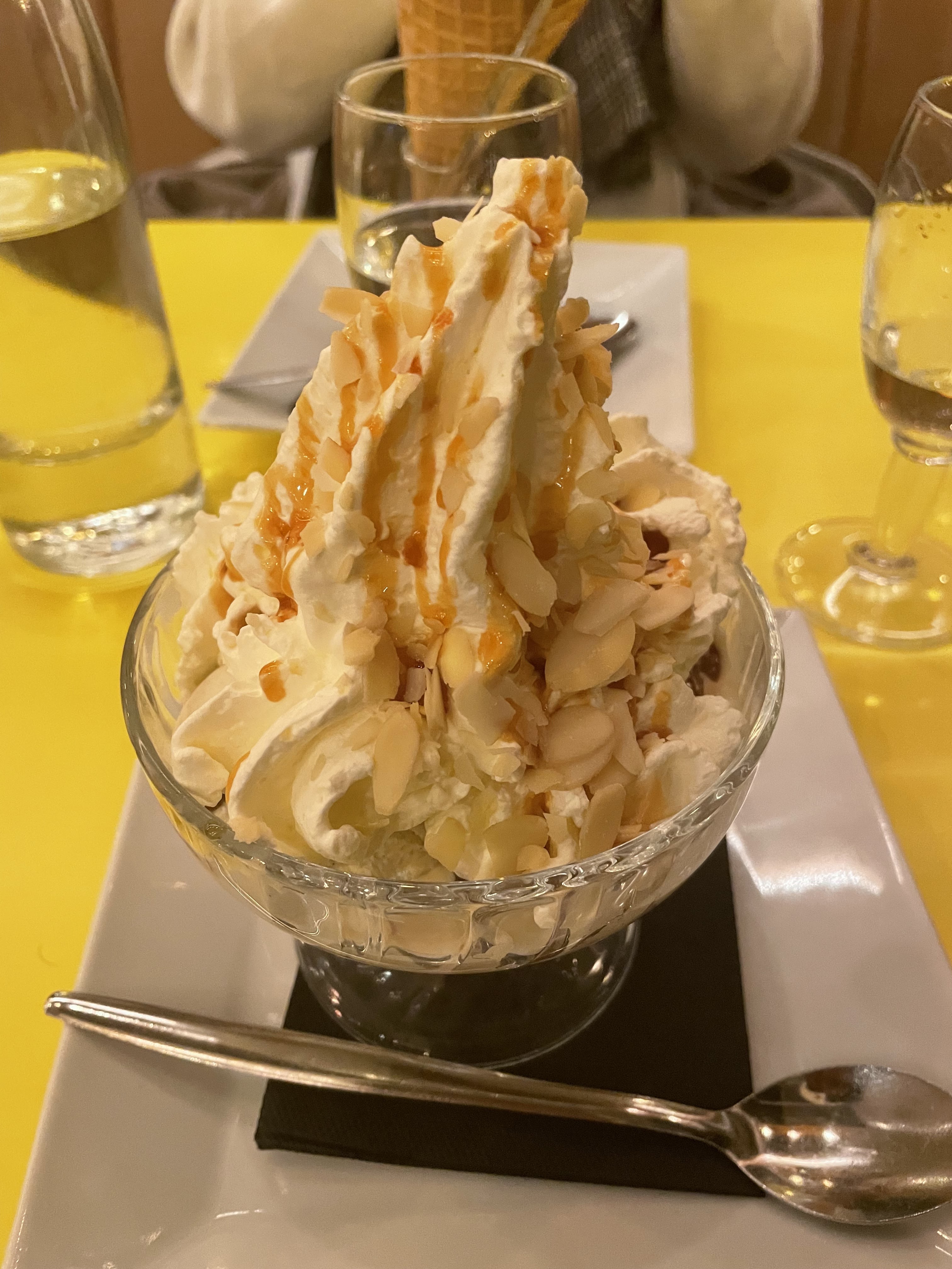 Accueil chaleureux et enjoué. Mesures sanitaires respectées. Professionnalisme, dynamisme, gentillesse et sympathie du serveur (Augustin, dixit le ticket de caisse) qui répond et anticipe les demandes des clients. Coupes glacées bonnes et copieuses. Service impeccable sur toute la ligne. Une pause gourmande appréciable et très appréciée hier. Merci!