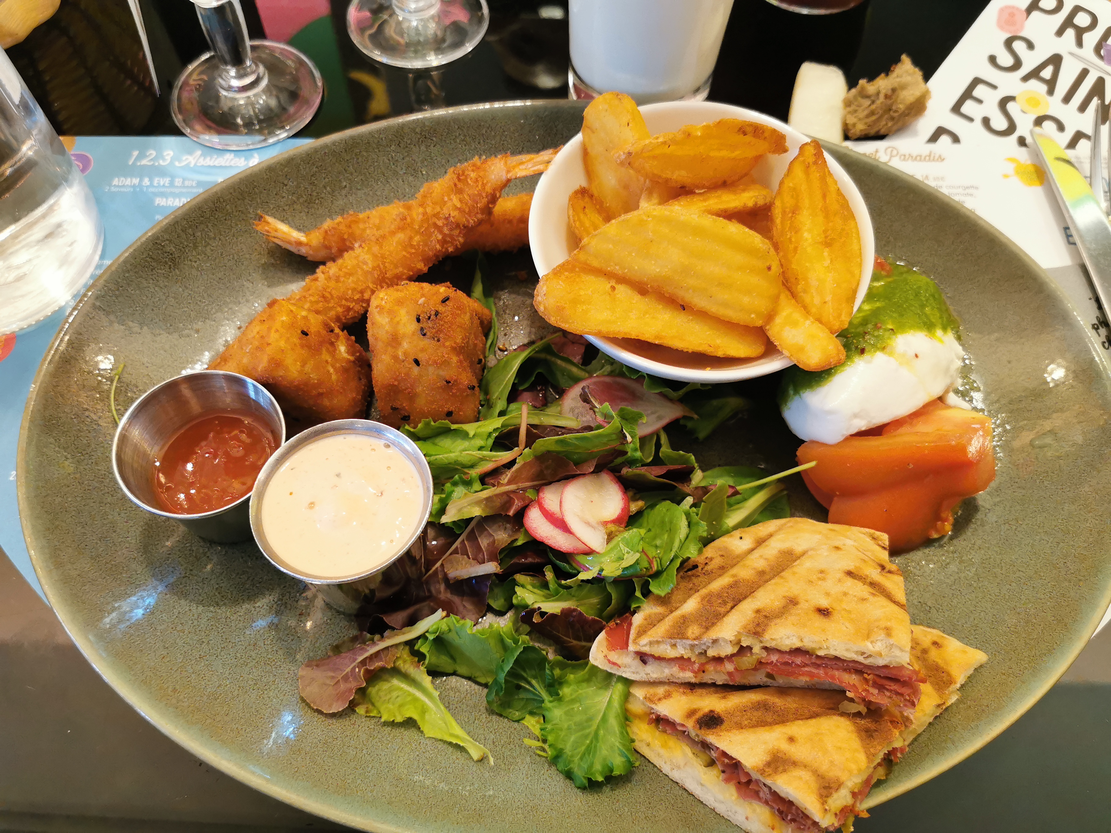 Un restaurant avec un choix multiple. Lieu très agréable pour passer un bon petit moment . Notre serveur était très à l’écoute, souriant, très agréable. Nous n’avons pas votre prénom mais vous savez qui nous sommes ( les 4 sœurs ). Des desserts à partagez au top . On recommande, foncez !!!