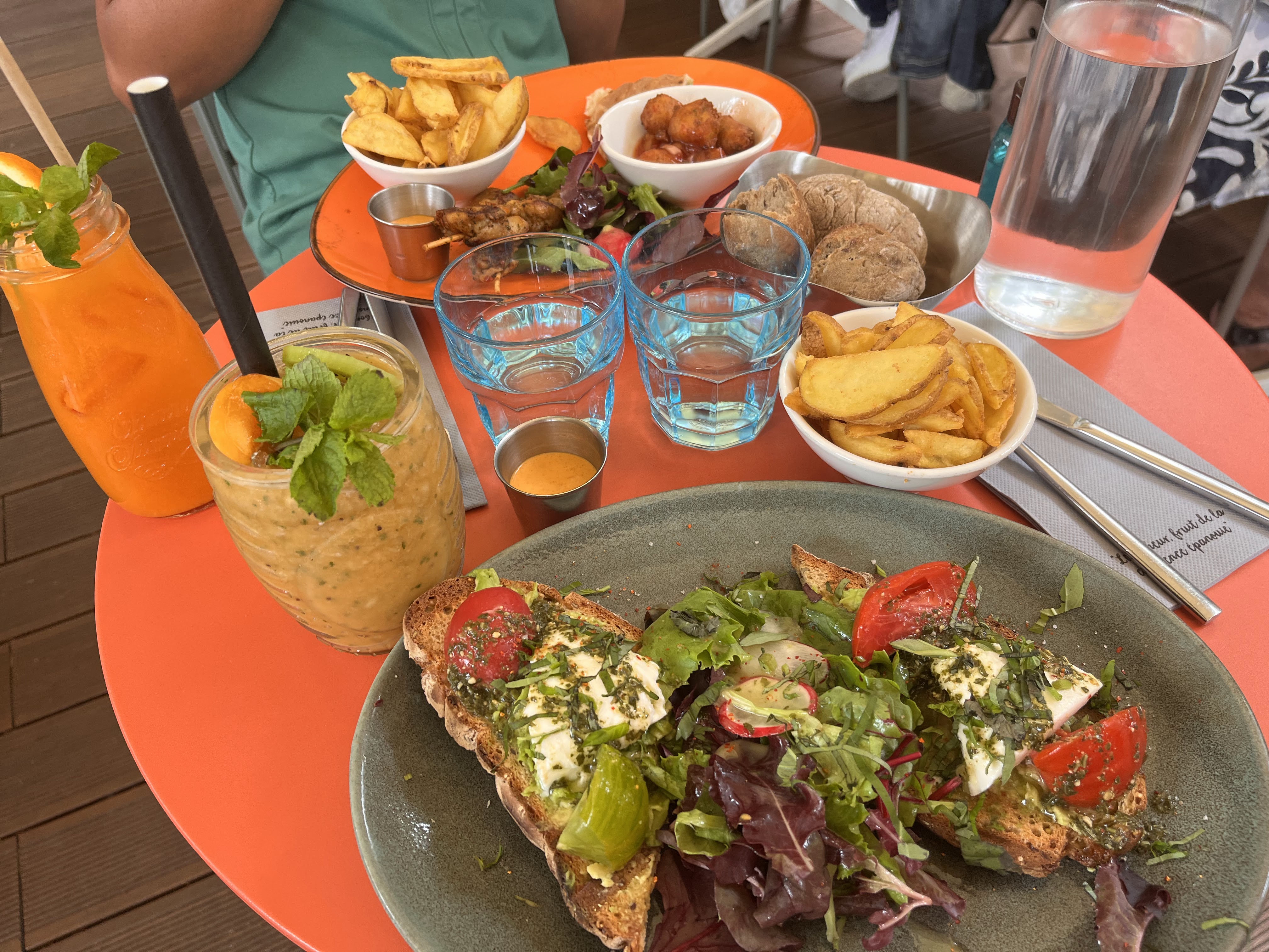 Lieu très sympathique, Possibilité de manger en terrasse et il y a beaucoup de choix à la carte ( cocktails, fruits ou plats) Vous n'aurez que l'embarras du choix...