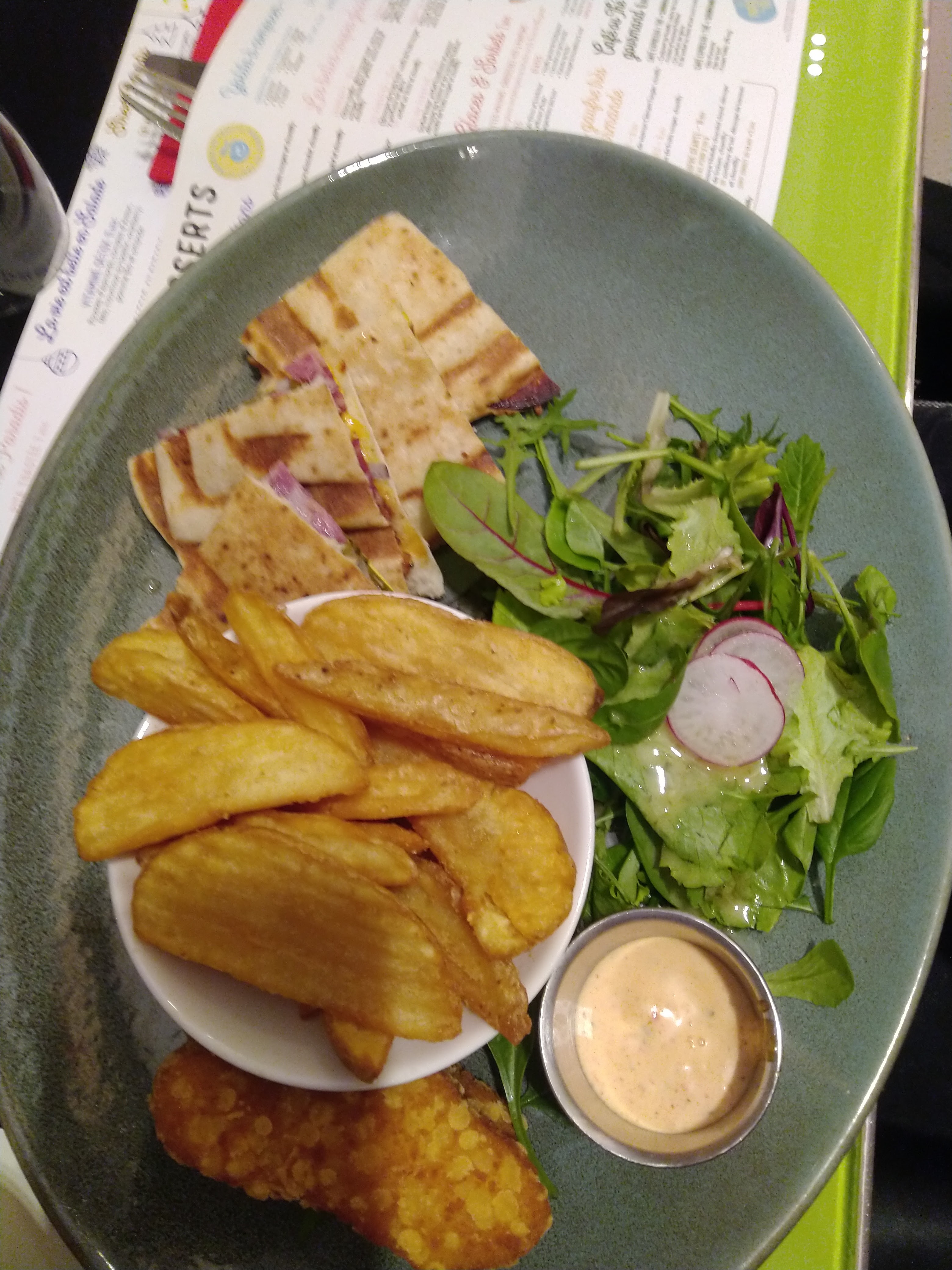 Les portions sont de plus petites, frites et salade pratiquement rien dans assiette, saumon c'est tout petit , par contre les verres sont très sales , changer de lave vaisselle.