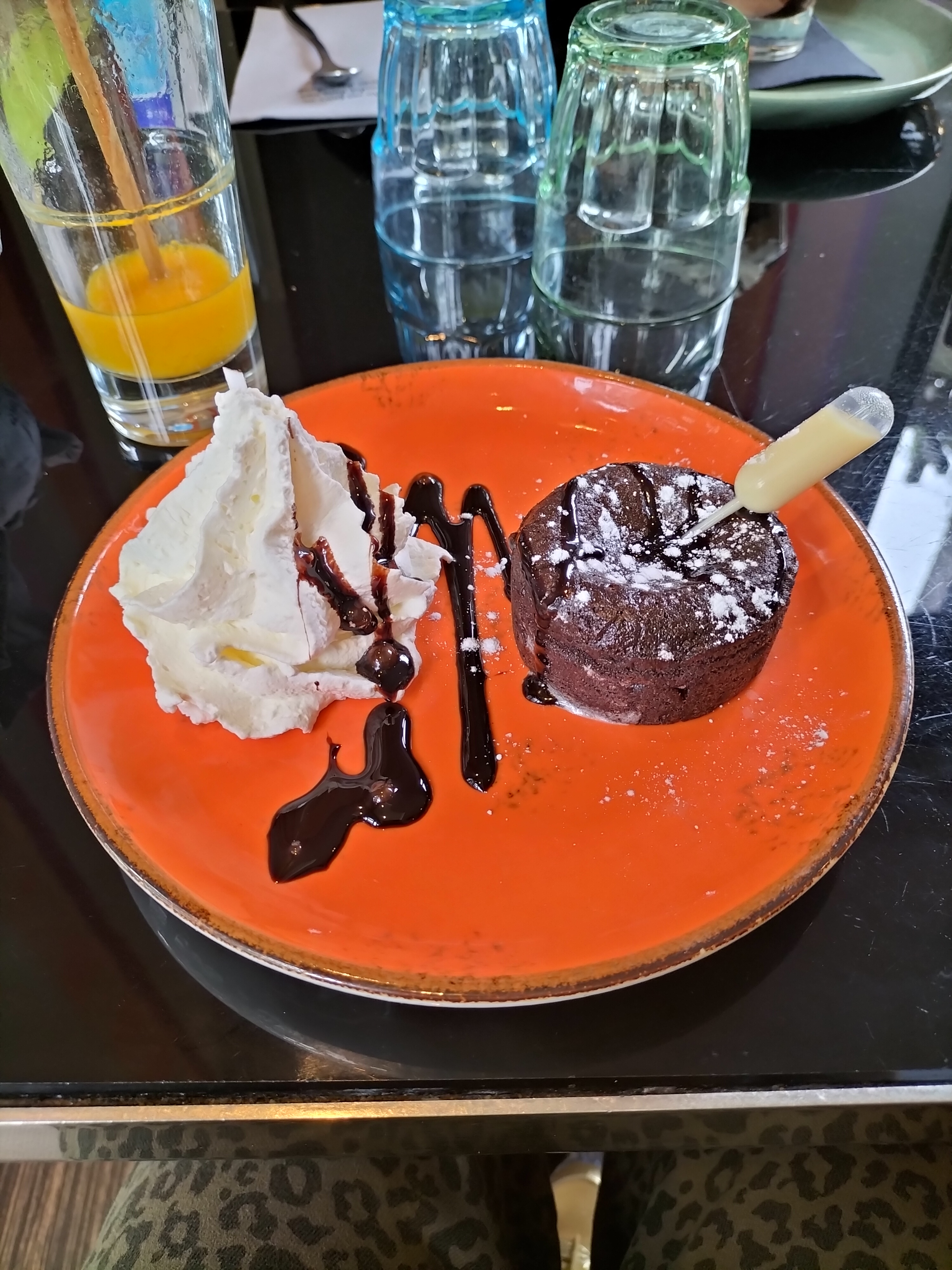 Très bon dessert et plat, accueil chaleureux.