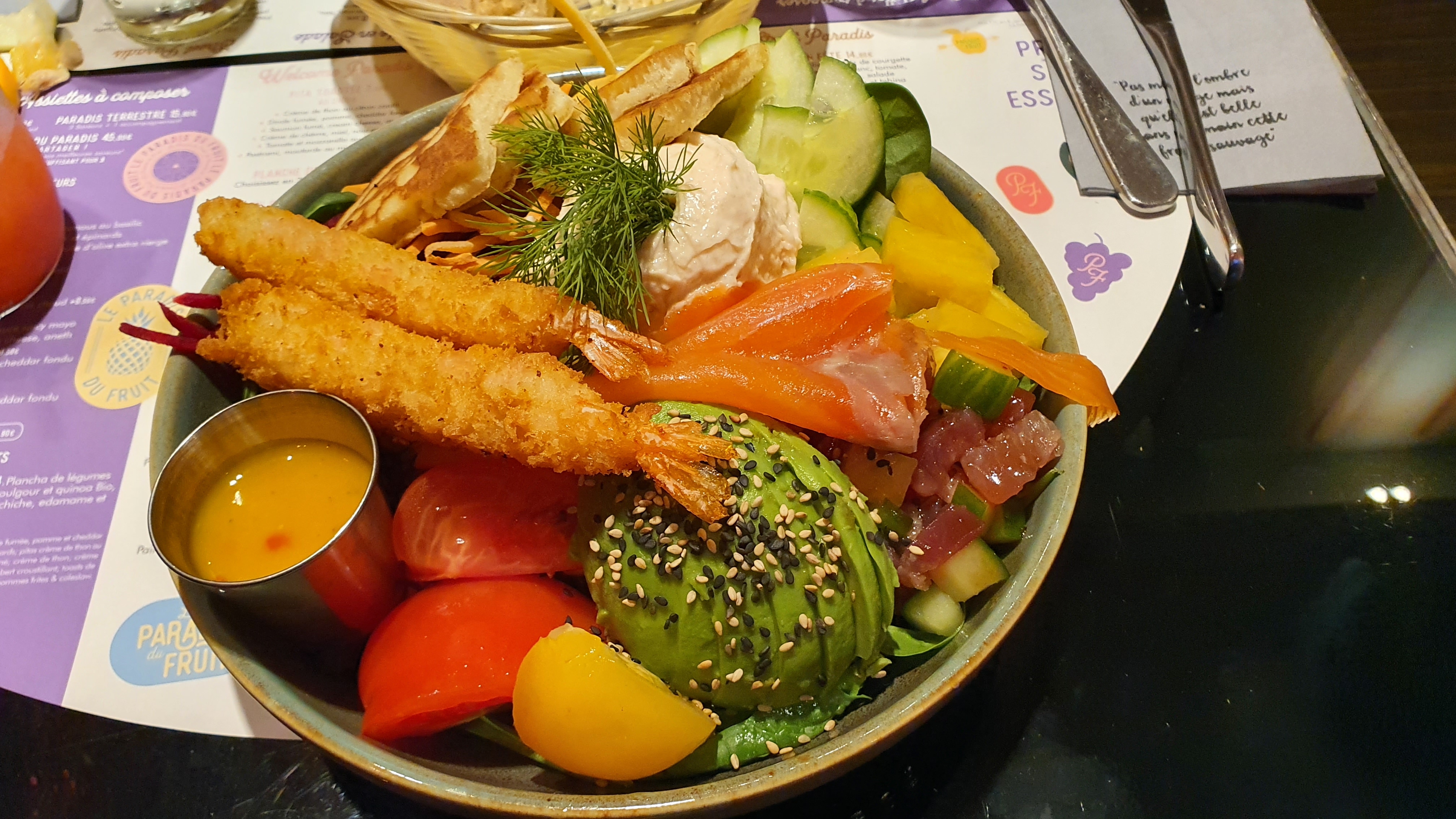 Paradis du fruit, tout est dans le titre 🍋🥝 Ce lieu est un vrai paradis pour des repas variés ! Un large choix de plats, de desserts et je ne parle pas des cocktails ! Un vrai bon moment et une équipe souriante et accueillante. Petit clin d'œil à Joséphine qui m'a recommandé le cocktail du mois et elle a bien eu raison ! Encore merci à elle 👏🏻 Je recommande vivement !