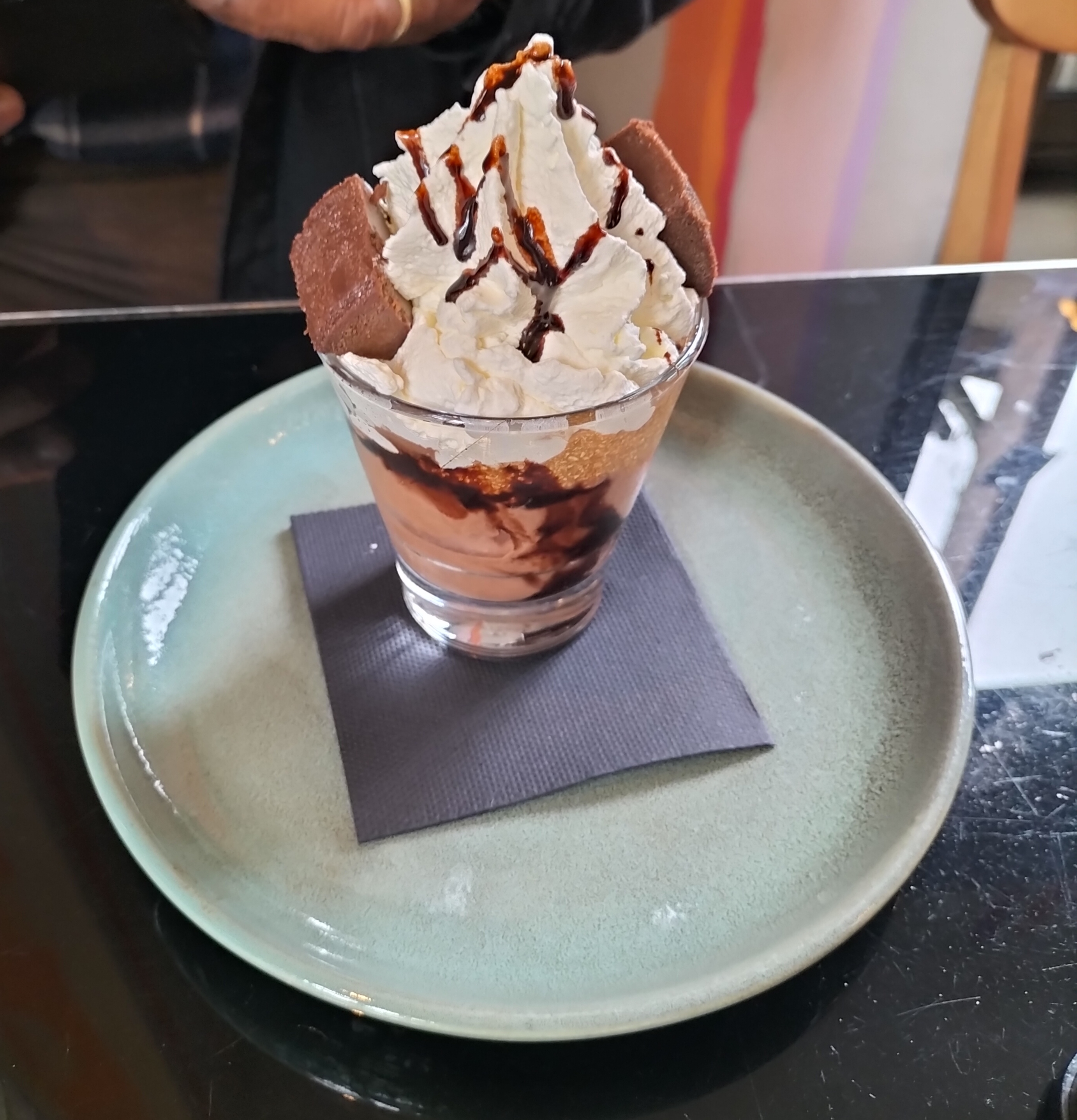 Personnel agréable. Service rapide. Profiterole xxl succulent et café gourmand délicieux 😋