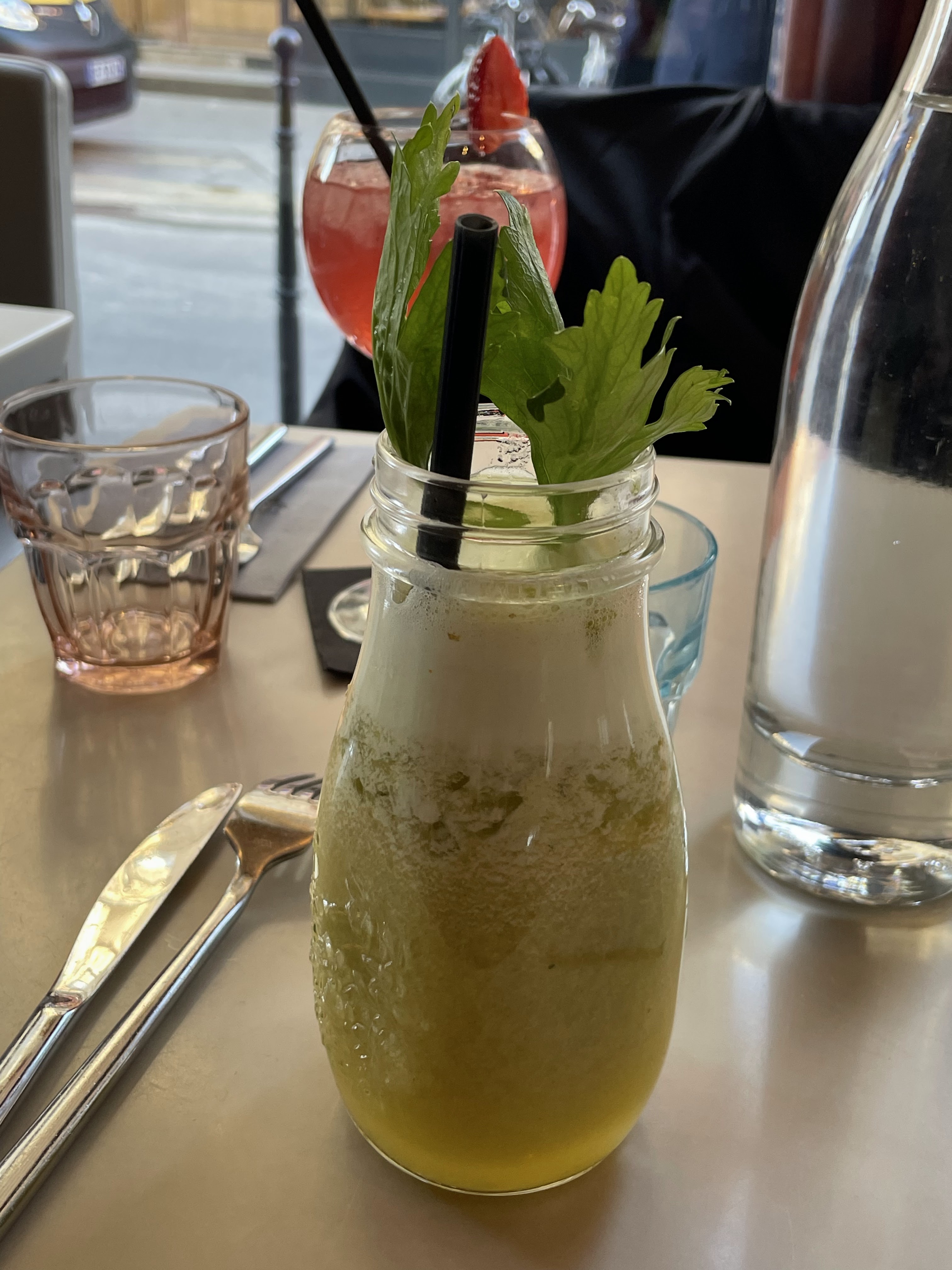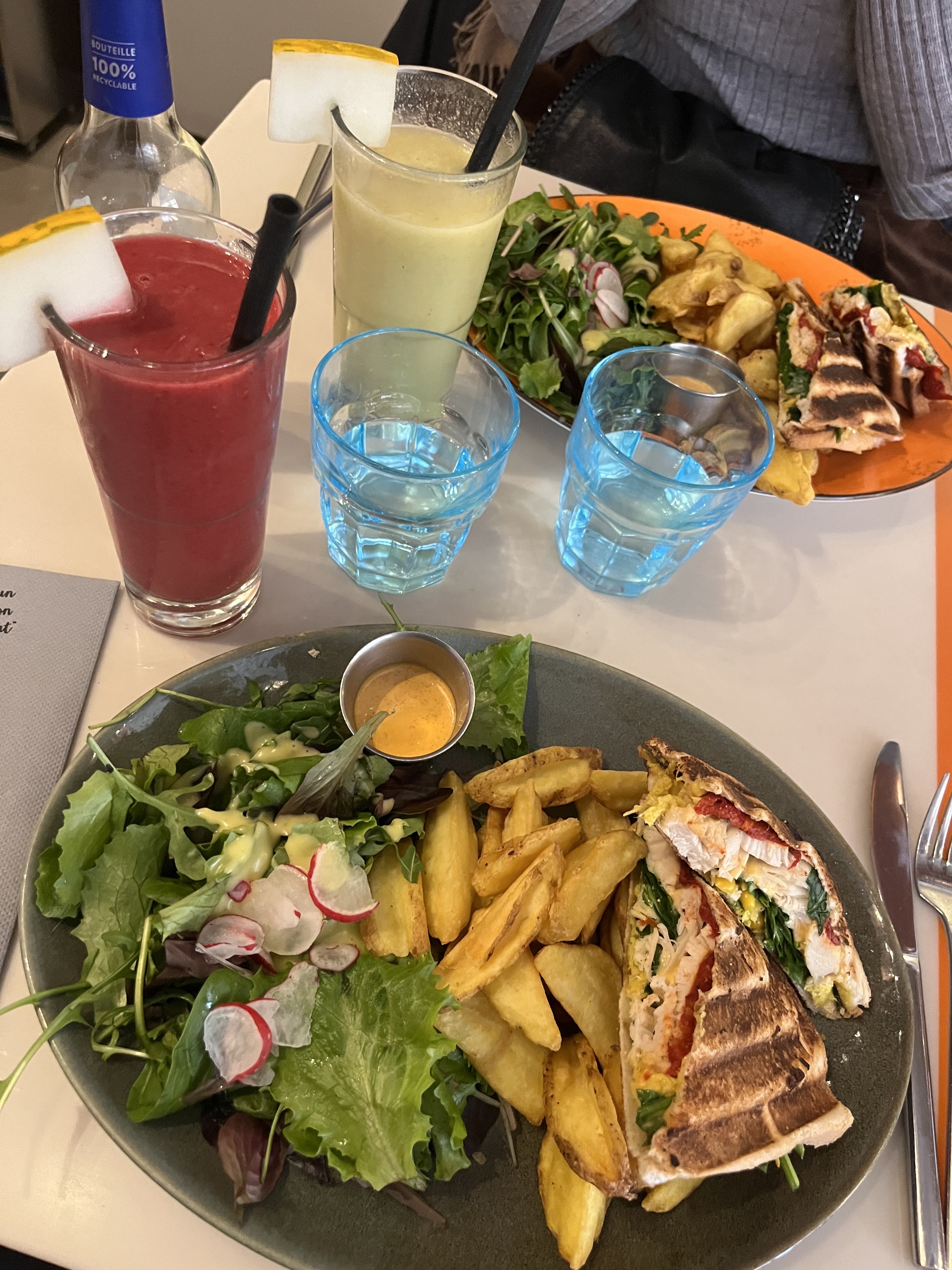 Une boisson originale bio pour accompagner le plat. J'ai adoré le concept, salade fraîche et croque au poulet épicé délicieux. Personnel souriant et disponible.