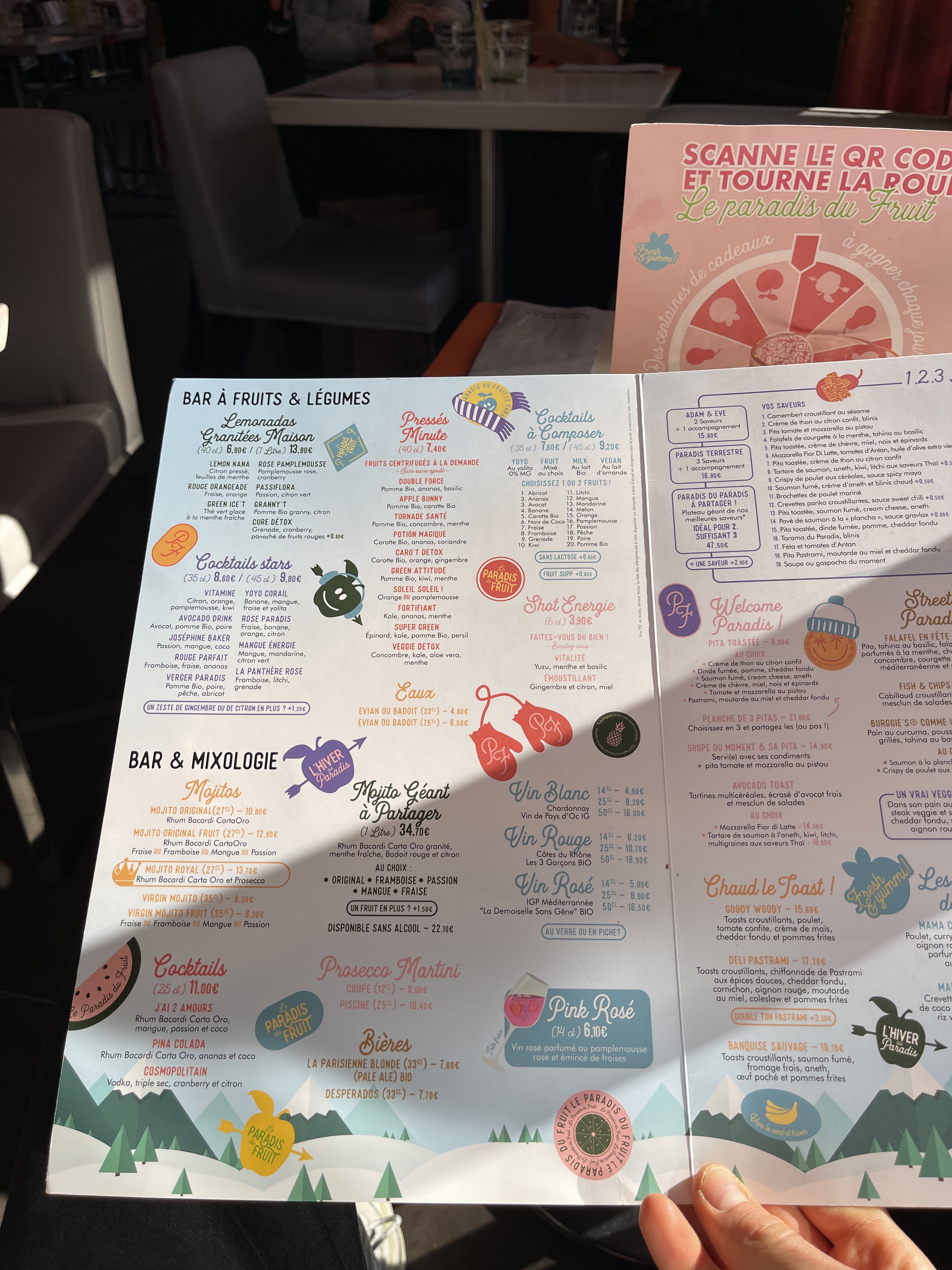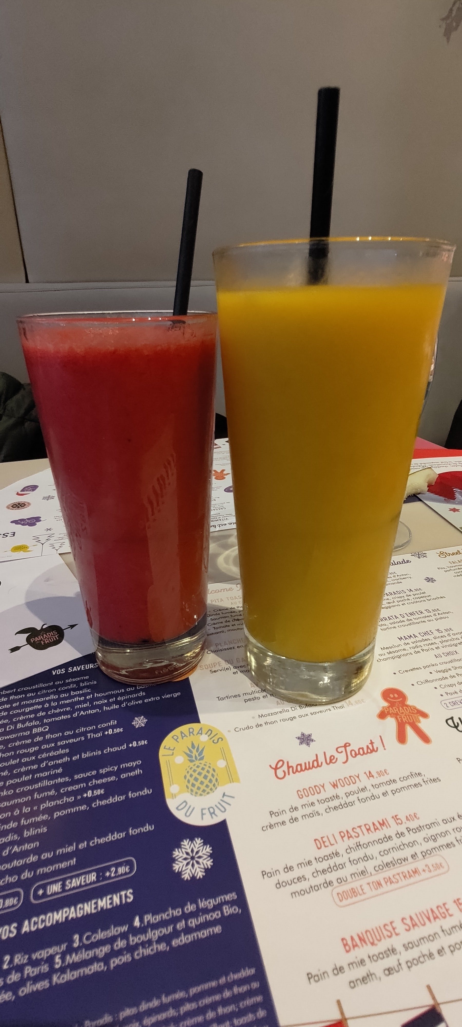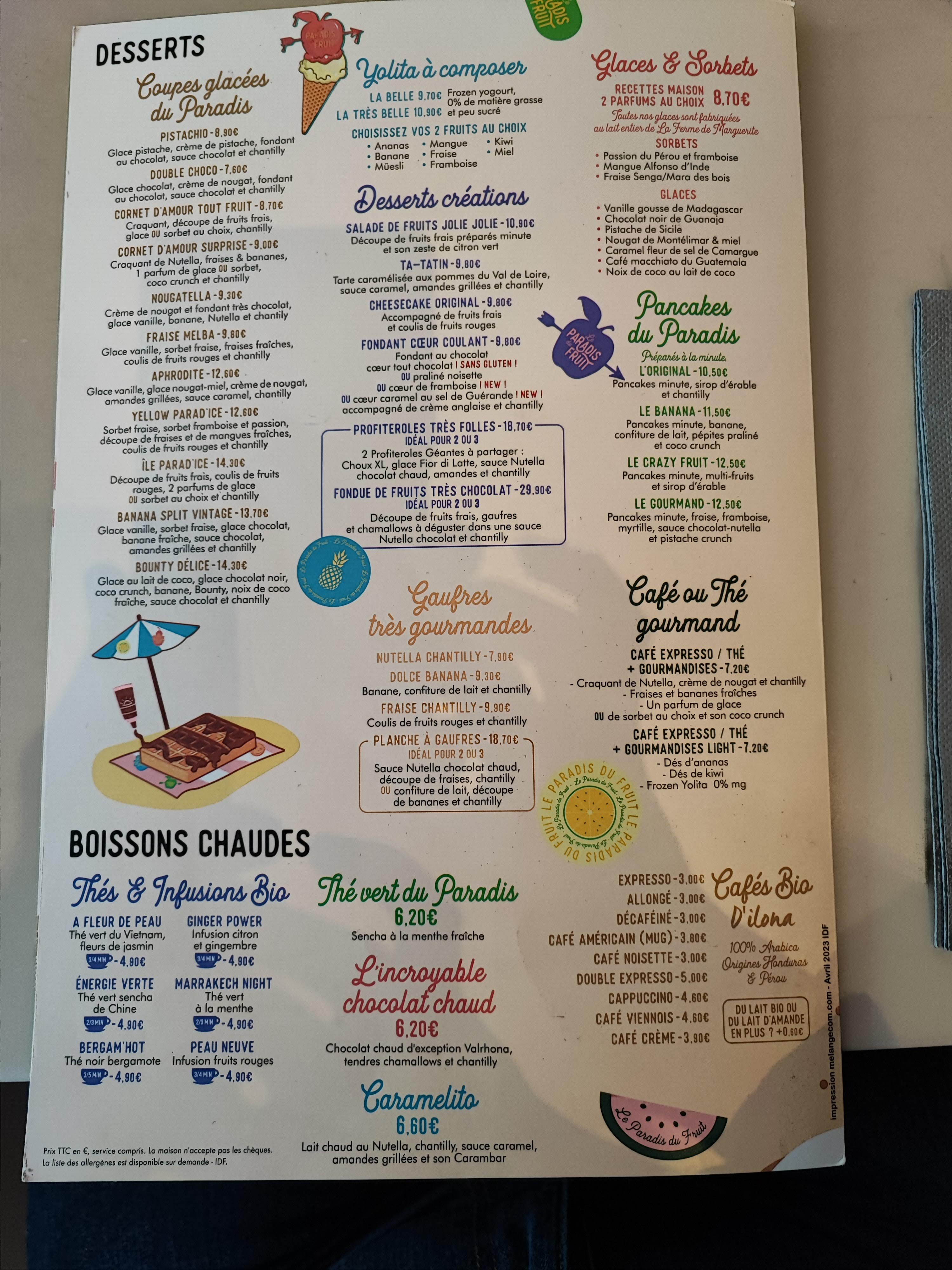 Plusieurs fois passé devant, je peux vous dire que je suis très content de mon expérience aujourd’hui au Paradis du Fruit. La carte est tellement délicieuse et variée que le choix est trop difficile ! Le gros + avec des serveurs et serveuses adorables et serviables !!! Je recommande
