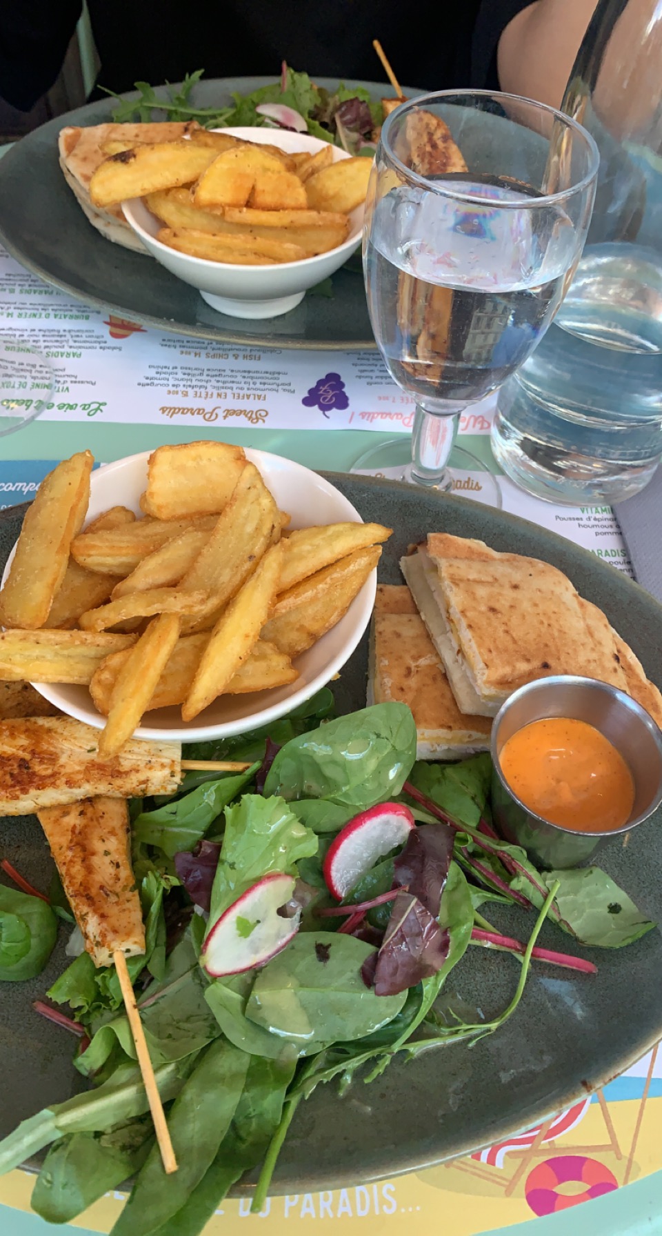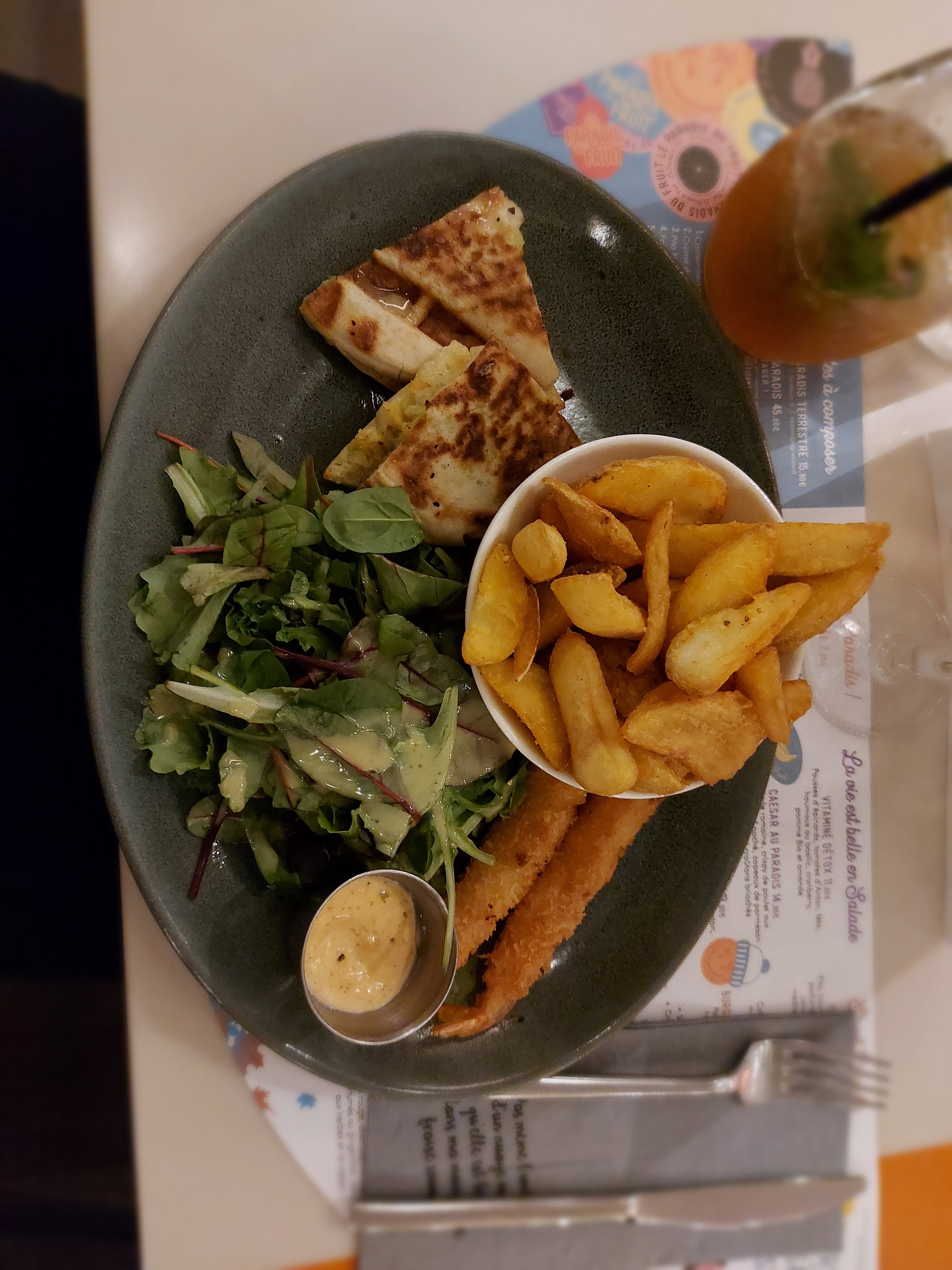 J'ai pris l'assiette à composer Adam et Eve à 13,90€. Pita tomate mozza + crevettes panko et des frites. Il y avait 2 morceaux de chaque et surtout de la salade (c'était pas indiqué sur la carte) je recommande pas du tout. C'était bon mais sans plus...