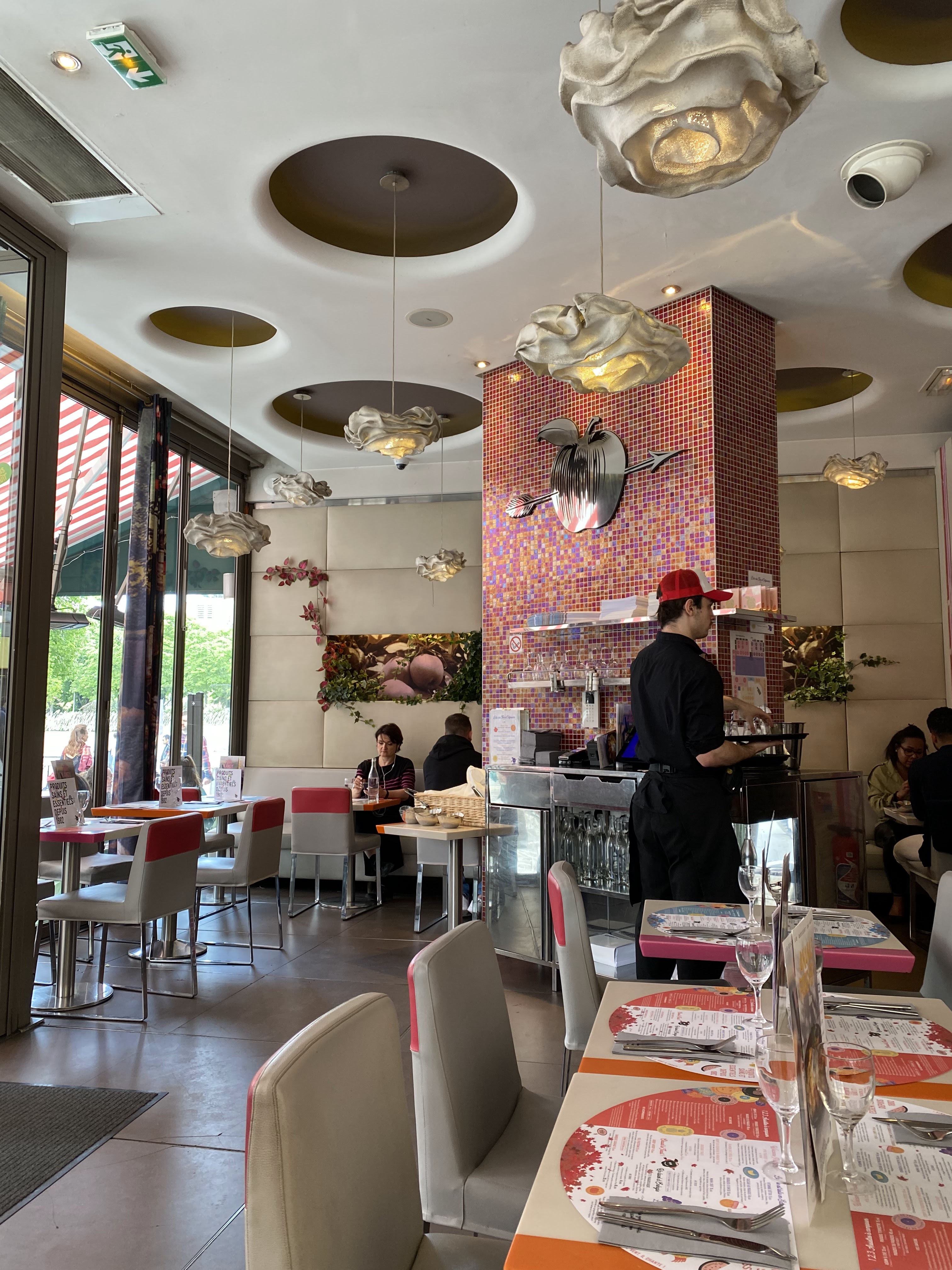 Lieu agréable, facilement accessible depuis le métro ou même depuis le forum des halles où l'on mange bien! Les prix sont assez accessible, il est possible de prendre des plats déjà composé ou alors de composer son assiette selon les différentes viandes/poissons/légumes et accompagnements proposés. Les jus/cocktails sont frais et très bon, le service est impeccable malgré la forte affluence. Seul bémol: nous sommes arrivés à l'ouverture et malgré cela le sol n'était pas super propres et certaines cartes sont tachées ou en mauvais état. Sinon super restaurant pour bien manger!