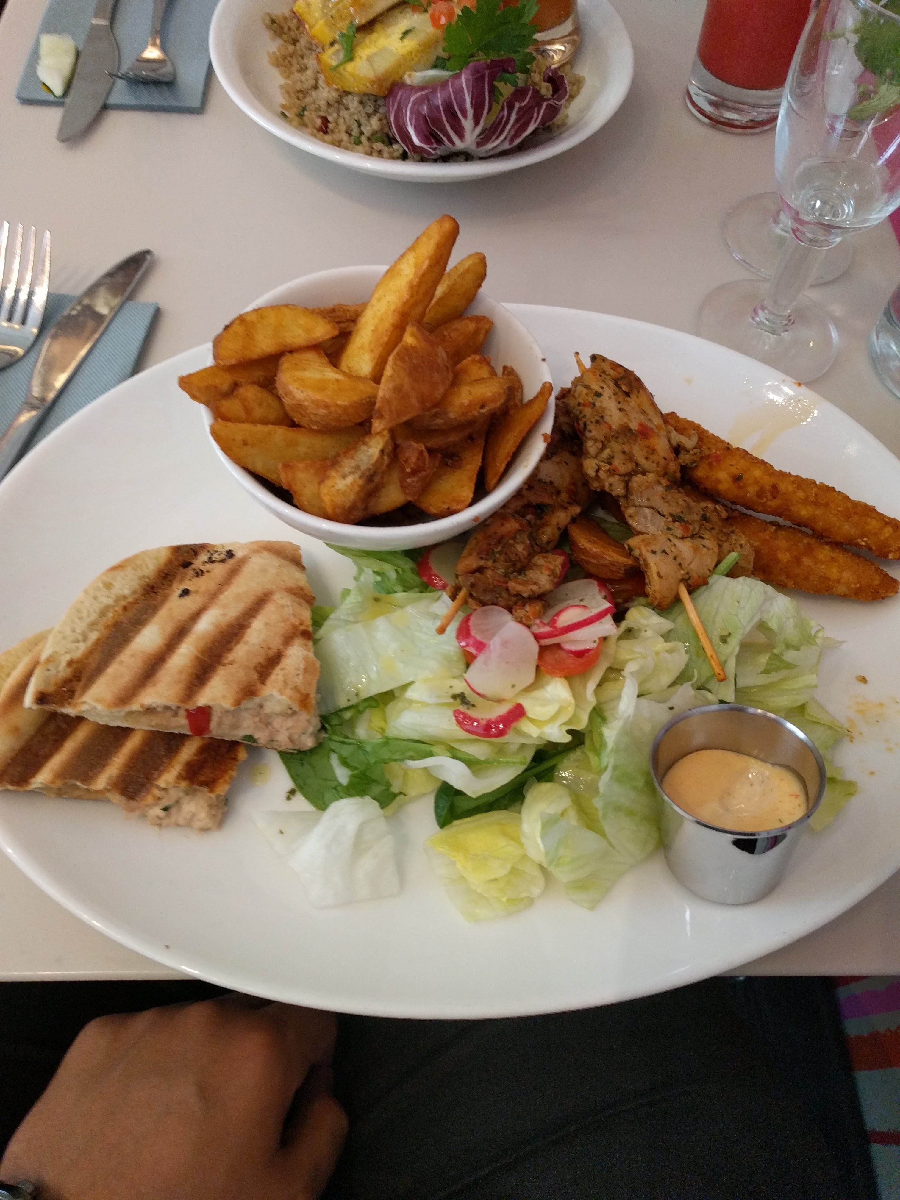 La terrasse est agréable, la localisation, le service est rapide et le personnel aimable. Les plats sont beau visuellement, mais en bouche c'est souvent trop salé, c'est dommage.