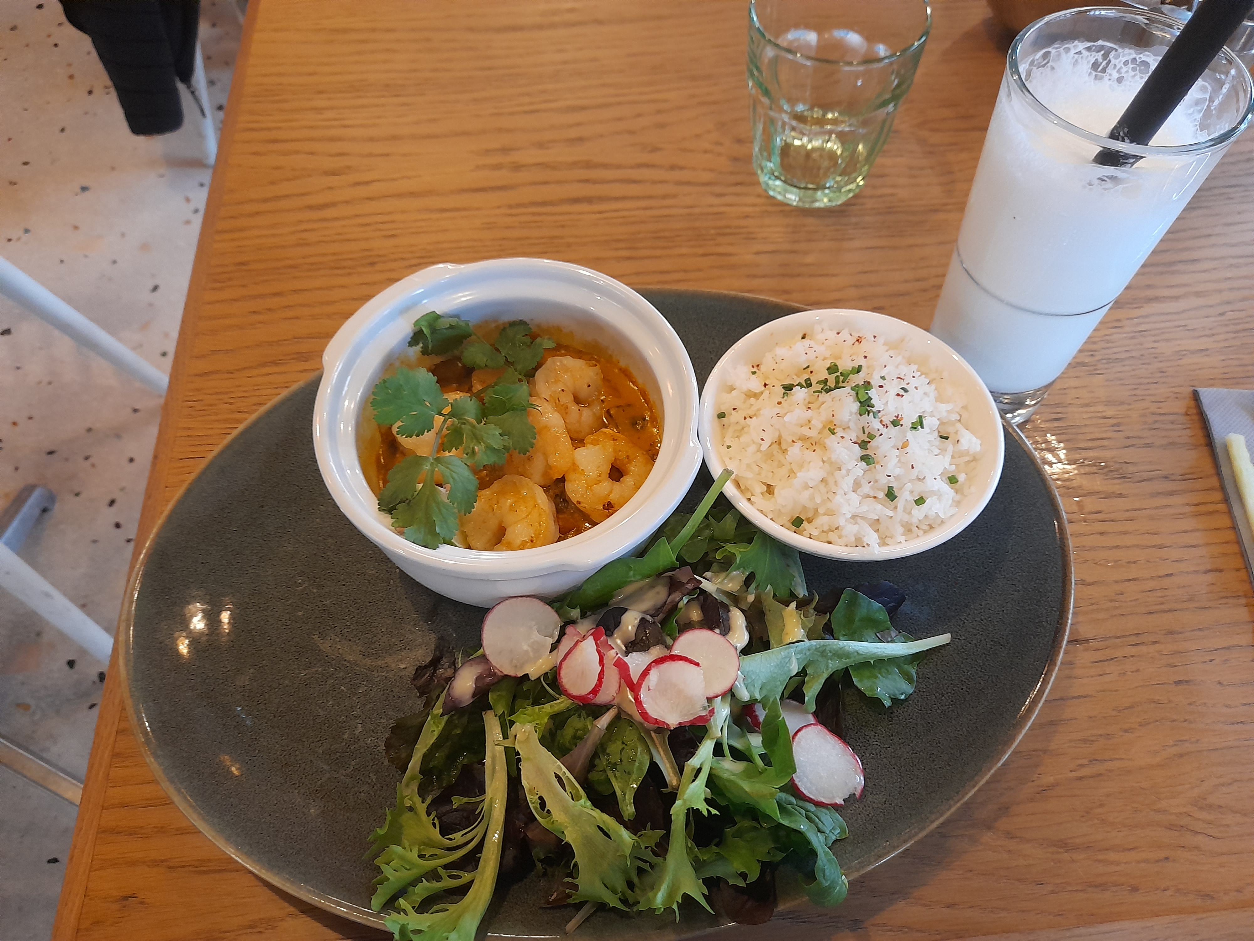 Cela faisait longtemps que je n’étais pas allé dans les restaurants de la chaîne « Le Paradis du Fruit ». J’ai sélectionné la formule déjeuner à 16,90 euros comprenant un choix de plat ainsi qu'une boisson. J'ai pris le plat Mama Chicken Curry ainsi que la boisson « Lemon Nana ». Mama Chicken Curry - Le curry était plutôt bon. En revanche, j’ai trouvé que les morceaux de poulet étaient gras. - On aimerait un peu plus de riz avec ce plat car il y a beaucoup de sauce. Lemon Nana - Très frais et avec beaucoup de goût. Content de mon choix pour la boisson :)