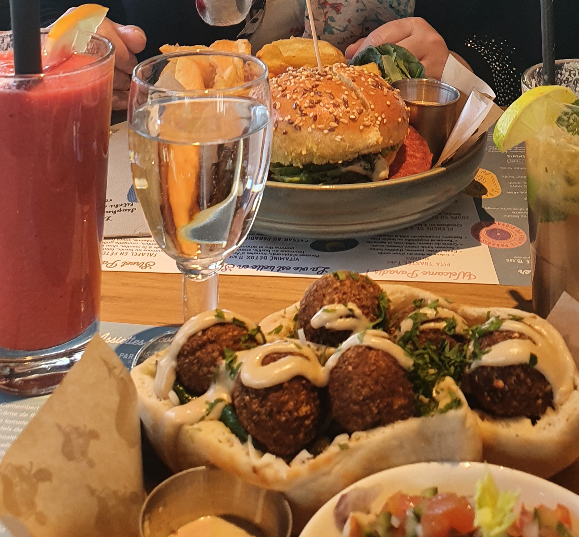 Les plats étaient dé-li-cieux! Le rapport qualité-prix est parfait. Mais ce qui fait de cette place un paradis c'est le personnel. Ils sont juste très mignon.nes! C'est devenu mon restau préféré. Les trois plats qu'on a pris étaient le Falafel en fête, Un vrai veggi'burger et l'Avocado toast avec mozzarella di bufala. Je recommande surtout leur Virgin mojito classique.