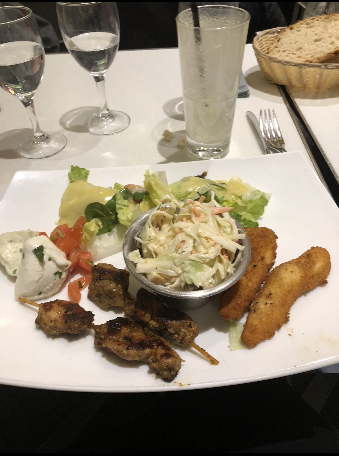 Serveurs qu’ils ne connaissent pas la composition de certains cocktails. Mojitos a l’eu avec de l’alcool vraiment n’importe quoi 13,10€ pour ça à revoir , manque de boissons coca,ice tea… Pita toster un peu sec , crispy poulet et brochettes incroyables. Serveur brun à lunettes super cool , à l’écoute et très serviable.