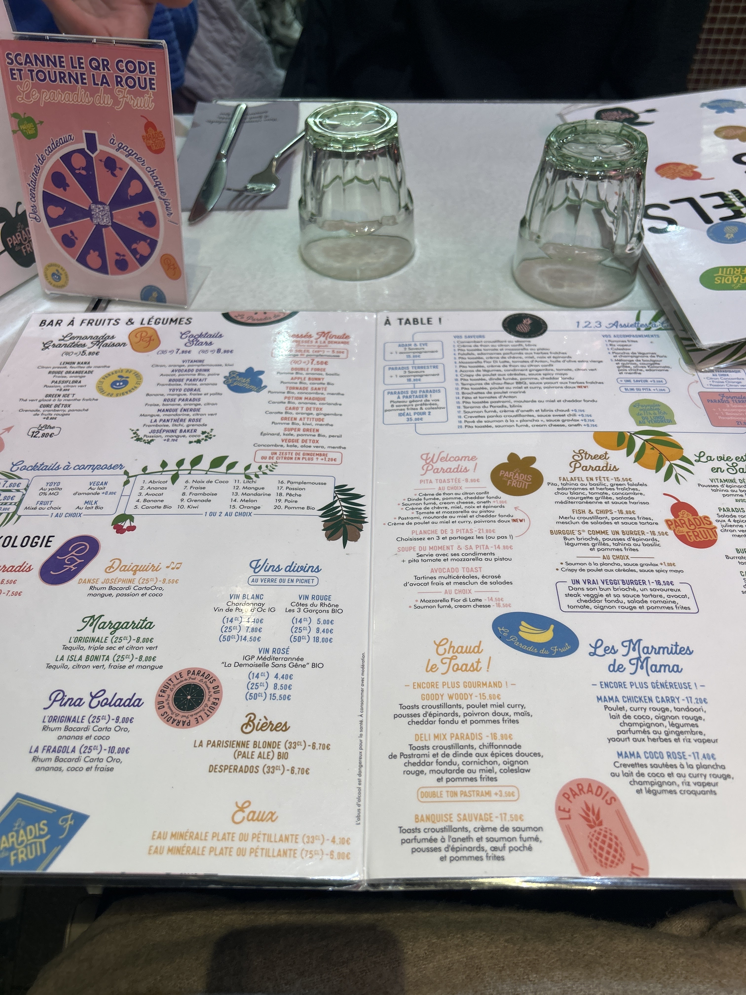 Un peu difficile de s'y retrouver sur la carte mais il y a une grande variété de boissons, plats et desserts autour du fruit. Les restaurant est de plein pied et accessible au PMR. Il y a des chaises hautes pour les enfants en bas âge. J'y suis aller pour le goûter et j'y retournerais me faire un second avis.