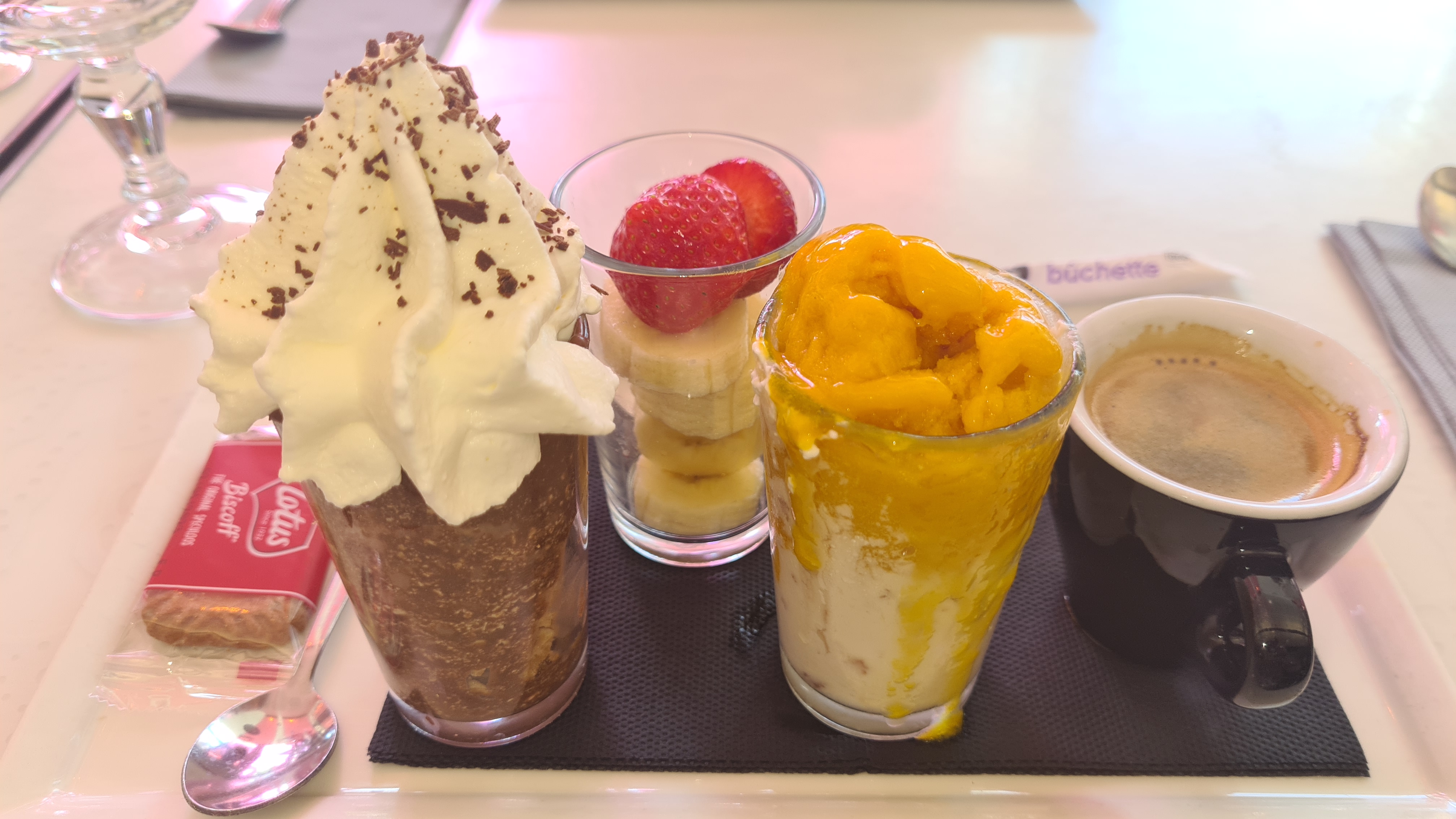 Les desserts sont bons et copieux. Le service est de qualité et le restaurant a une jolie décoration où on s’y sent très bien. Top si vous voulez faire une pause !