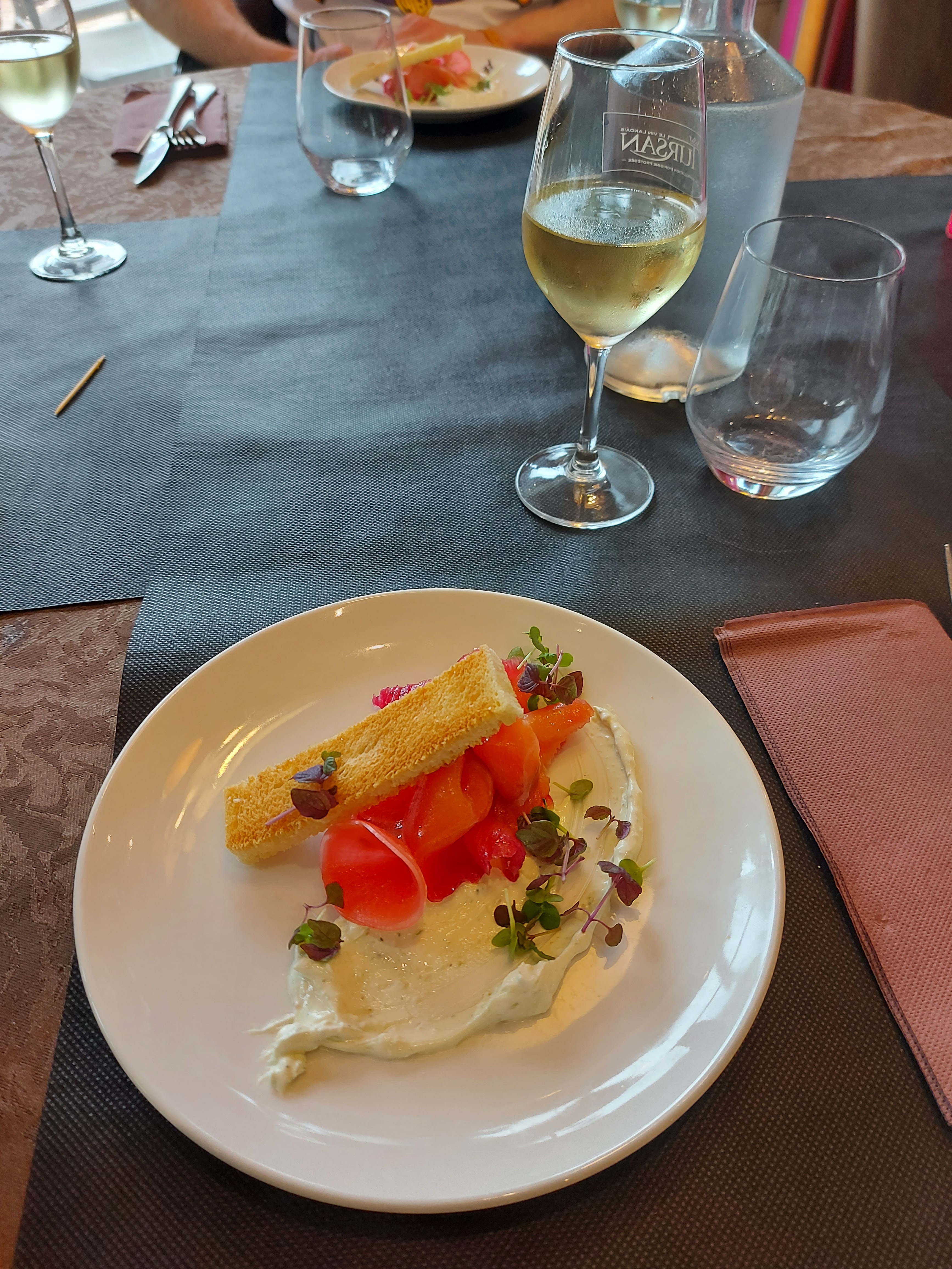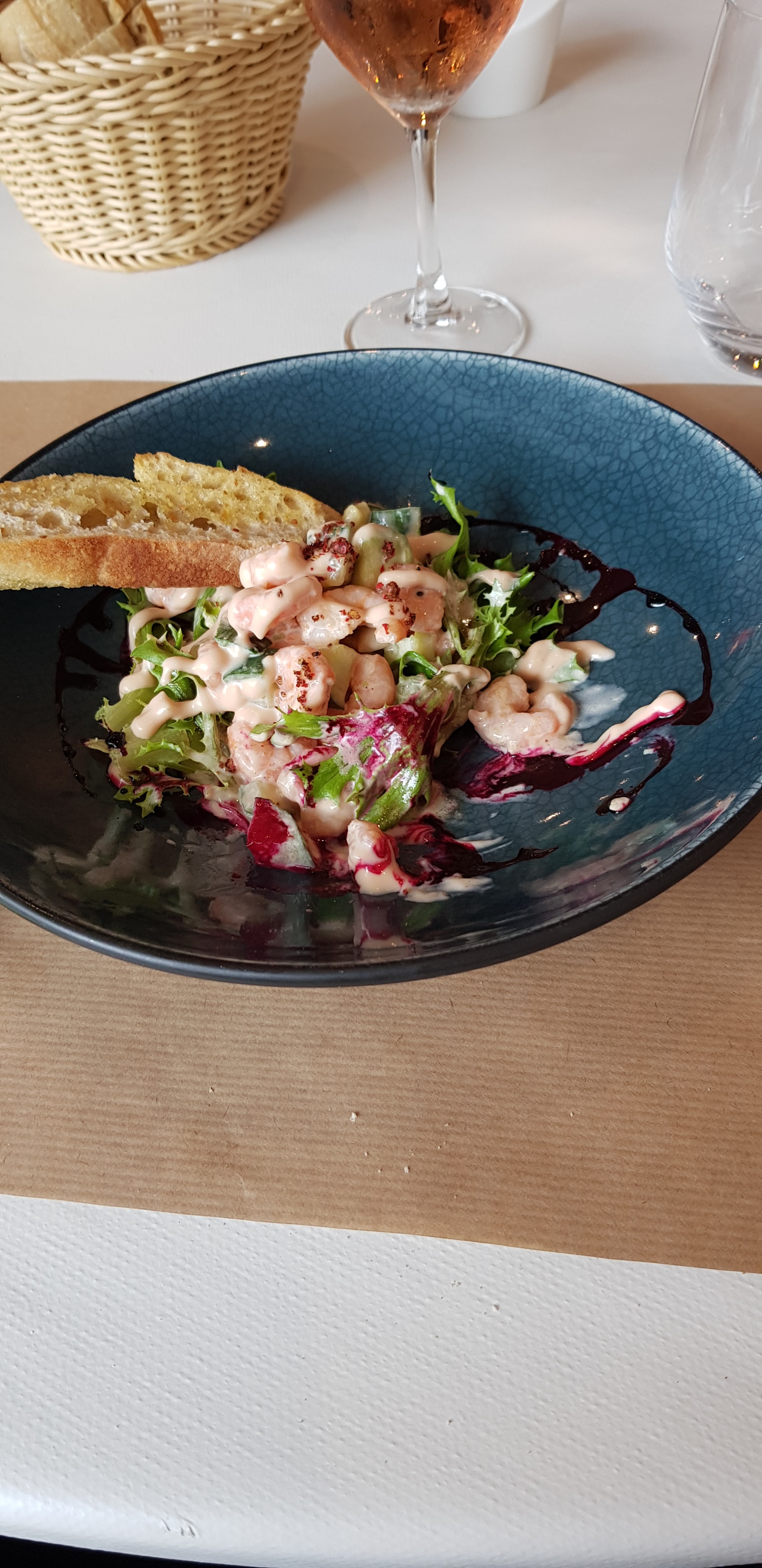 Déçue… rillettes de crabe en très petite quantité servi avec le pousse dans le bol! Lieu par contre très bien cuit mais sauce fade, dessert entremet mangue passion avec un goût plutôt industriel .. dommage après c était le 1er Mai …