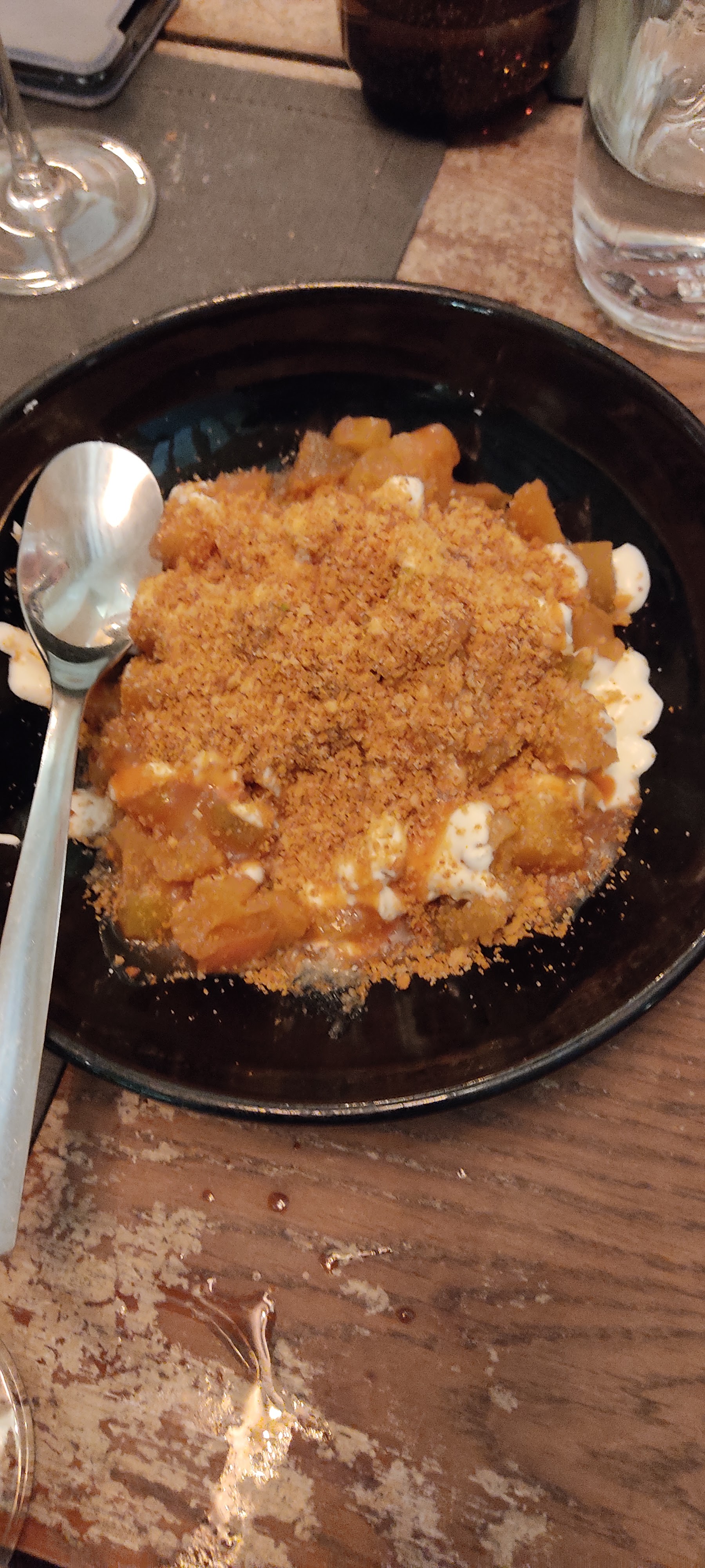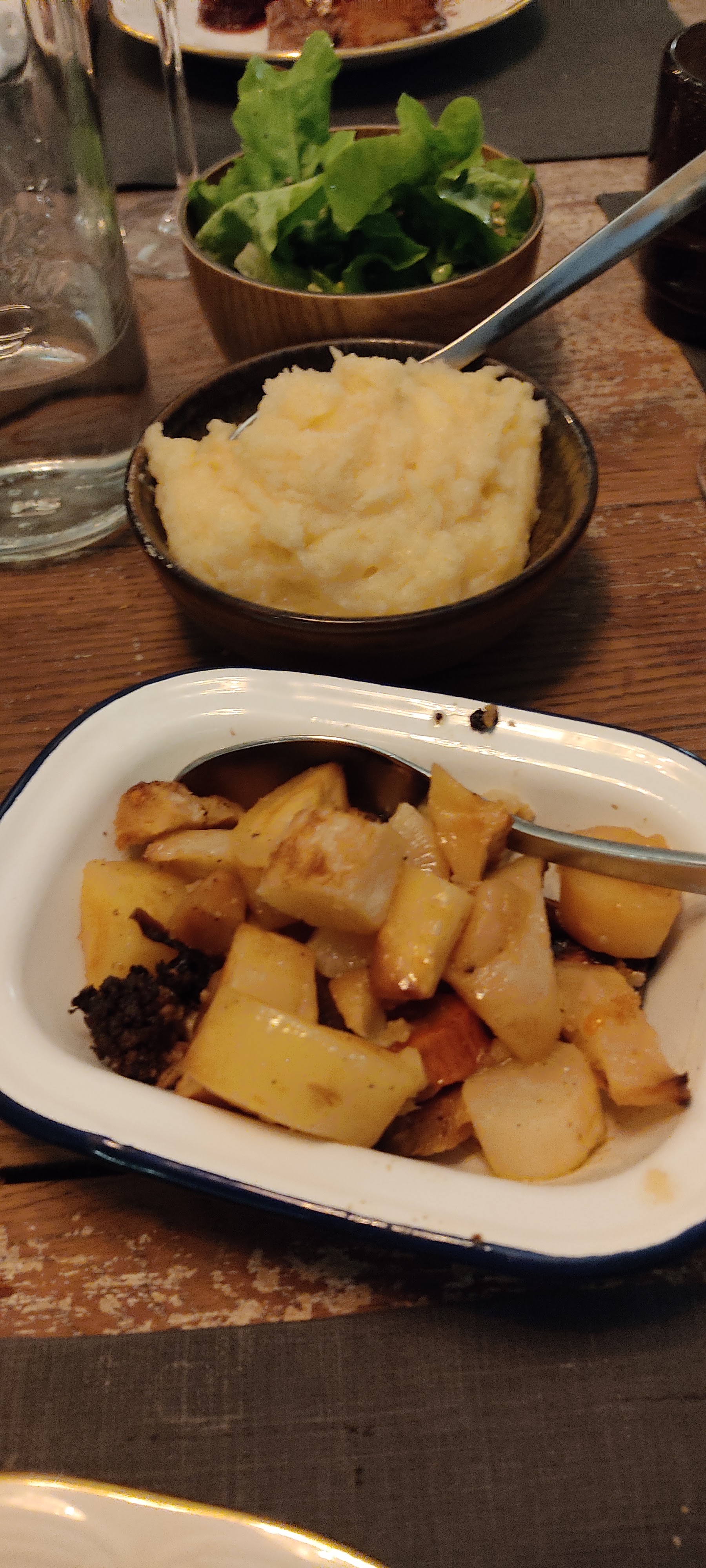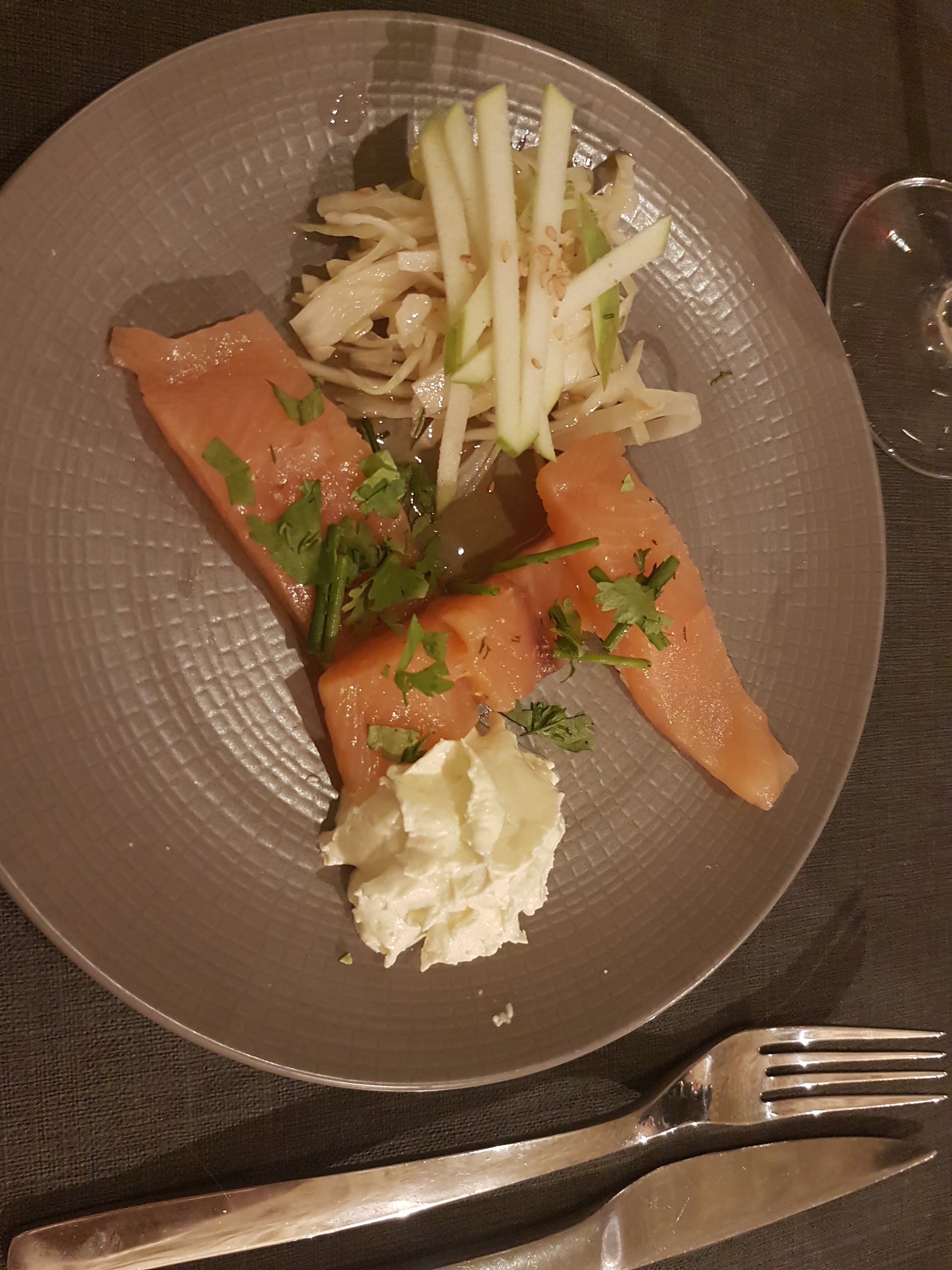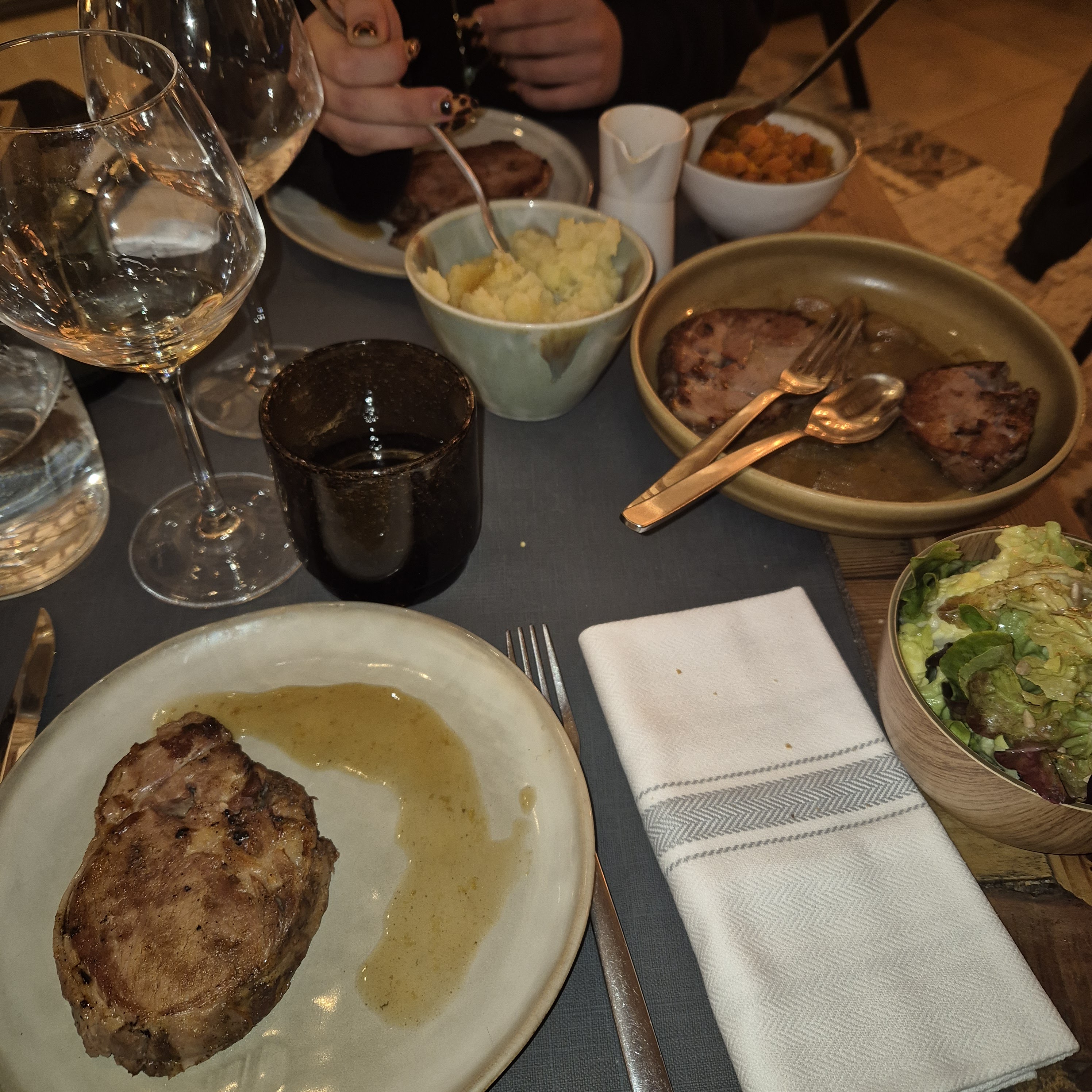 Assiettes sales dès l’arrivée (les 4) + certains couverts… plats froids même si très bonne qualité.. cela gâche tout Verre à vin enlevé alors que j’ai 25 ans… on reviendra pas