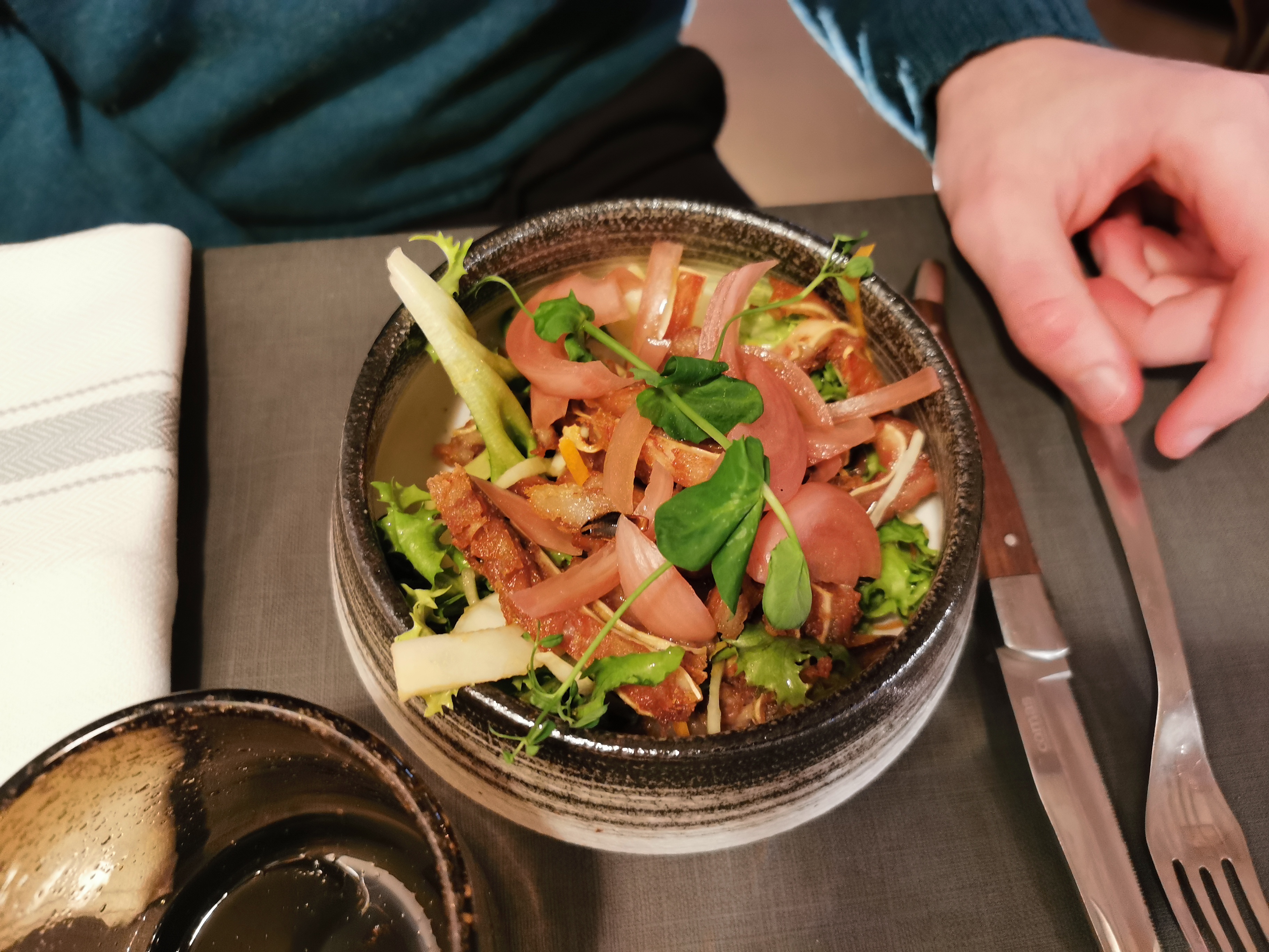 Salle très chaleureuse Cuisine très soignée et raffinée Nous avons juste trouvé que les portions des plats à partager sont un peu juste surtout pour monsieur. Bon vin Soirée agréable