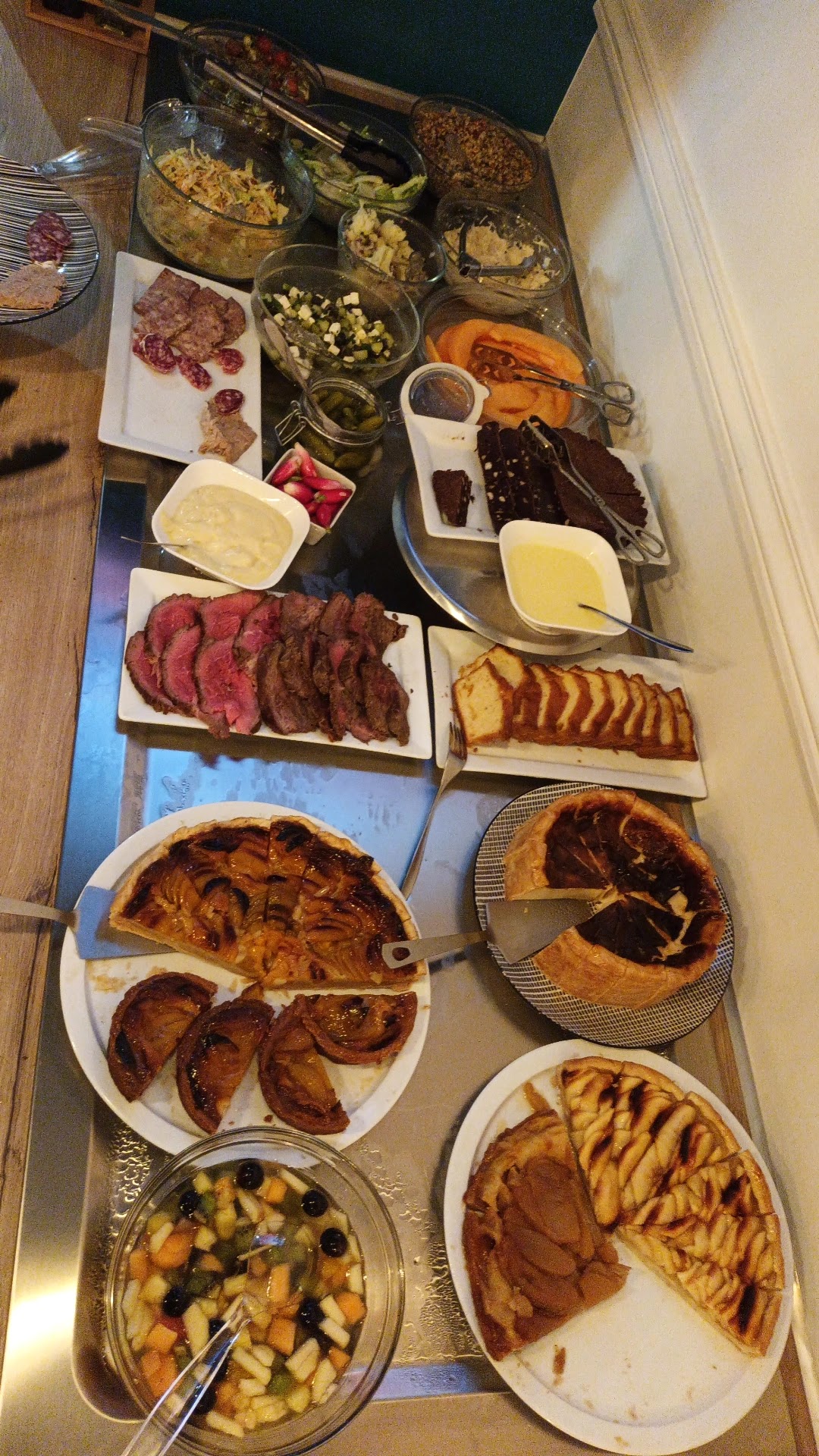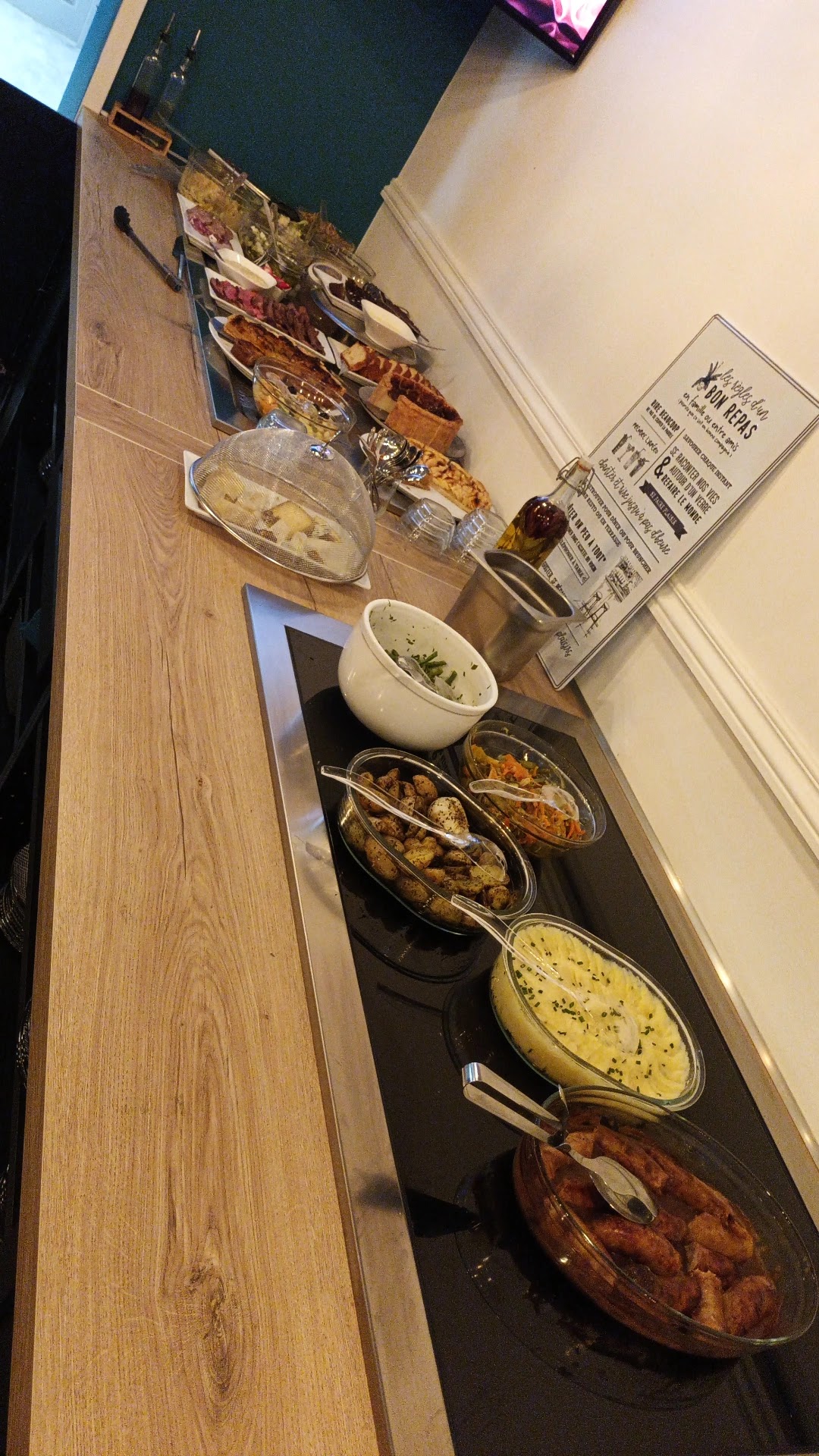 Nice buffet with starters, mains, and desserts. Welcoming owners. Beau buffet avec des entrées, plats principaux et des desserts. Propriétaires acceuillants.