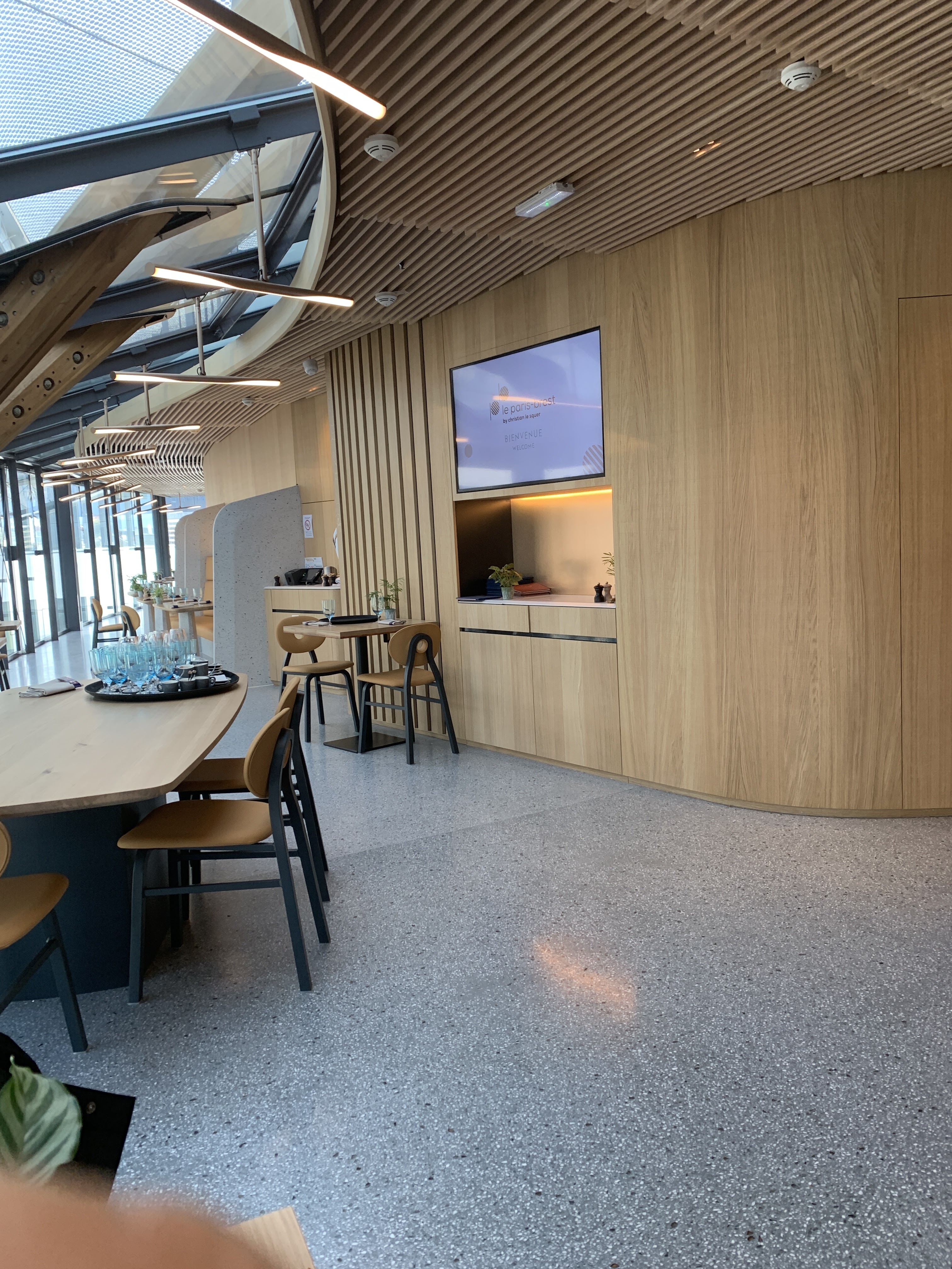 Le service était impeccable et très agréable mais le positionnement de notre table ne nous a pas conquis, coté à côté et face la bulle de la gare avec ses lumières bleues. Nous avons testé le menu découverte, qui doit se prendre forcément pour toute la table mais qui était très bon et pour lequel nous avons pu changer le dessert pour prendre le fameux et délicieux Paris-Brest. L’entrée et le poisson était très bien et délicieux mais la plat fait un peu baisser la courbe de satisfaction car moins surprenant en bouche mais tout de même très bon !! Nous avons tout de même passé une très belle soirée dans ce restaurant qui ne nous donnent pas le sentiment de de voir les riches pour y manger ;)