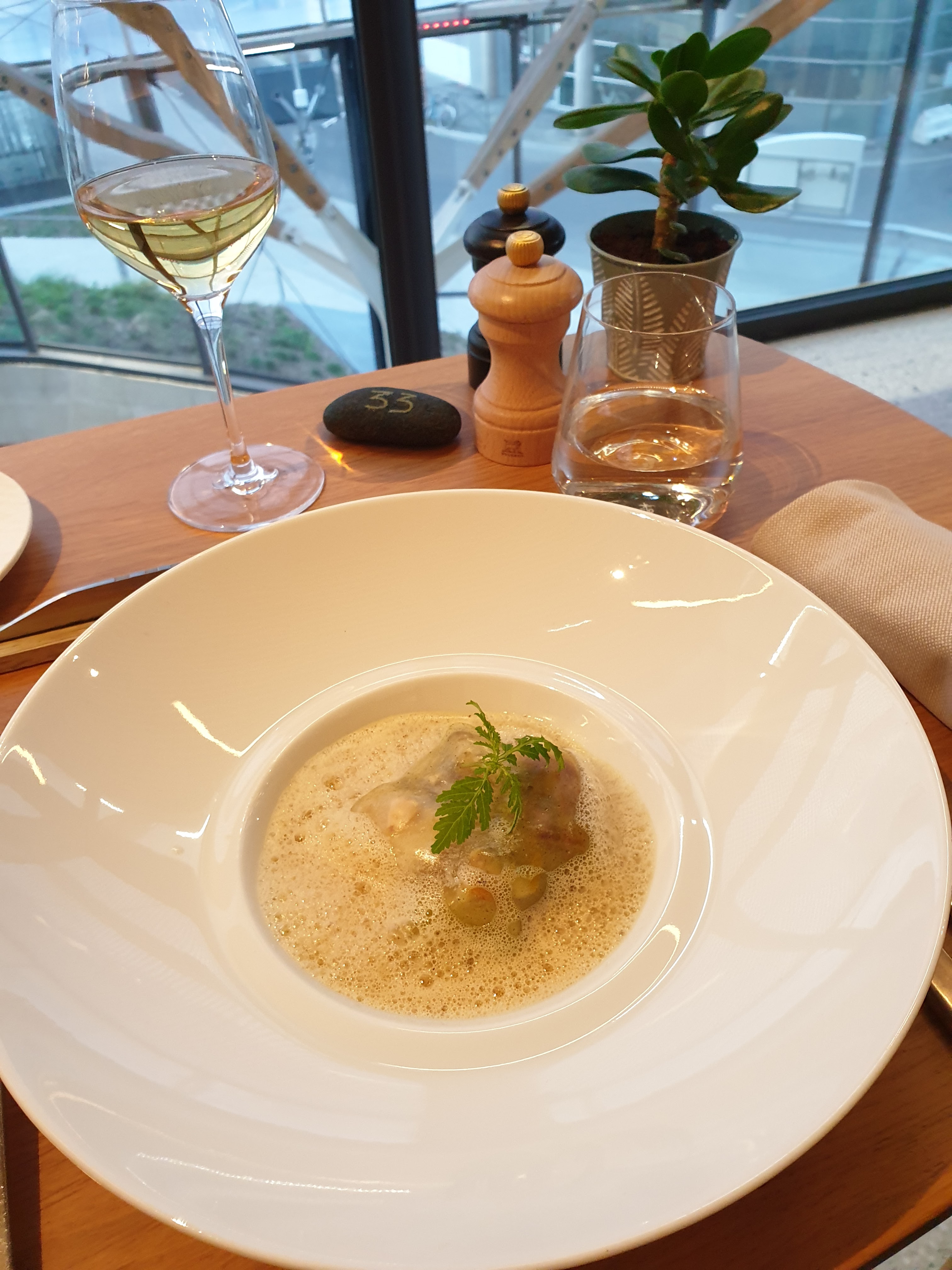 Un accueil des plus chaleureux. Un lieu à l'architecture très belle et originale. Les tables sont espacées et le restaurant est très calme, bien insonorisé. Je me suis régalée, de l'amuse bouche au dessert, tout était parfait avec toujours une touche d'originalité. Je remercie Lucas pour son professionnalisme et sa bienveillance.