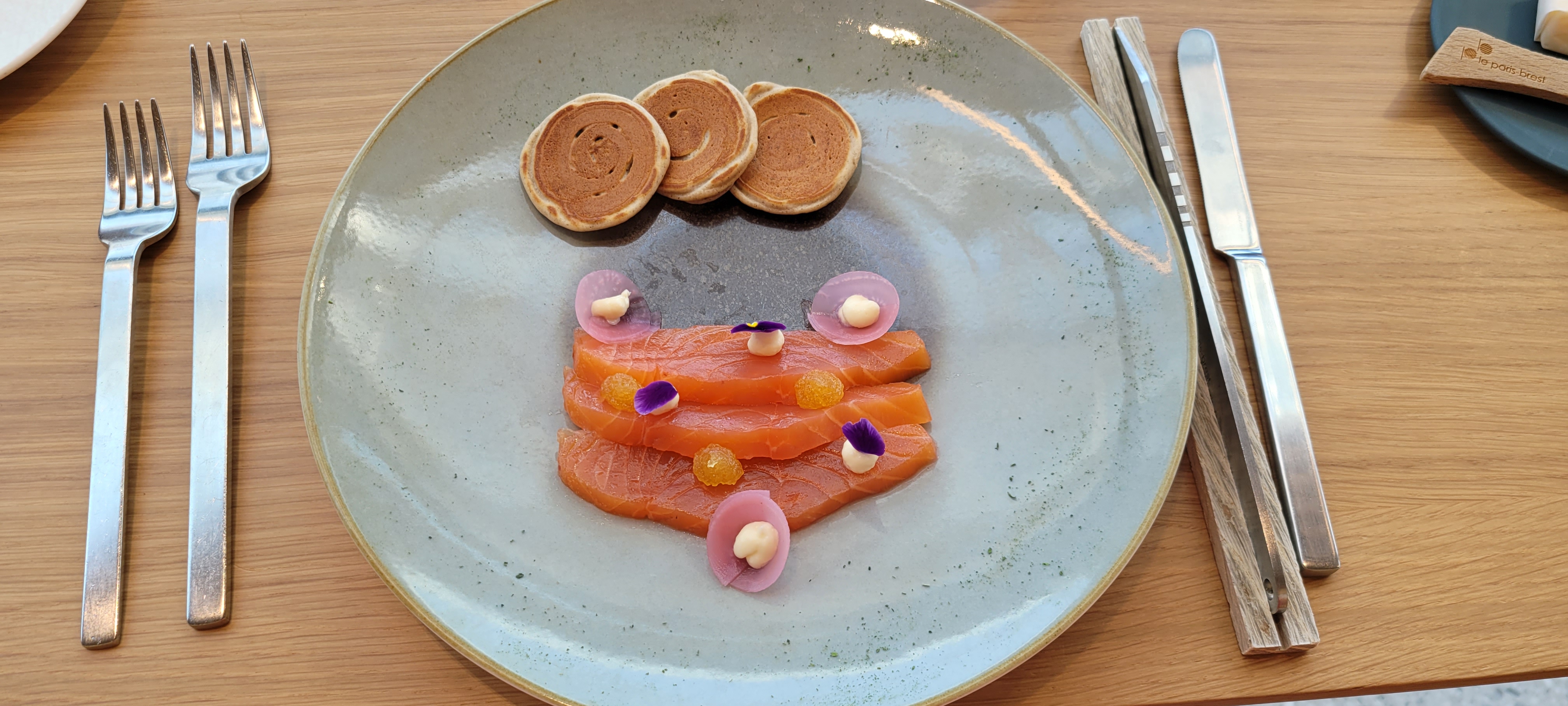 Super moment passé.L'équipe en salle est passionnée,souriante,très attentionnée. En ce qui concerne la cuisine, c est exellent!! Tout est fait maison et cela ce ressent dés la première bouchée de chaque plat. Aucune fausse note au niveau du gout et de la présentation. Le décor est soigné et original. A recommander fortement. Un grand MERCI à toute l équipe du Paris Brest.