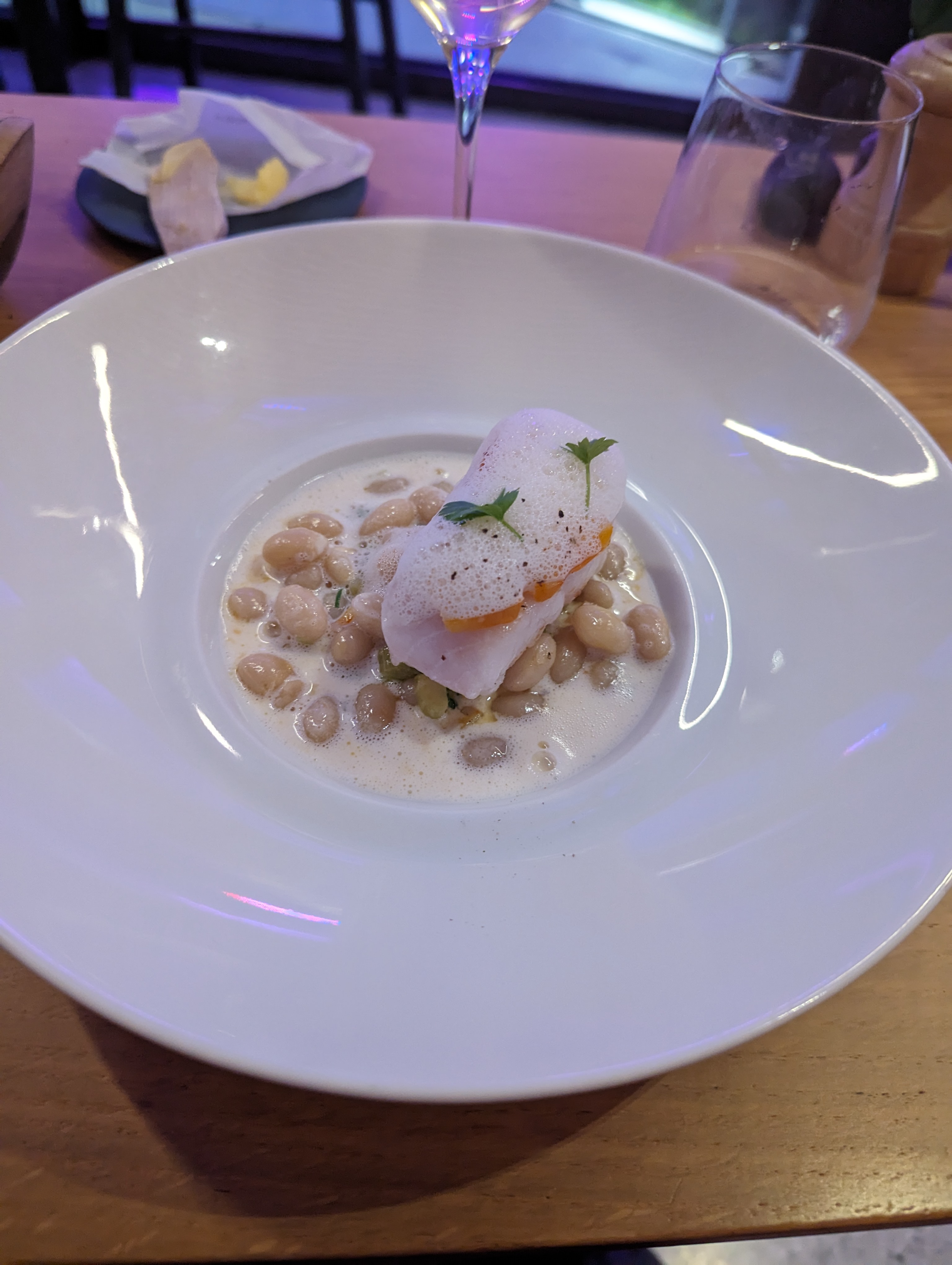 A notre arrivée, personne ne savait où nous placer... (la réservation était faite et confirmée). S'en est suivi 45 min d'attente pour recevoir un plat de résistance. Une fois placés, le pain arrive à notre secours et nous permet d'avoir de quoi nous restaurer en guise d'entrée, dommage pour ceux qui ne peuvent pas en manger, ce qui est mon cas. Depuis l'interlude du pain, plus rien, on ne s'occupe pas de nous. Nous sommes contraints de demander à un serveur ce qu'il advient de nos plats. En finalité, 29€ pour une lotte rôtie pas assez cuite (quand bien même la cuisson était à basse température). Il subsiste une différence entre un type de cuisson et un manque de cuisson. Cela dit, l'accompagnement (riz noir environ 150g) était bien cuit, c'est déjà ça. Plus globalement, le plat était bcp trop salé, c'est triste pour la lotte. En résumé, c'est une première pour moi de quitter un restaurant en ayant faim à ce prix là, tout en n'ayant pris aucun plaisir. Addition trop salée pour la qualité de l'assiette, le retard et le service !