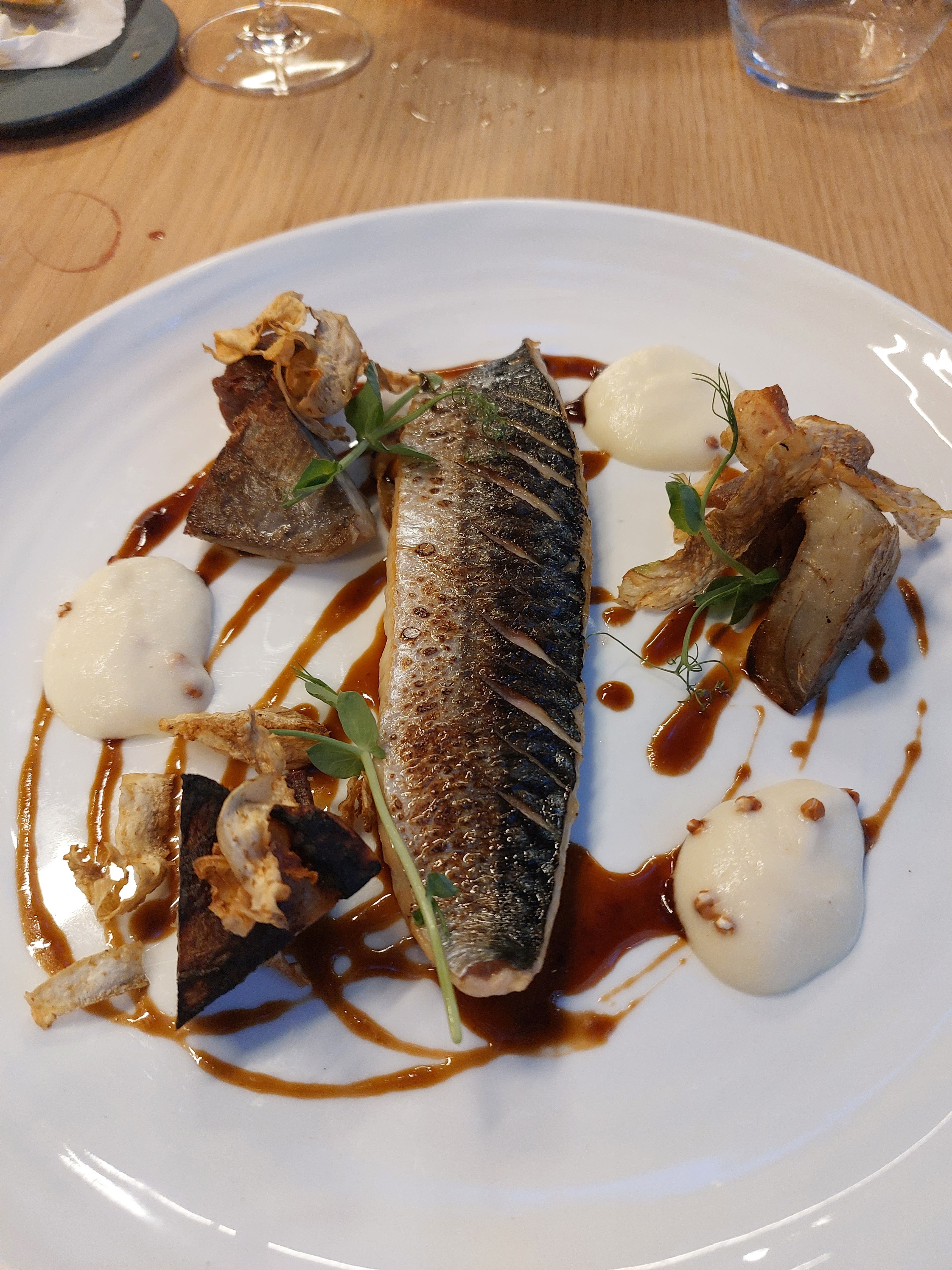 J'ai découvert ce restaurant en arrivant en gare et ai décidé d'y déjeuner. Et wow, vraiment wow ! Quelle bonne surprise ! Les plats sont aussi beaux que bons, très délicieux. J'ai beaucoup aimé le lieu jaune, un poisson que je mangeais beaucoup dans ma jeunesse et qui a été très bien mis en valeur dans ce plat. Le prix est très correct pour un tel menu, qui me laissera un très bon souvenir. Si je peux me permettre, une mention spéciale à votre personnel : j'ai beaucoup aimé leur sens du contact, leur connaissance de la carte et des produits, mais aussi leur style courtois mais amical pour echanger quelques mots. Ça fait très plaisir de voir des jeunes travailler ainsi. Merci à vous pour ce très bon moment.