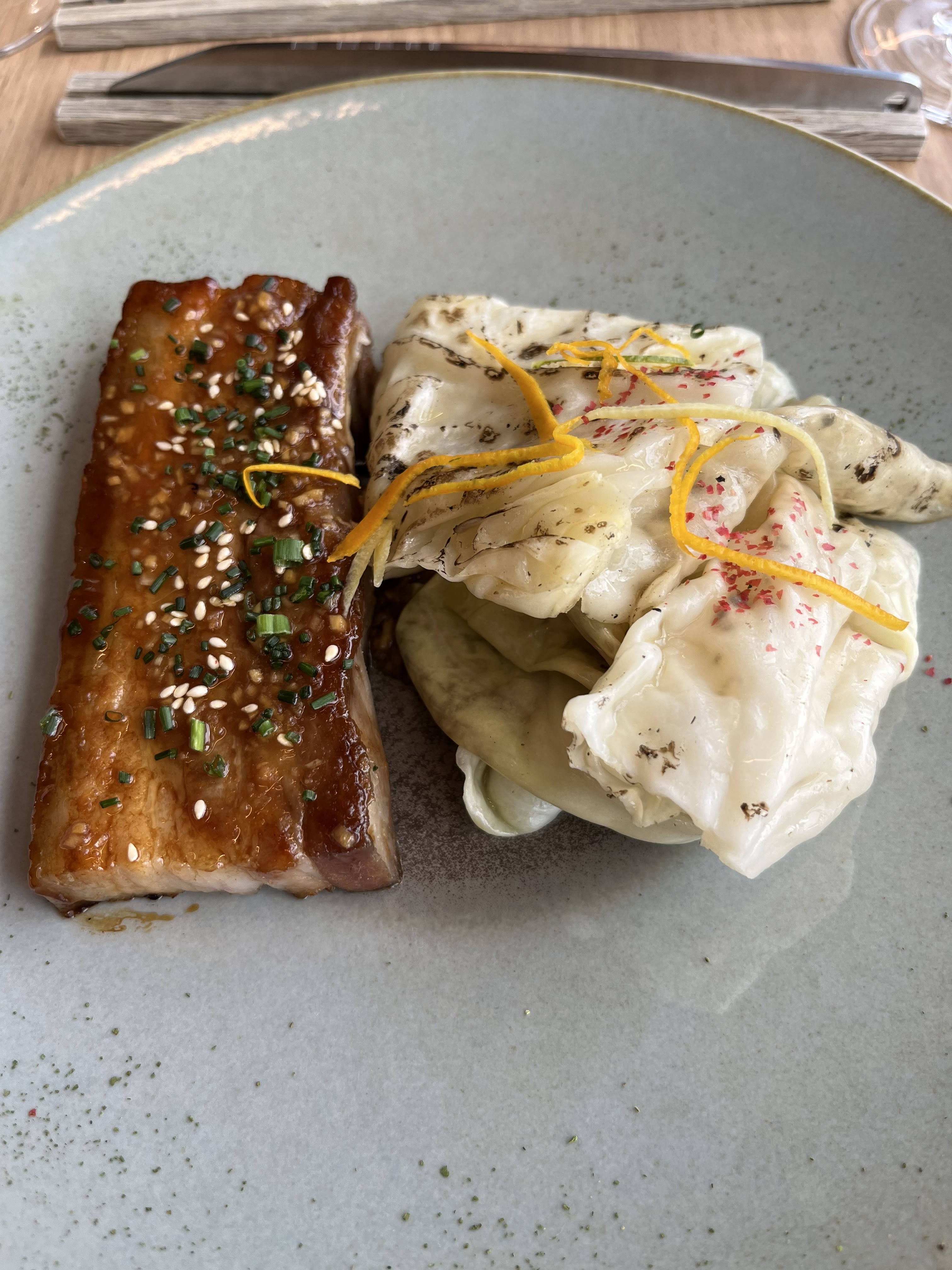 Qui n’a pas goûté à la poitrine de cochon confite et caramélisée accompagnée de son étuvée de choux, passe, quelque part, à côté de la vie. Le service est autant discret que prévenant et efficace. La décoration moderne et surprenante. Pour nous un grand moment !