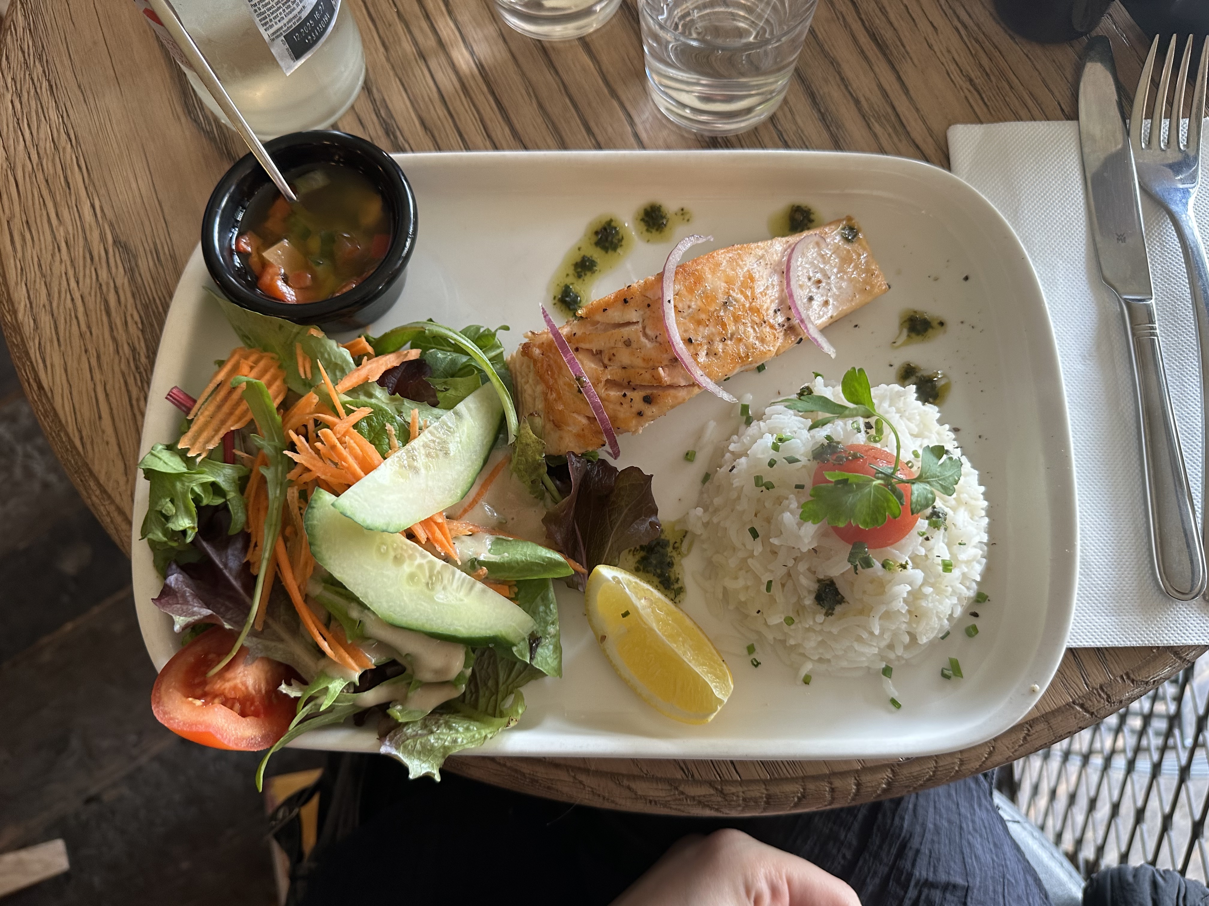 Nous avons bien apprécié notre burger d'Orsay et notre saumon grillé dans ce café. Le personnel était sympathique, le menu peu complet mais représentatif de la cuisine locale et des plats réconfortants (burgers). Ils ont de la bière pression, ce qui était bien. Le dessert - tarte aux pommes (tarte tatin) - était bon et juteux. Les vapeurs de la cuisine imprègnent l'air, donc si vous n'aimez pas ça, cet endroit n'est pas pour vous. Nous avons adoré et recommandons.