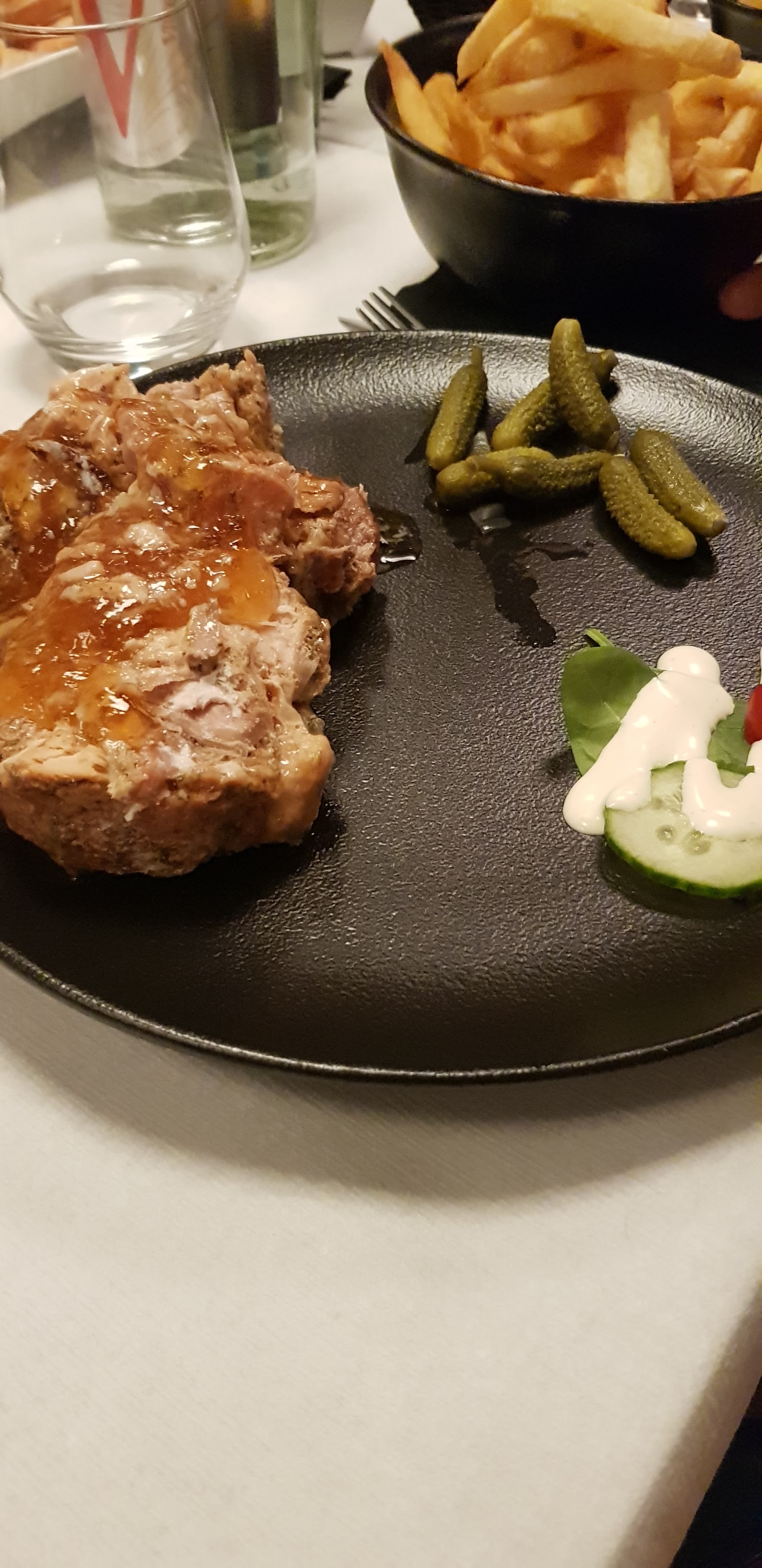 Quel accueil ! Un serveur qui avait l’air d’être sympathique avec les autres tables sauf la nôtre ( peut être que nos têtes ne lui convenait pas ). Jamais un bon appétit, j’ai réclamé de l’eau à plusieurs reprises mais rien j’ai dû aller la chercher au bar de moi même … De plus j’ai demandé où était les toilettes il m’a répondu à l’étage alors que j’étais en béquille heureusement que ces collègues m’ont redirigé vers les toilettes du bas. Cependant la cuisine était bonne mais gâché par cette tête de C**