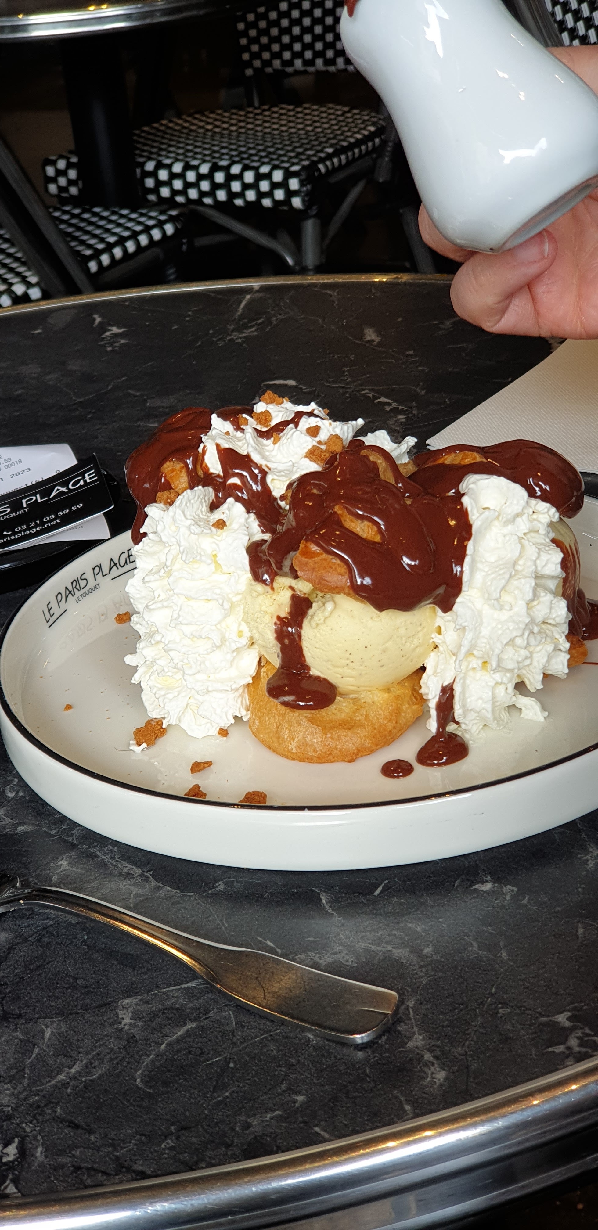Nous nous sommes régalés. Les moules aux maroilles étaient absolument délicieuses. Si vous complétez avec des profiteroles, vous n’en serez guère déçu.e !