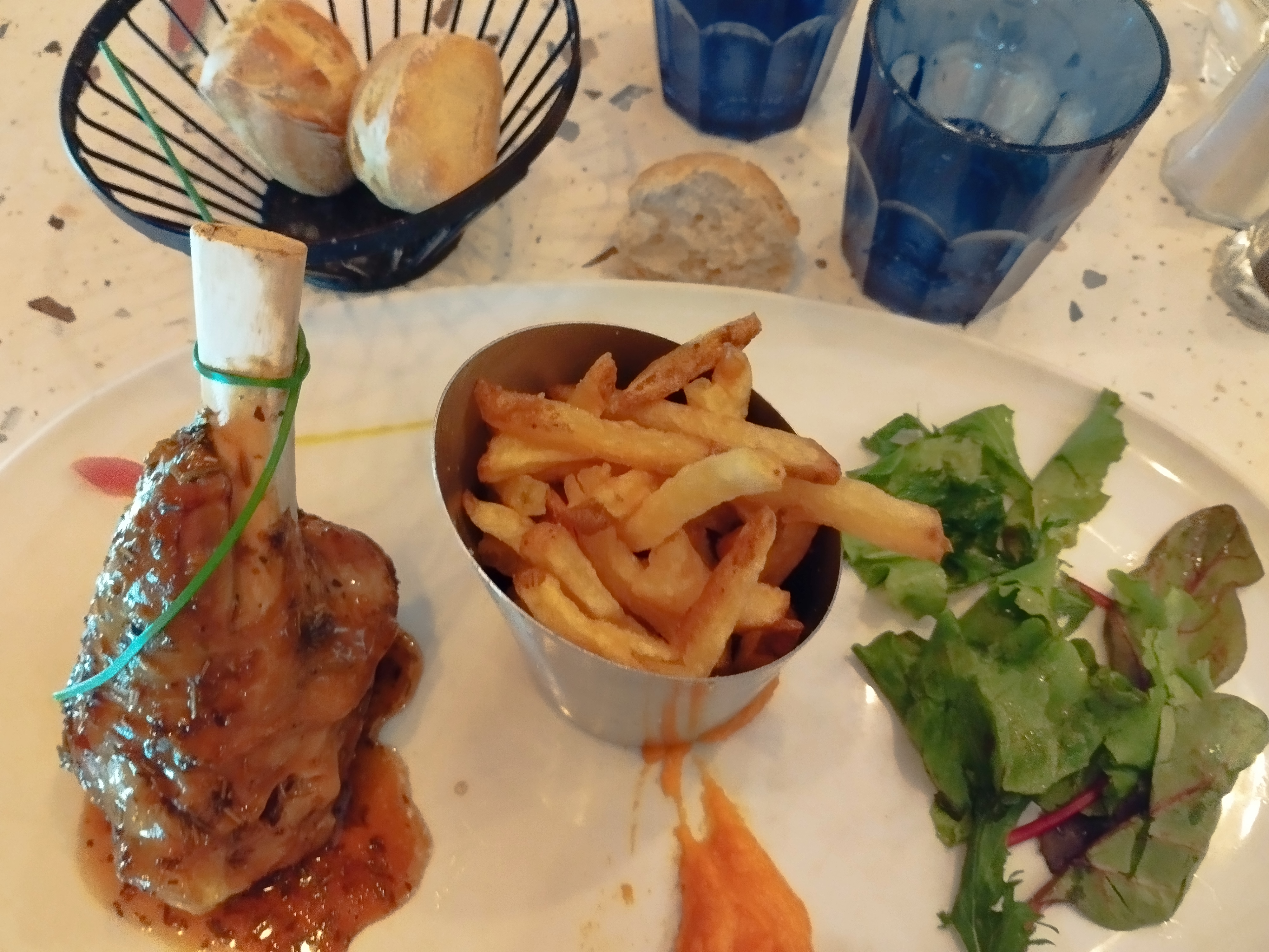 Tout d'abord, le service était assez bon et rapide. En revanche, les plats choisis manquaient clairement de générosité, certains accompagnement n'étaient pas servi en assez grande quantité, de plus les frites étaient beaucoup trop huileuses et la souris d'agneau manquait un peu de cuisson et de sauce. Le rapport qualité prix demeure assez correct malgré une petite déception de ma part sur la souris d'agneau.
