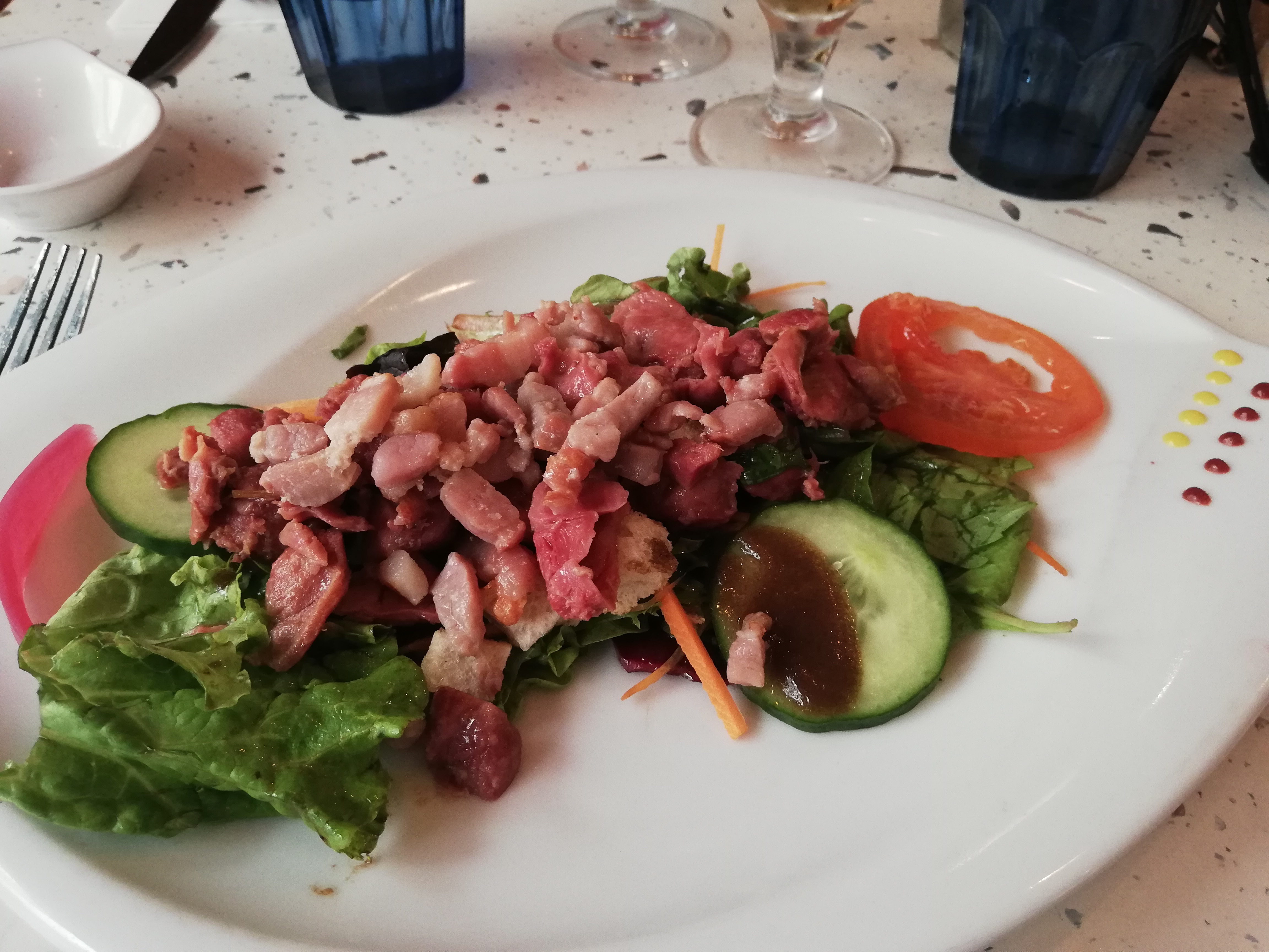 Déçus par nos derniers passages. Même si la salade de gésiers est excellente et copieuse, nous avons été déçu par nos plats (le magret coupé très fin et donc trop cuit, et le poulet sec)