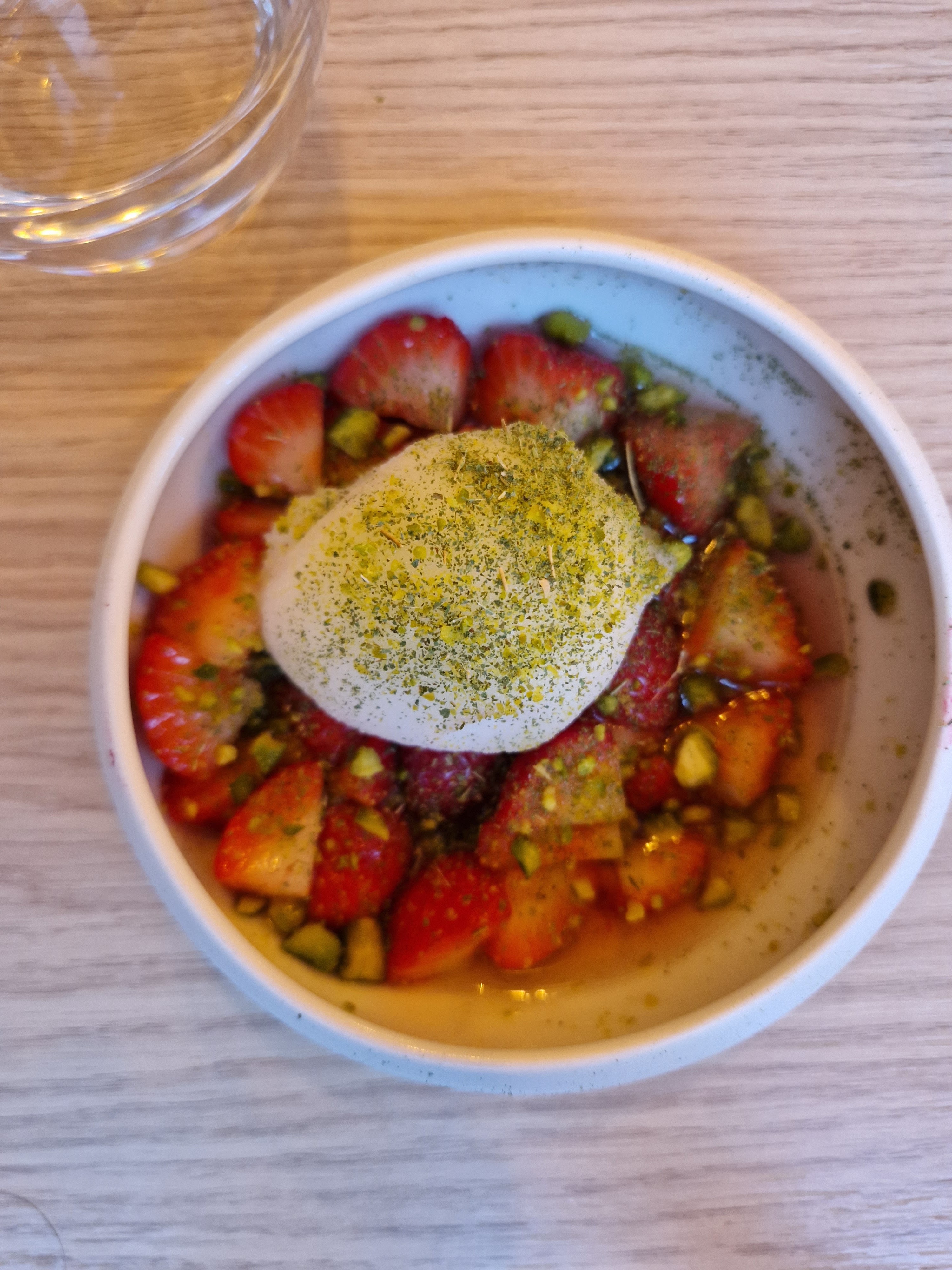 Mon mari et moi sommes tombés sur cet endroit charmant par hasard. Notre expérience là-bas a égayé notre journée, car nous étions arrivés à Meaux quelques heures plus tôt et avons découvert que notre hôtel se trouvait dans une épouvantable zone industrielle. L'ambiance du restaurant est ce que j'appellerais une ambiance raffinée et décontractée. Simple et charmant. Couleurs propres et paisibles. Le personnel nous a accueillis avec de grands sourires. Cela ne semblait pas les déranger du fait que nous n’avions pas un énorme appétit en raison d’un déjeuner copieux. J'ai commandé la soupe au petit pois, agrémentée de menthe et de touches de crème fraîche aux herbes. Une des soupes les plus savoureuses que j’ai jamais mangées ! Nous avons commandé les gambas panko, qui sont arrivées sur un lit de chou frais finement haché, légèrement habillé d'une vinaigrette au sésame. Les crevettes parfaitement cuites étaient légèrement arrosées d'une trempette au chili doux et saupoudrées de graines de sésame blanches et noires. Nous avons terminé avec une soupe aux fraises et un sorbet gratuit « fait maison ». Si Meaux nous ne sommes pas à 3h30 de chez nous dans le Val de Loire, nous y mangerions souvent. Je ne peux pas souligner davantage à quel point le personnel était agréable. Nous ferons tout notre possible pour y dîner à nouveau, si nous sommes dans la région. ❤️