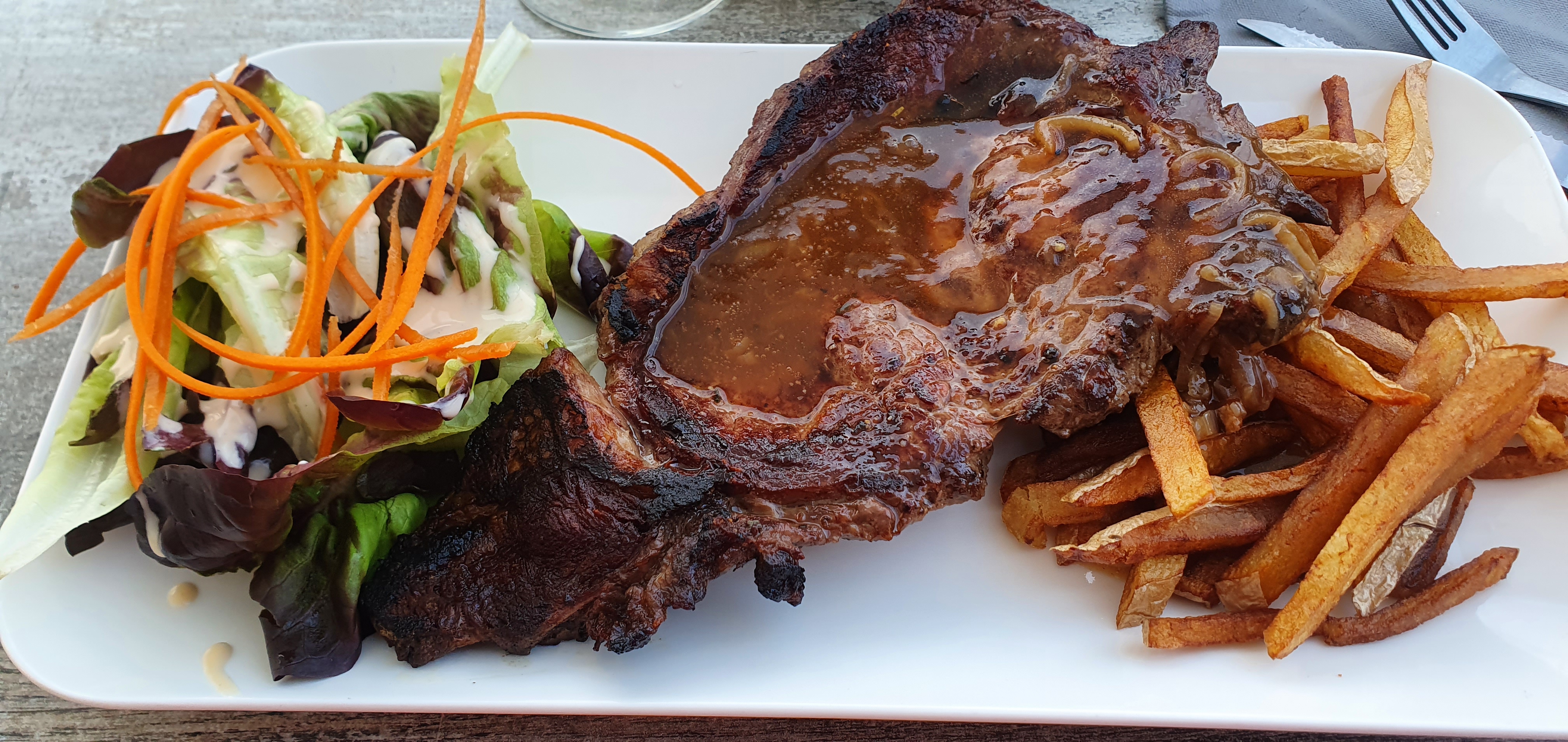 Aucun plat à la carte, juste une quiche froide, une entrecote saignante à la place de a point pas tendre du tout et gratin pomme de terre pas tout a fait cuit .