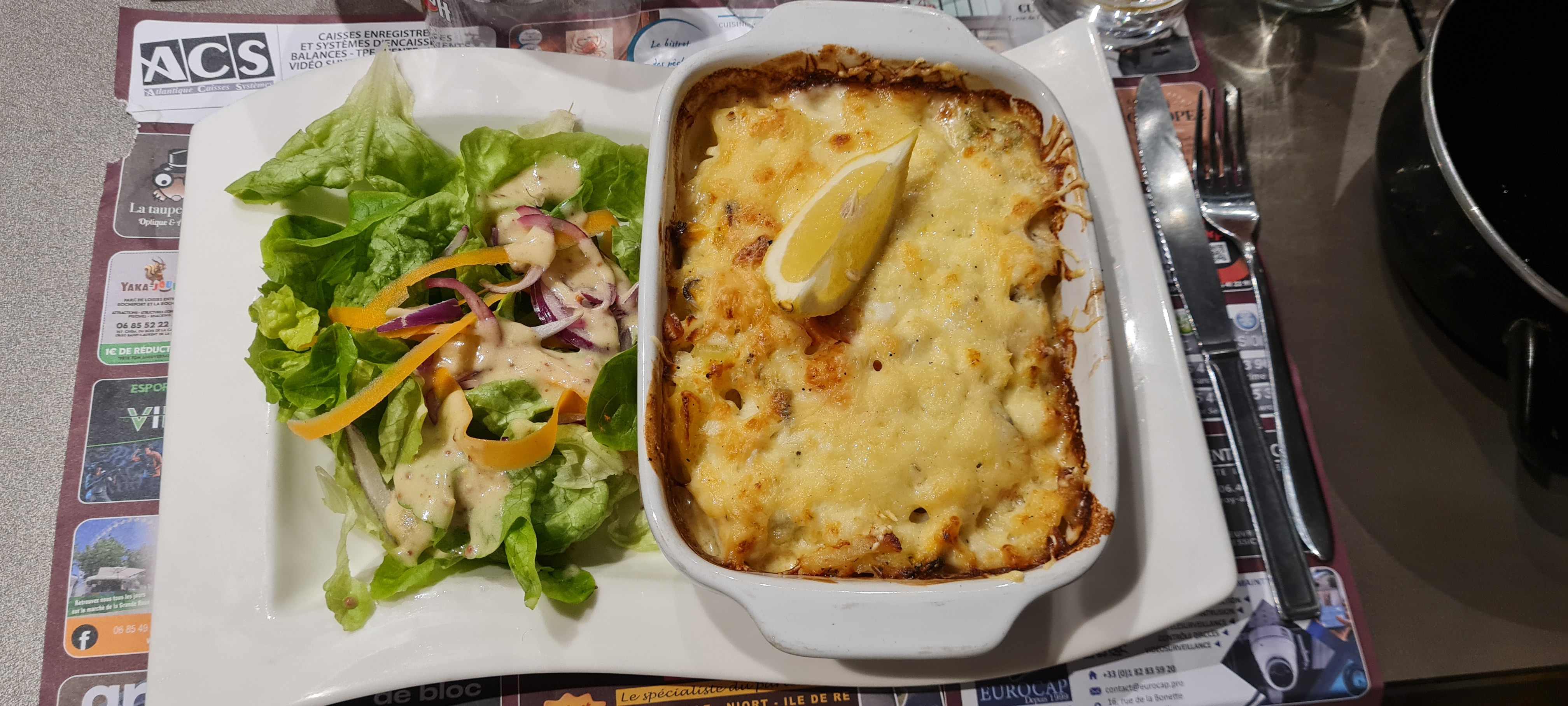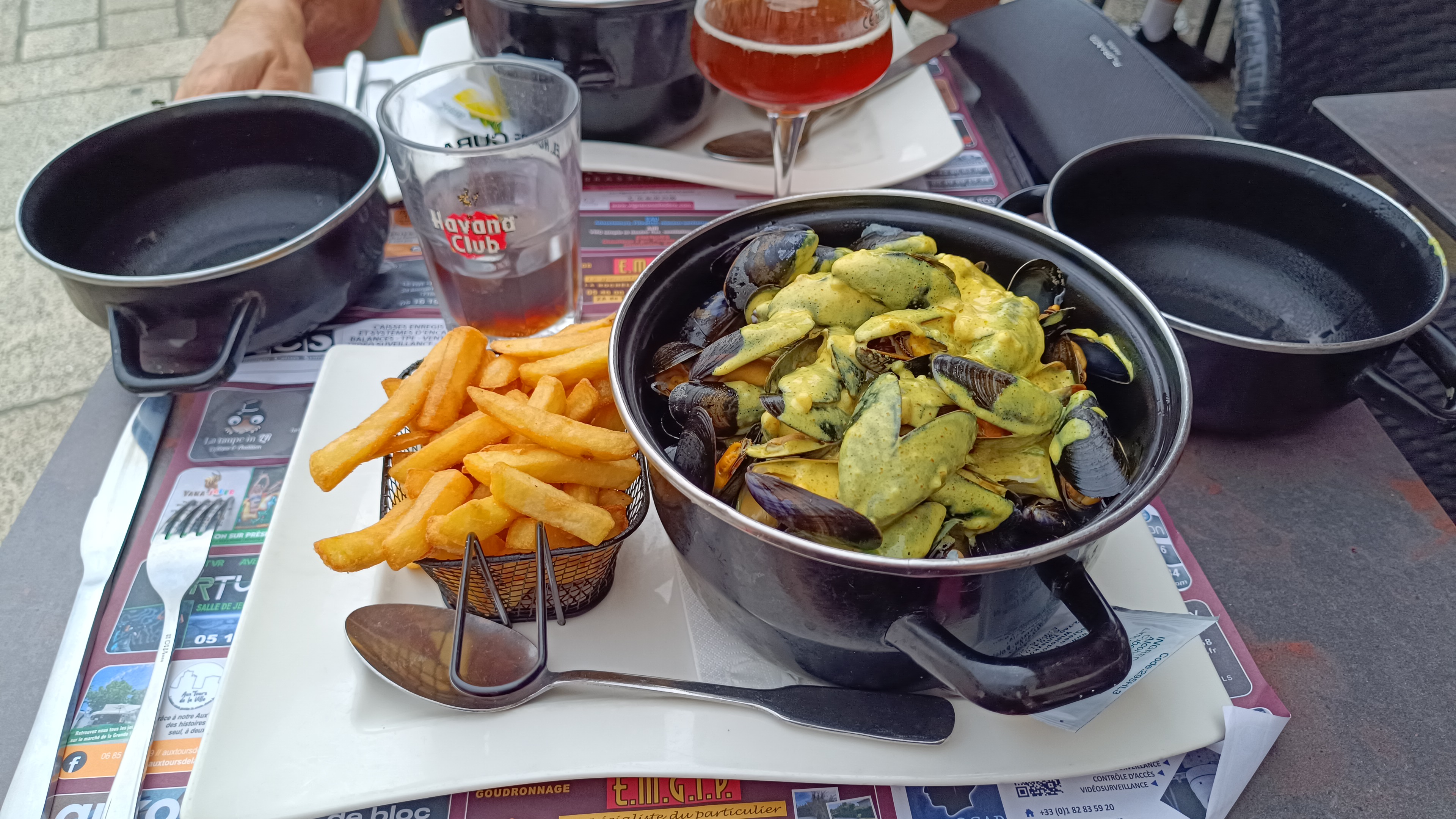 Salade correcte mais sauce moyenne. Les moules sauce bleu... A éviter absolument surtout si vous êtes chti ! Les moules sont très salées et la sauce ressemble à une bechamel sans vraiment de goût. Les frites sont sèches et semblent avoir été de recuites une fois de trop. Le service est rapide et le patron en fait visiblement beaucoup pour trouver des clients, reste à leur donner envie de revenir... 😊