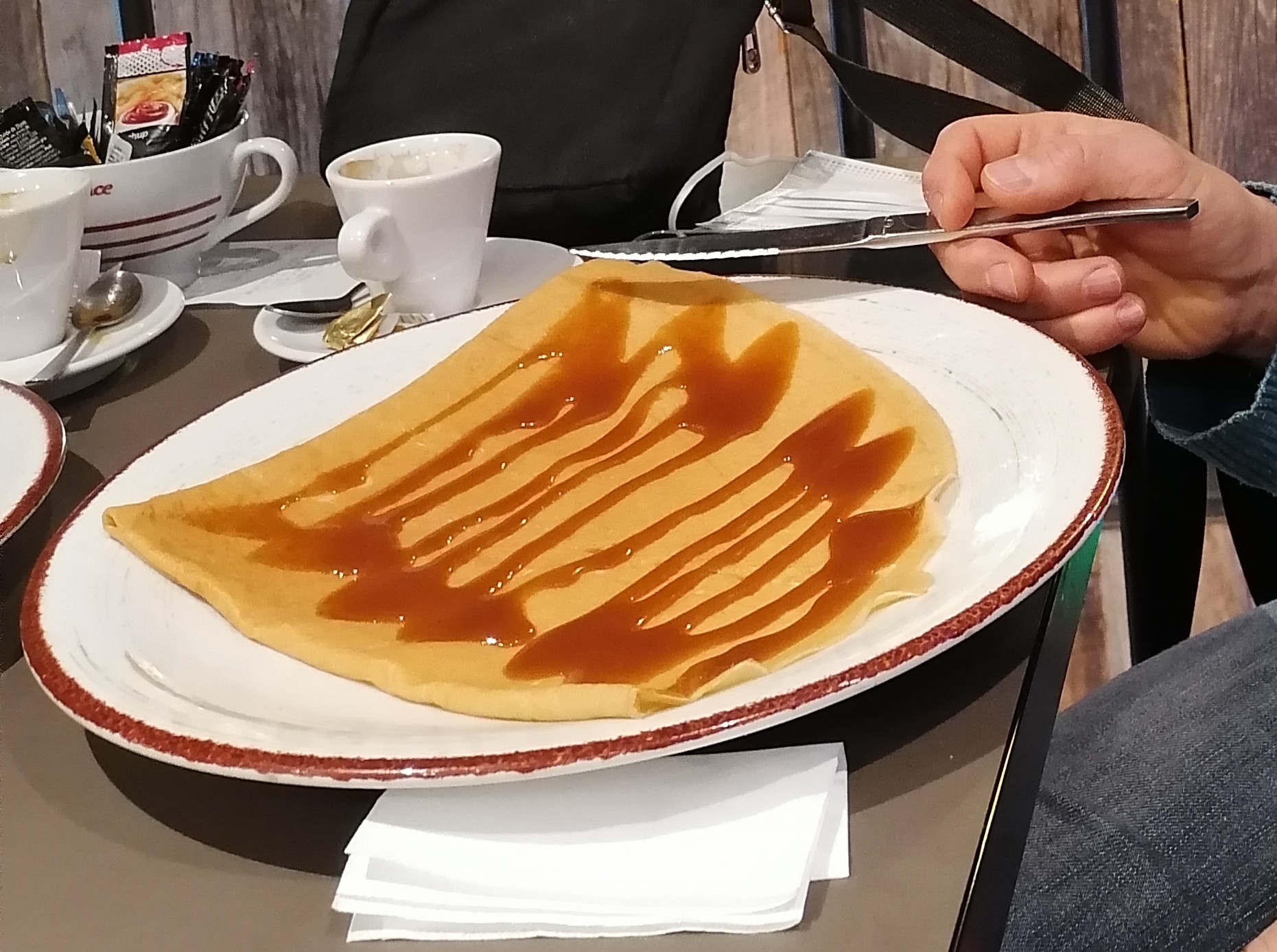 l’eau servie dans un verre sale, la crêpe au prix de 6€ n’est même pas présentable et à la hauteur du prix. du nutella qui coule partout autour de l’assiette et même pas de serviette.