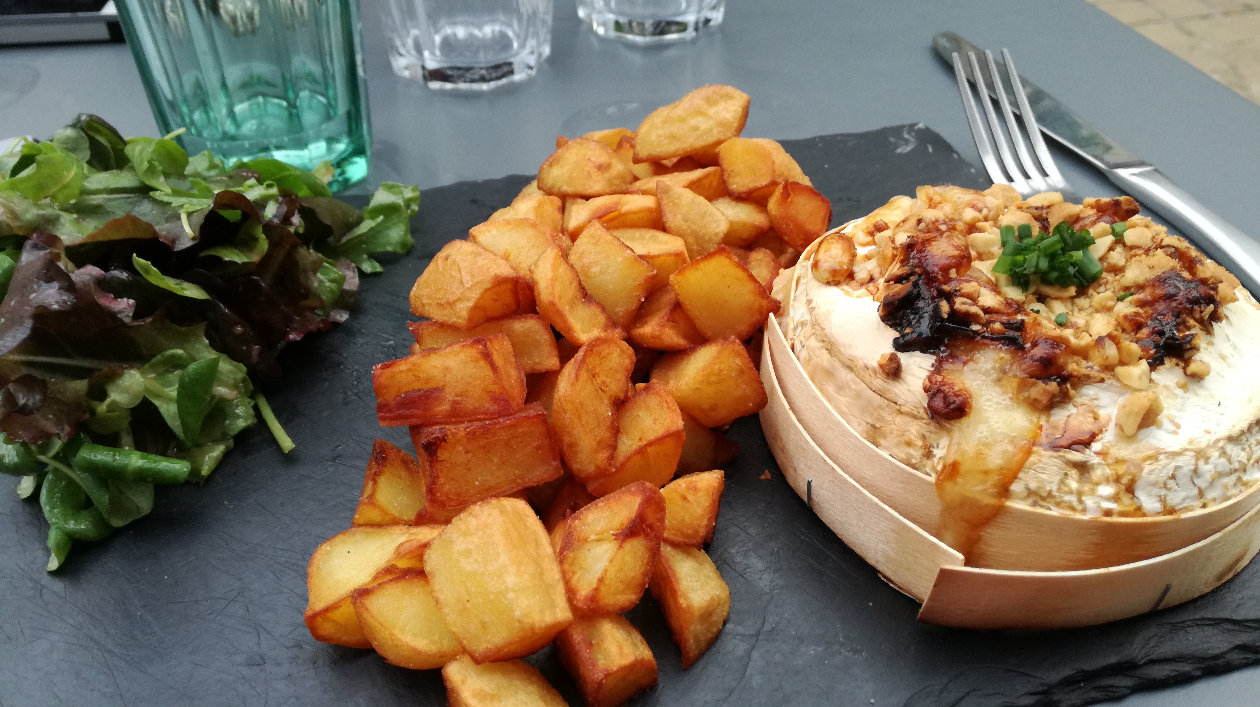 Petit resto sympa où l'on mange très bien, belle présentation des plats sur des planches, très bonnes frites ( Émilie les a beaucoup aimées ) et les boules de glace servies côte à côte de façon à ce que les parfums ne se mélangent pas = bonne idée. Forcément, je recommande 😃