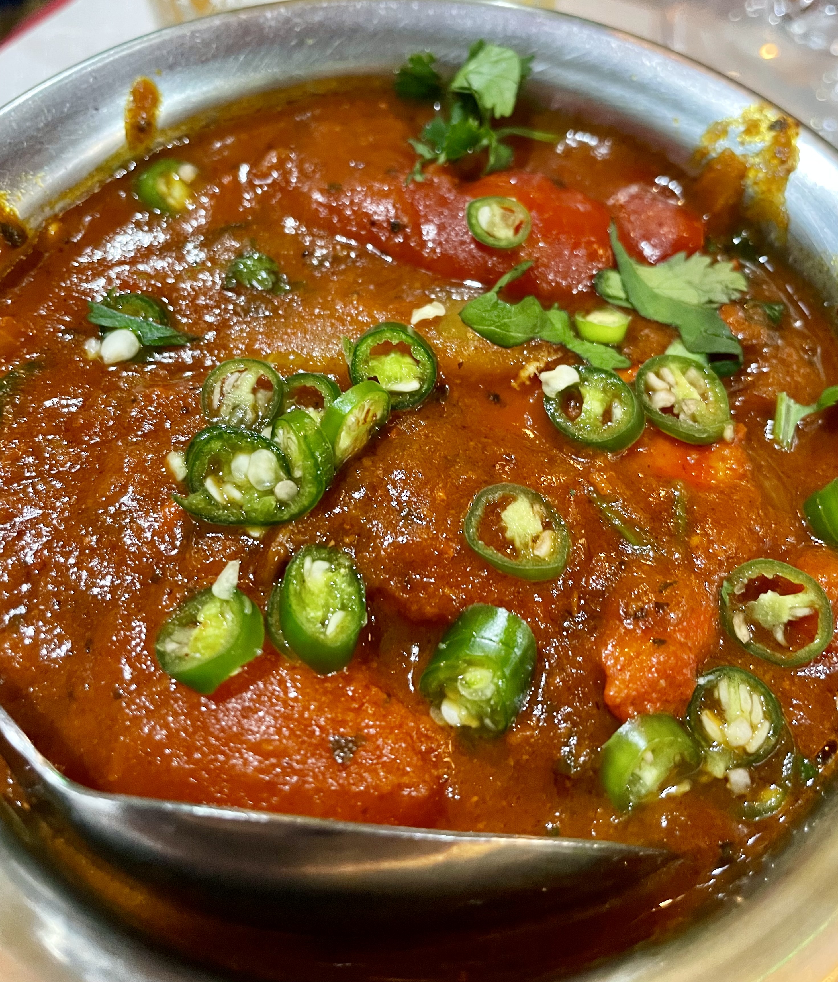 Un petit restaurant indien fort agréable dans le typique Passage Brady. Nous avons eu un service attentionné et très professionnel qui a enchanté notre dîner avec mon amie. Nous avons bien mangé, les plats n'étaient pas épicés à notre demande et c'était savoureux. Ils respectent les préférences alimentaires , ce qui est agréable. Nous avons préféré le chicken Tikka au chicken Jalfrezi. Je vous le recommande, il était délicieux. Avec la promotion, l'addition est douce et cet accueil chaleureux nous donne envie de revenir tester d'autres plats.