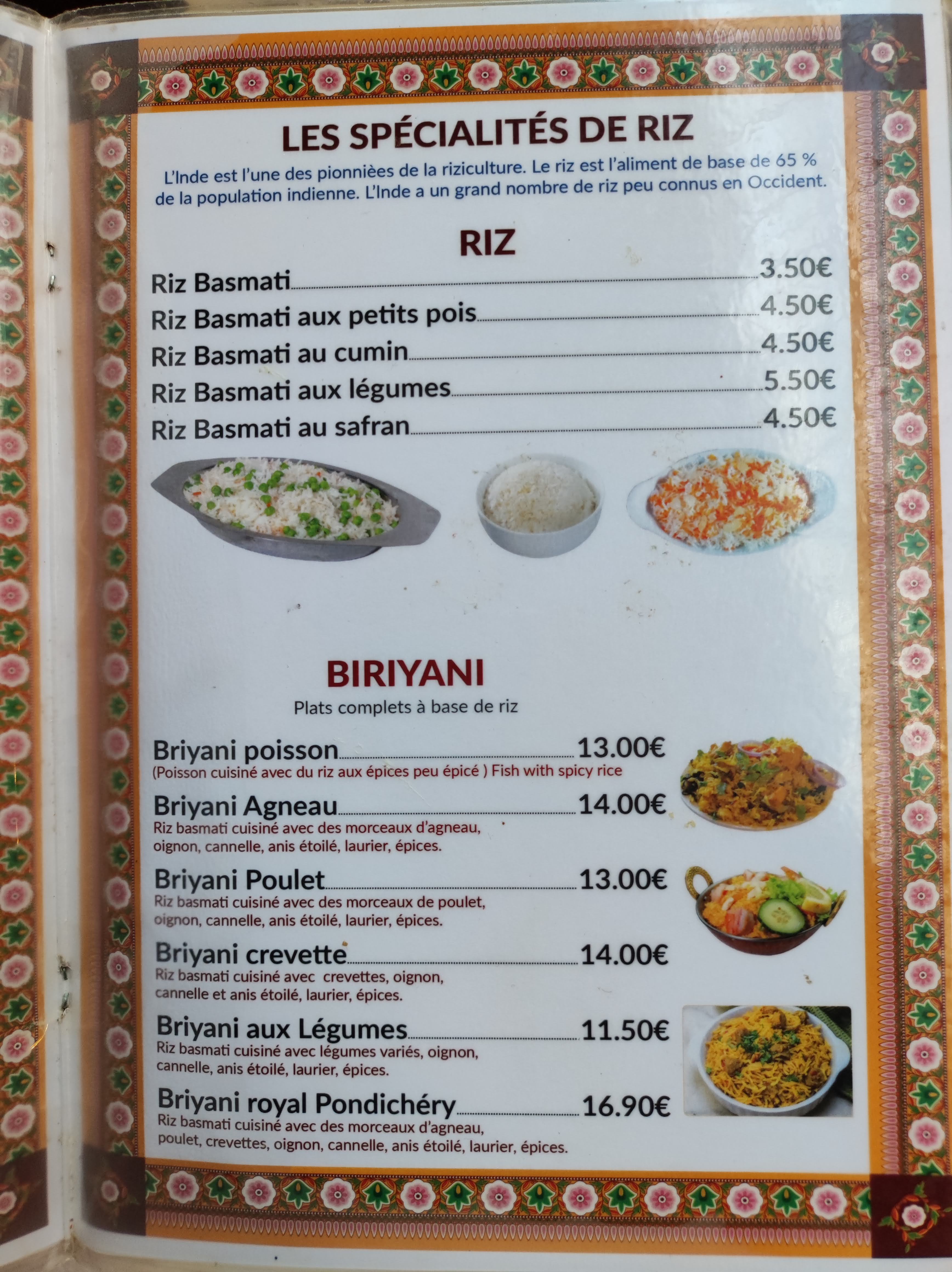 Plusieurs fois que je me rends dans ce restaurant indien et je suis encore une fois pas déçu. La première fois j'ai pris un biryani poulet excellent et très consistant et la seconde tahli pondicherry toujours aussi bon. La déco a l'intérieur est super sympa on voyage tout en déjeunant. Bref he recommande.
