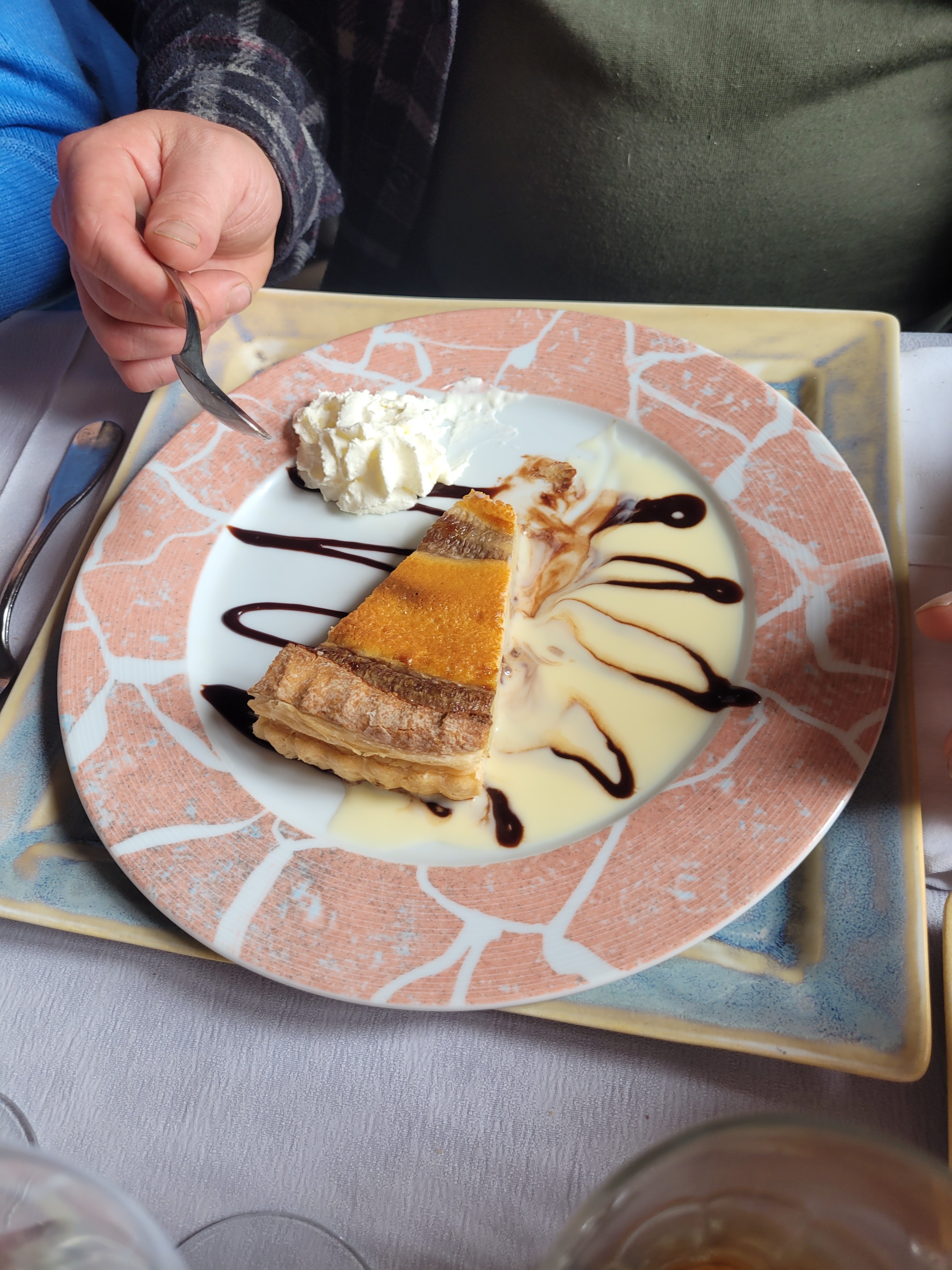 De l'accueil à l'addition, tout était parfait. Cocktail maison avec ou sans alcool, servi généreusement. Pâté en croûte de pomme de terre très bien. J'avais déjà plus faim. Ensuite un fondue Creusois, un régal et très copieux. Un fromage blanc et une crème brûlée (j'aurais aimé un peu tiède, mais c'est une histoire de goût). Je recommande