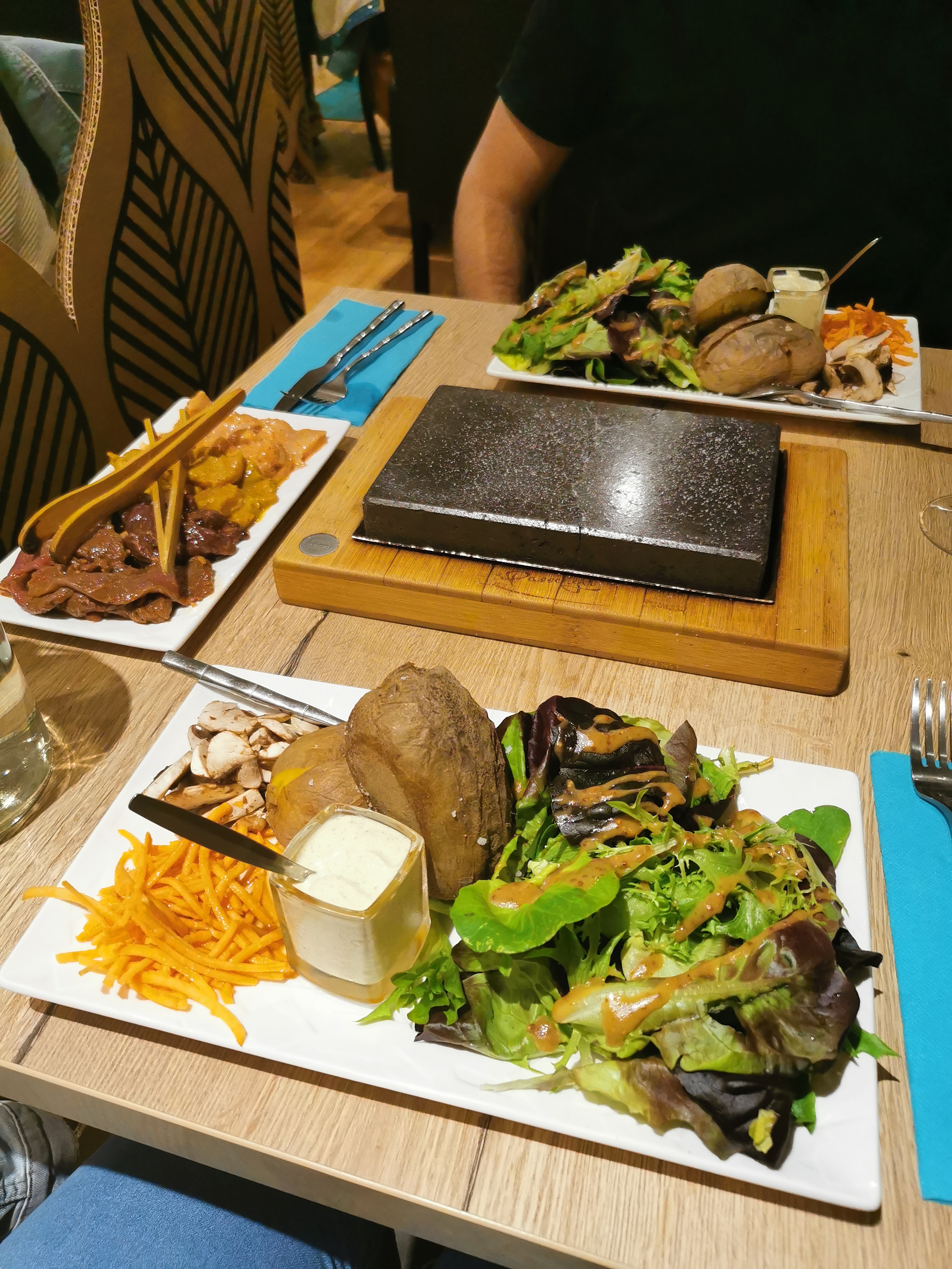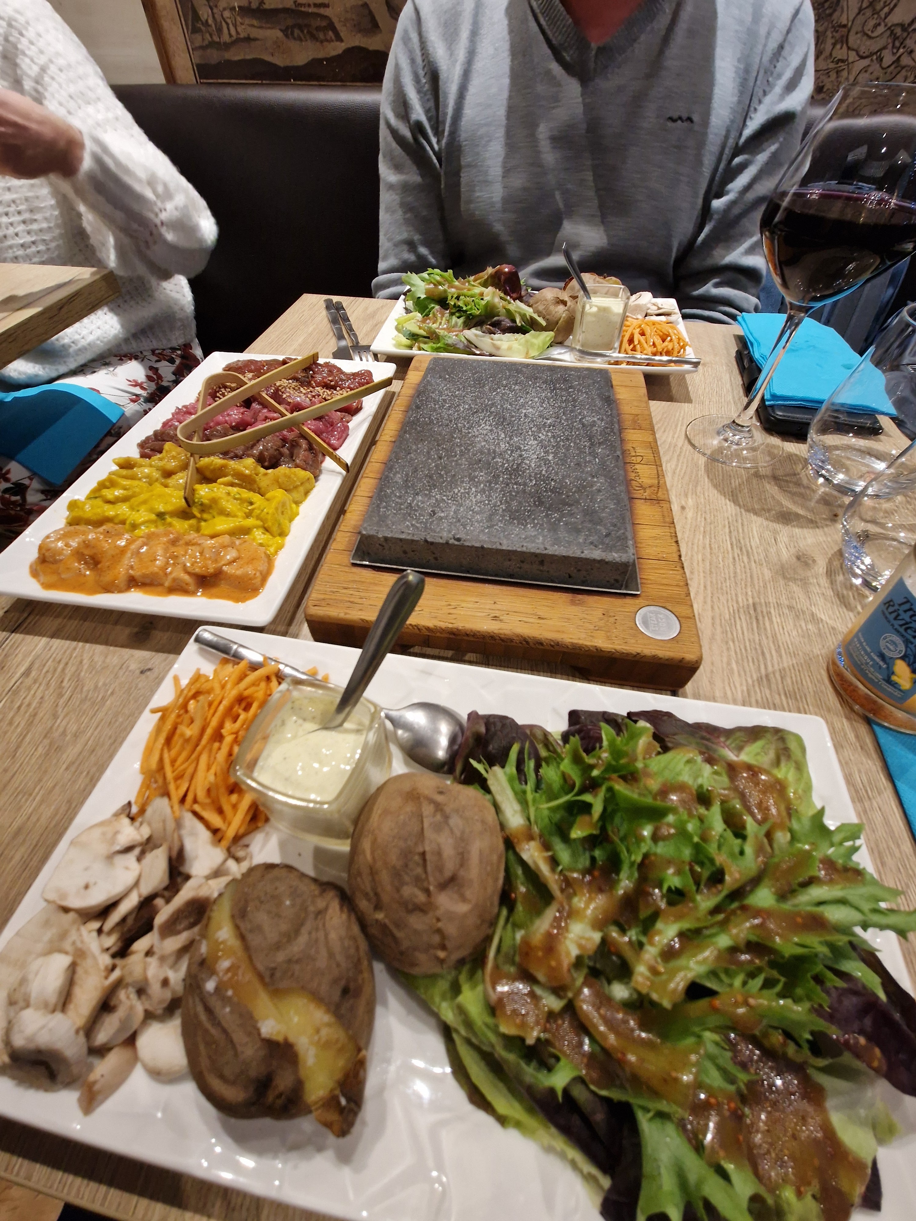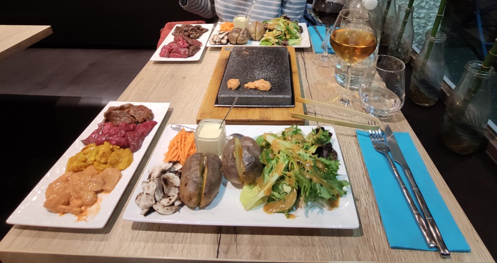 Cuisson à la Pierre sur la table, pas adapté aux plus petits. Plats copieux. Dessert pas terrible.