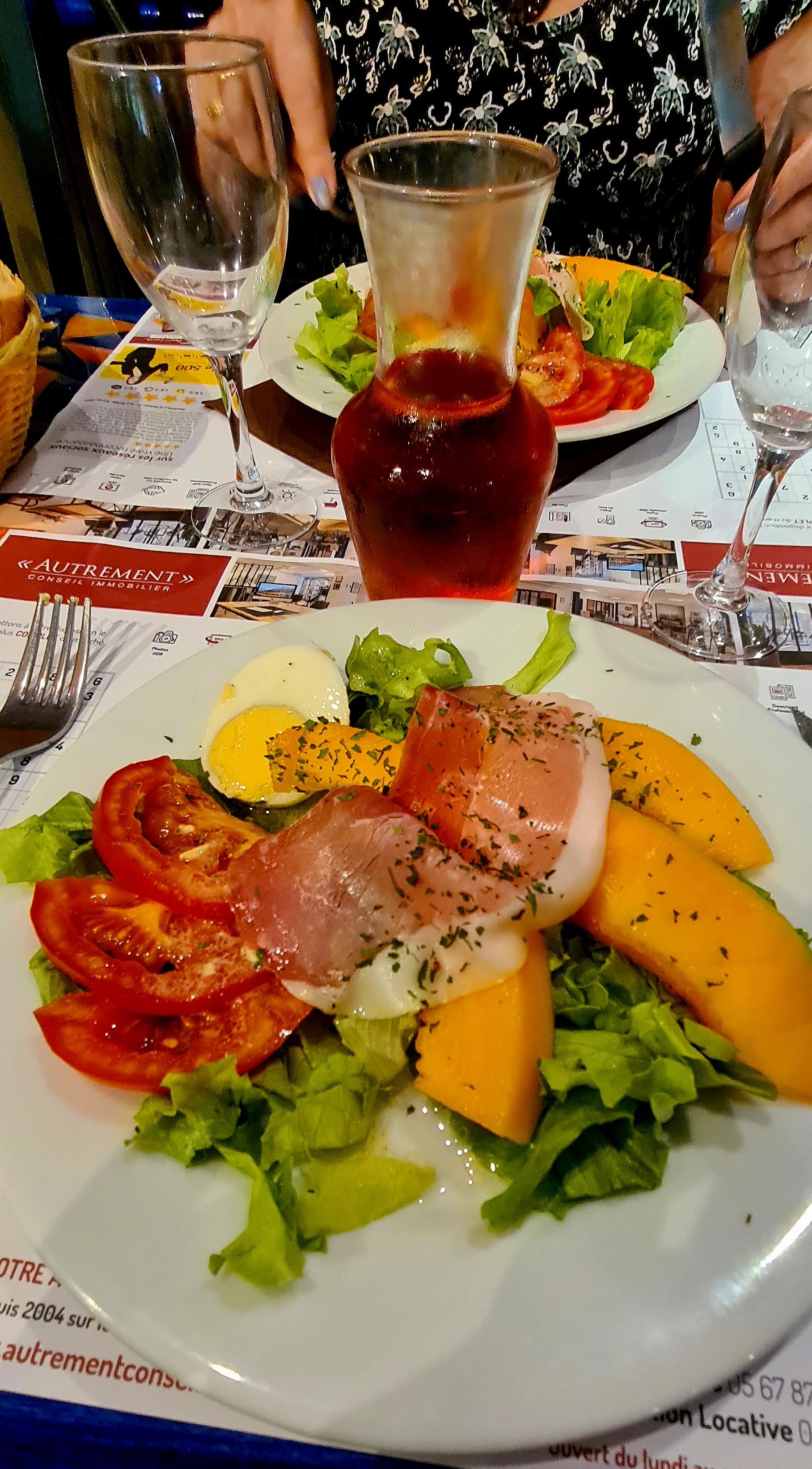 Une très belle découverte pour nous qui habitons pourtant dans le secteur. Samedi midi, dans une ambiance conviviale de fin de marché, à l'ombre des platanes, nous voilà accueillis par un serveur sympathique et professionnel qui nous présente le menu du jour à 15,50€ (choix entre 3 entrées, 2 plats viande ou poisson, 3 desserts). Quelle surprise en découvrant des plats copieux, recherchés et faits maison sans aucun doute ! Nous nous sommes détectés de ce menu, les serveurs toujours aux petits soins, efficaces et rapides. Un rapport qualité/prix vraiment très intéressant !! Au passage, en allant régler notre addition au bar, nous croisons des produits frais arrivant directement du marché 👍 Merci !