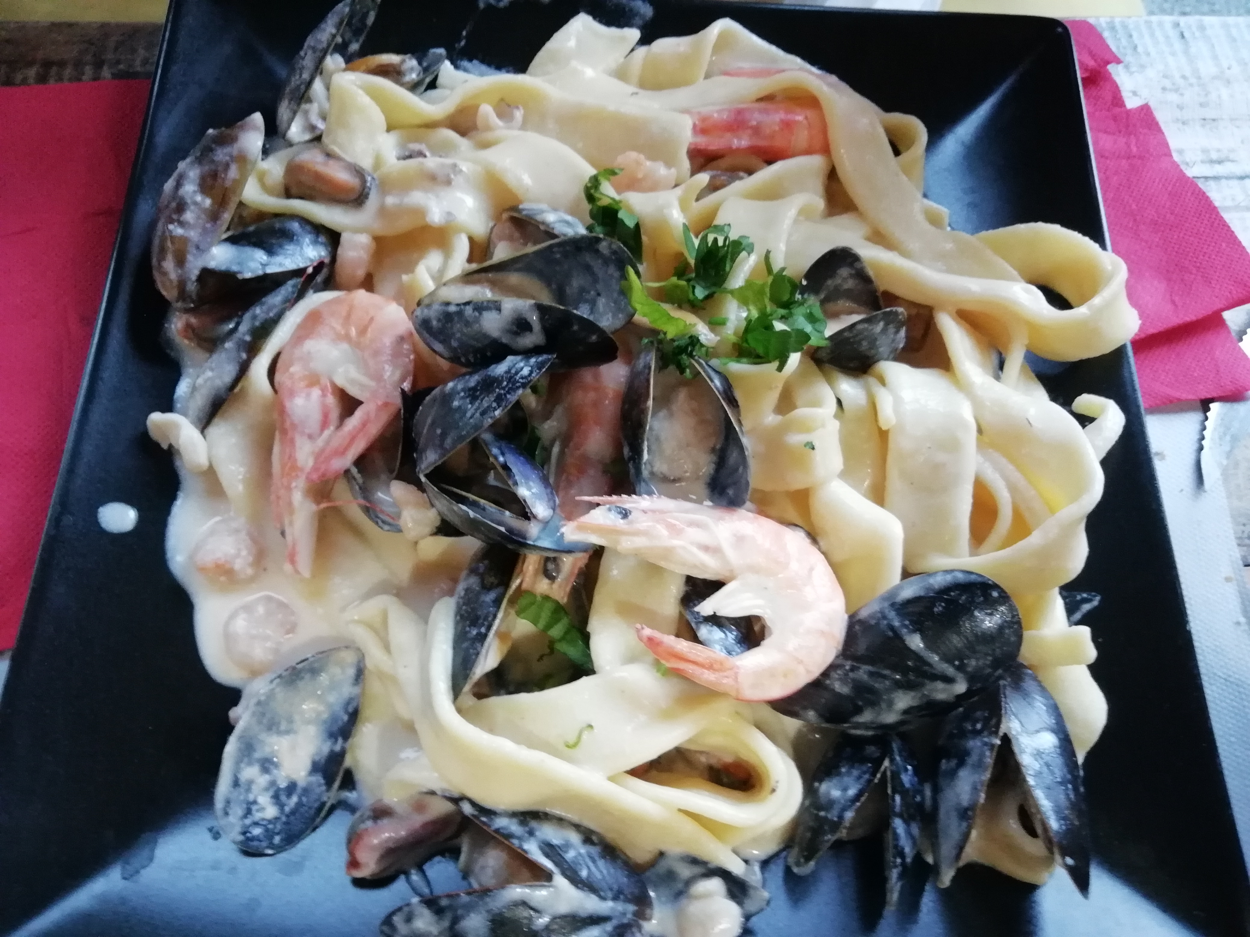 Nous y sommes allés avec ma maman et mon conjoint. Le repas était délicieux. Pour ma part, les pâtes au saumon : le pavé de saumon était parfaitement cuit et le saumon fumé était très bon Pour mon conjoint les pâtes au poulet et chorizo : poulet parfaitement cuit, chorizo très bon et sauce excellente Pour ma mère : pâtes au noix de saint Jacques, avec des saint jacques de bonne taille, bien cuites et une très bonne sauce. Les assiettes sont très copieuses. Le service est agréable et dans les temps. Le prix est très abordable ! Je ne peux que recommander ce restaurant au sein duquel je compte revenir !