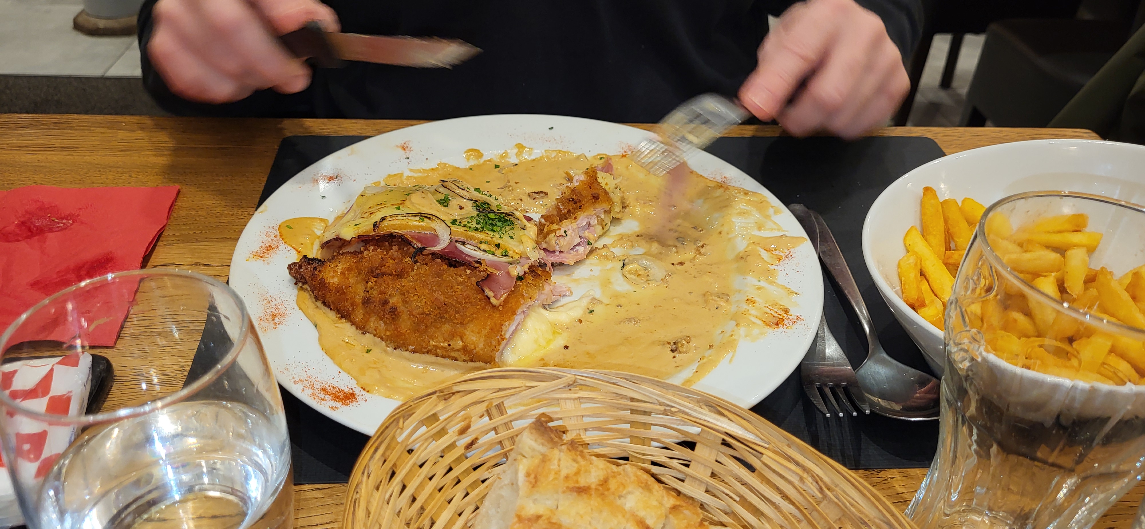 Nous avons mangé hier leur fameux cordon au munster,repas copieux difficile de tout finir mais tellement bon. Le service était rapide rien a dire. 😁