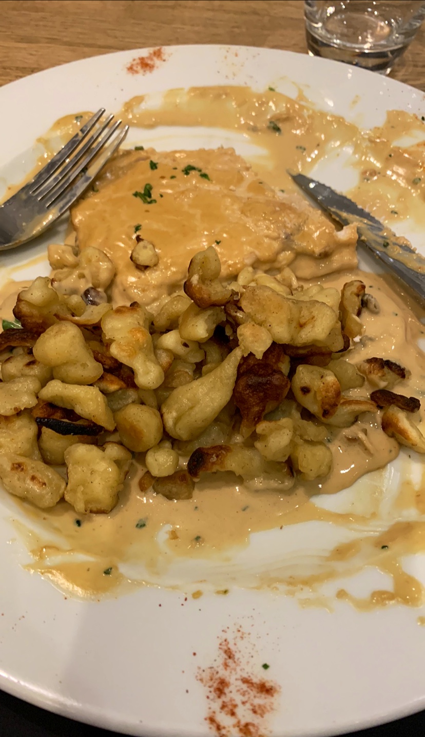 Je recommande !! L’ambiance du resto est vraiment top en plus d’être élégant, de plus, la serveuse a illuminé notre repas avec son sourire hyper communicatif, et sa réactivité ! Repas délicieux et copieux, rapport qualité prix vraiment bon, je ne regrette pas et j’y retournerai avec plaisir ! La présentation de la salade était superbe et les produits bien frais.( désolée c’était si bon que je n’ai pas pris le temps de prendre de photos). Le seul hic c’était la sauce à la crème qui accompagnait mes escalopes, qui me semblait légèrement trop salée mais je me suis tout de même bien régalée! Merci pour cet accueil 🥰