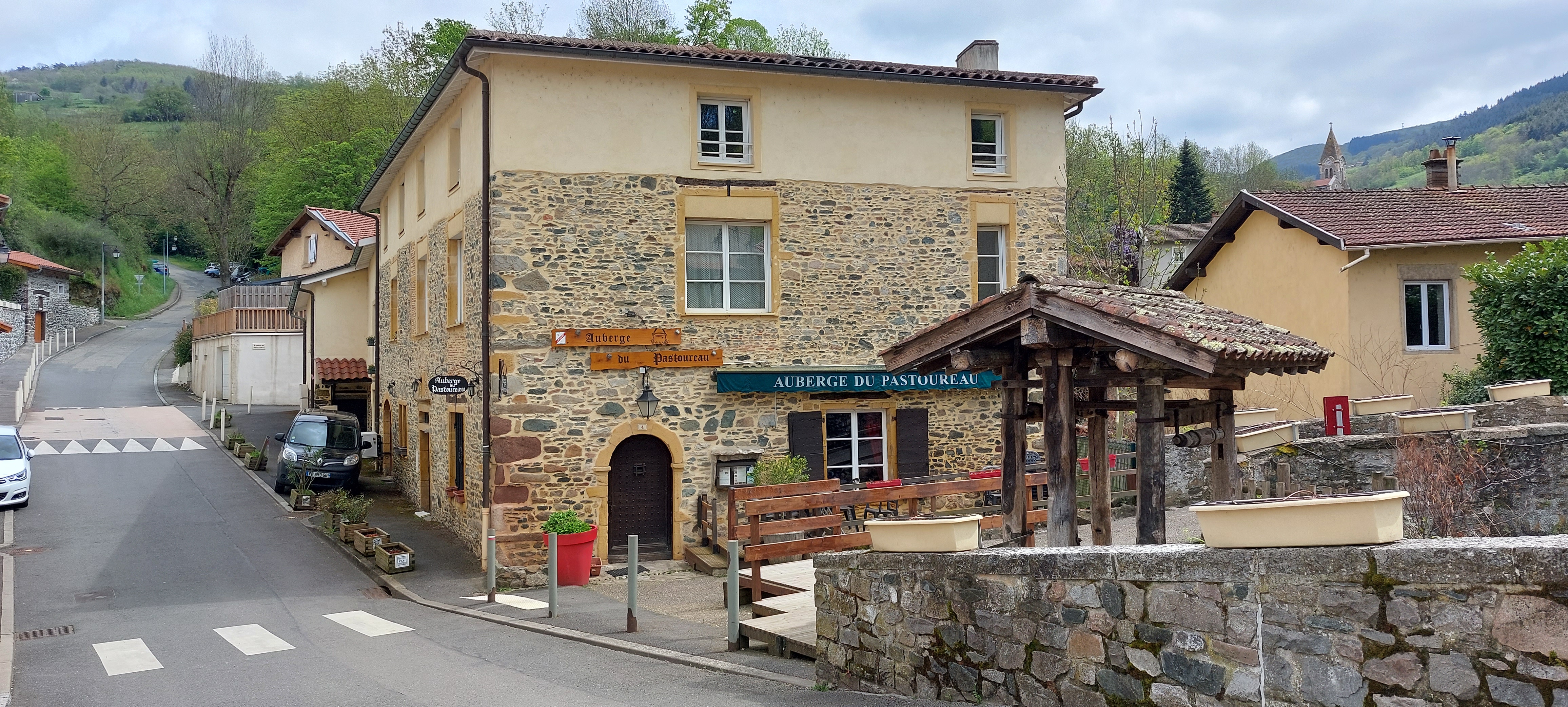 Jour de pluie… après une randonnée à proximité, trempé je me retrouve devant cette auberge à l’heure du midi pour venir y manger et m’abriter. Manque de chance pour moi les deux seules places disponibles doivent rester vide pour respecter les gestes barrières. Je demande gentiment à la dame si je peux rester à l’intérieur en attendant qu’une place se libère, ce à quoi elle me répond de rester gentiment devant la porte d’entré sous la pluie en attendant qu’une place veuille bien se libérer. Loin de l’image de l’auberge chaleureuse que je me faisait je suis donc reparti à pied m’abriter sous l’église du village, qui elle au moins a fait preuve d’humanité. Je ne recommande pas