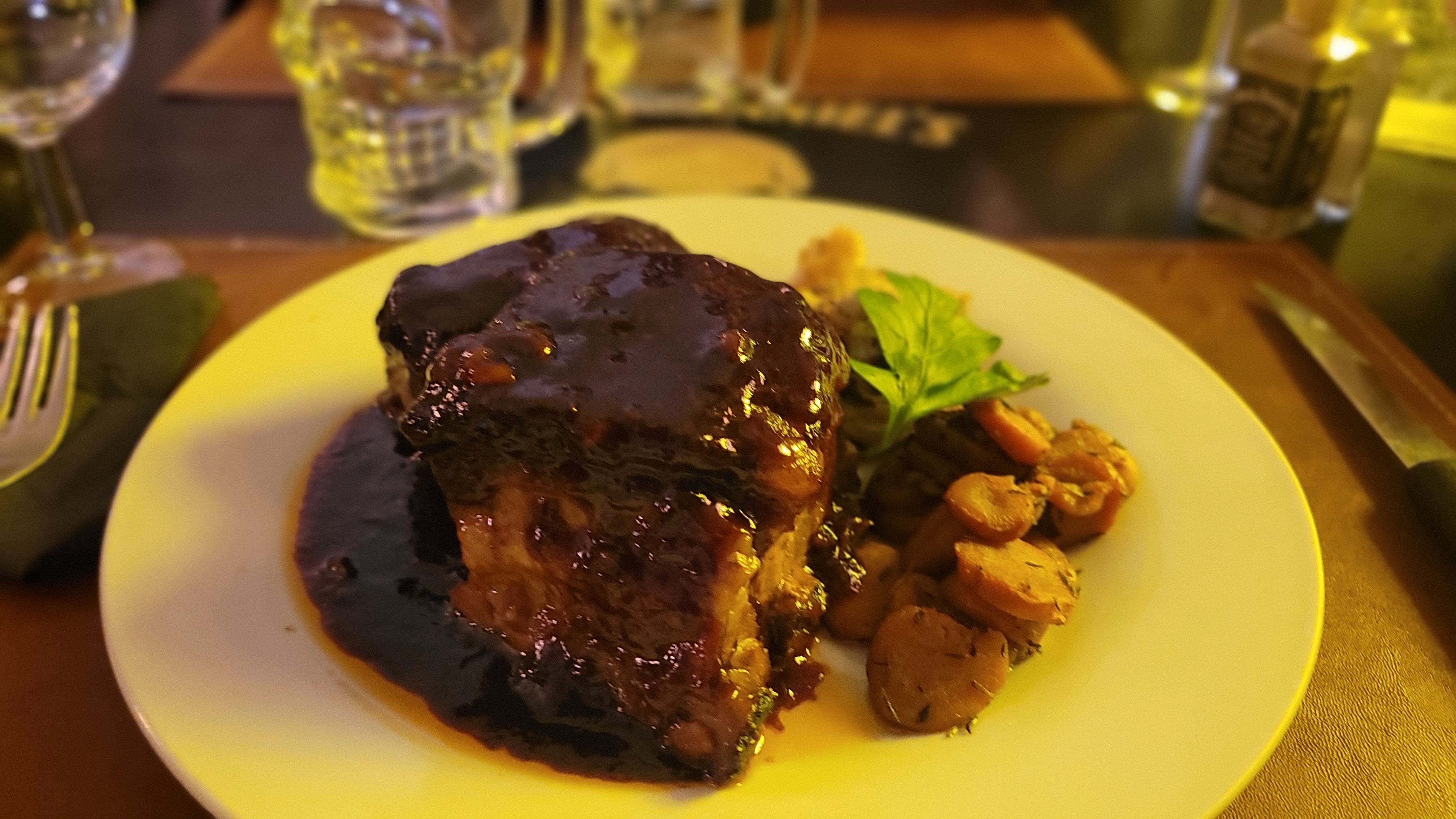 Super resto ou toute la cuisine contient du Jack Daniel's La cuisine est top Nous avons opté pour la foie gras, puis la souris d'agneau confite au Cidre et enfin la ganache Nous nous sommes régalés Le clou du spectacle c'est le patron hyper sympa qui sers et cuisine en kilt tout en assurant une ambiance super conviviale Nous avons bu une bière au Jack et goûté au moonshine, eau de vie de contrebande hyper puissante Ce resto est à découvrir absolument